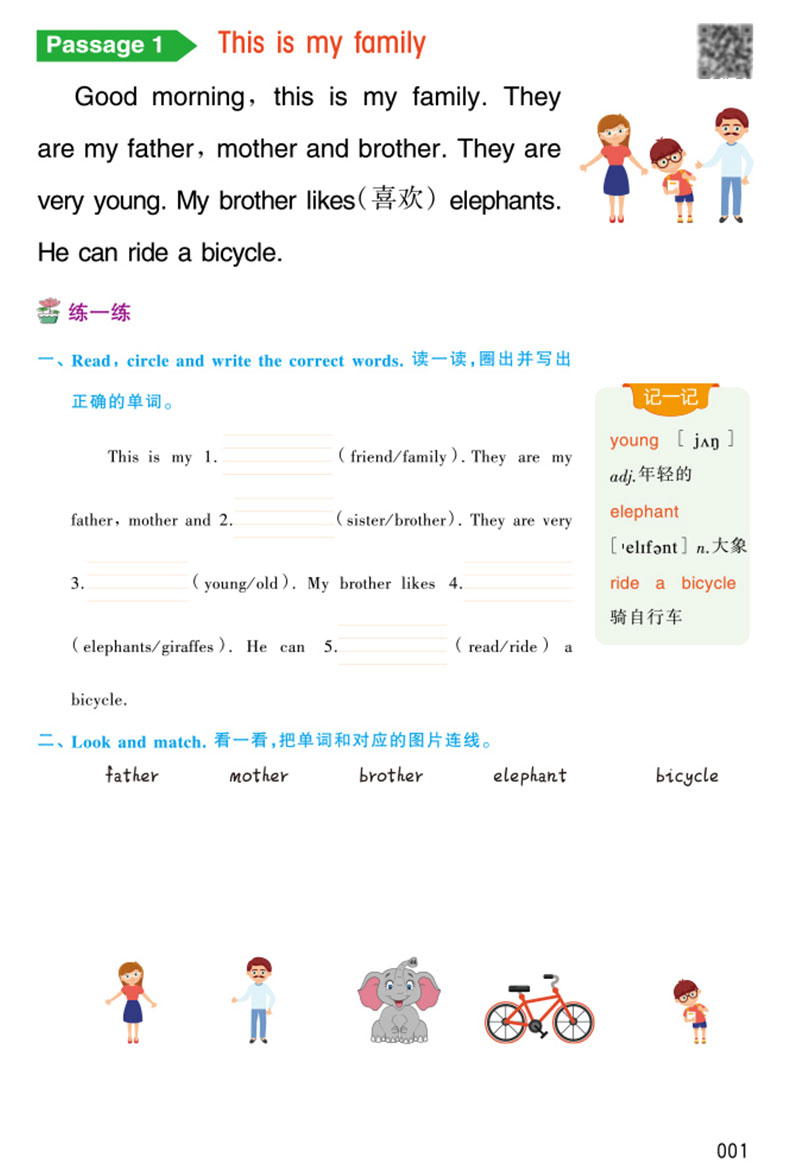 (仓发) 乐学熊 小学英语 阅读理解 一年级上下册通用 小学课外阅读小学生英语阅读专项训练 英语看图写话默写/开明出版社/钱赛湖/9787513158138