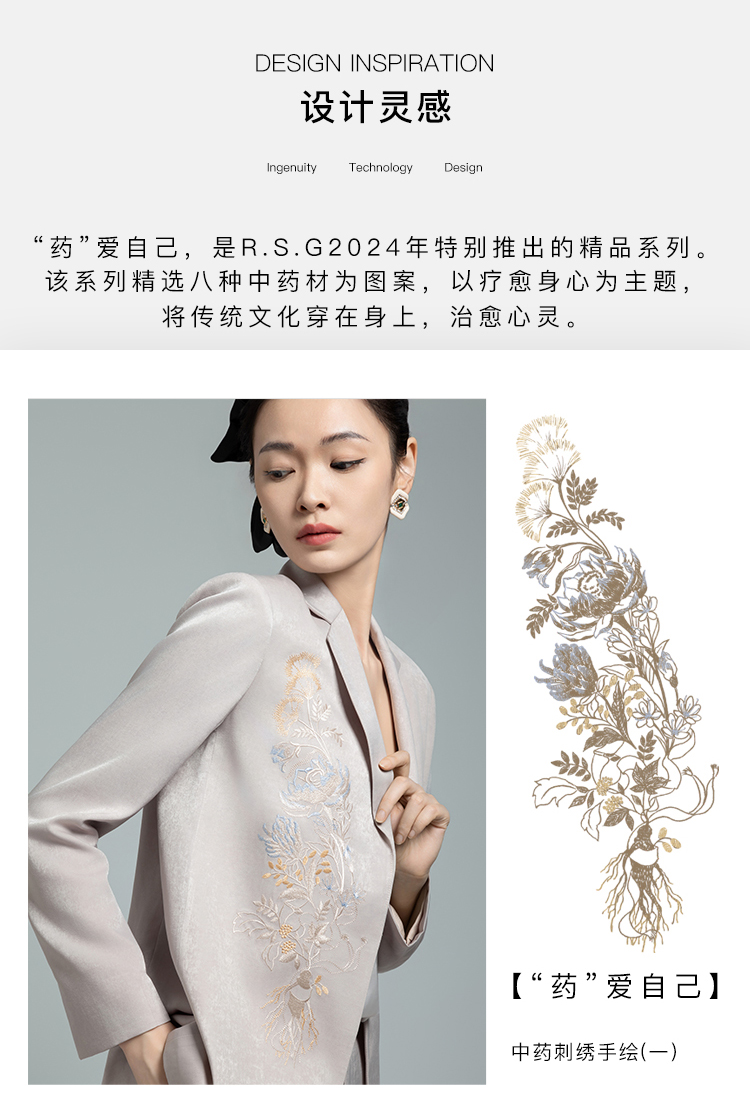 郭培成衣品牌【“药”爱自己】新中式刺绣图案休闲西服套装