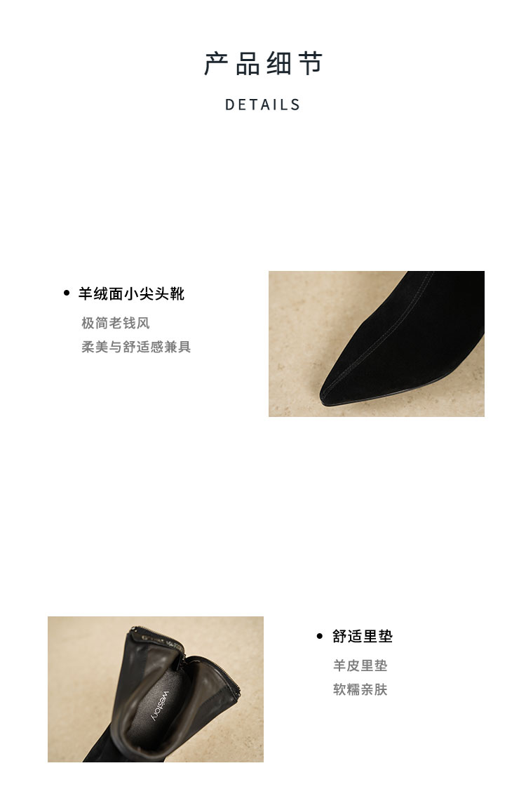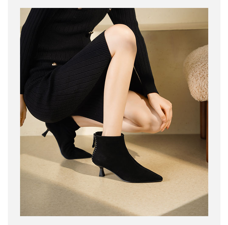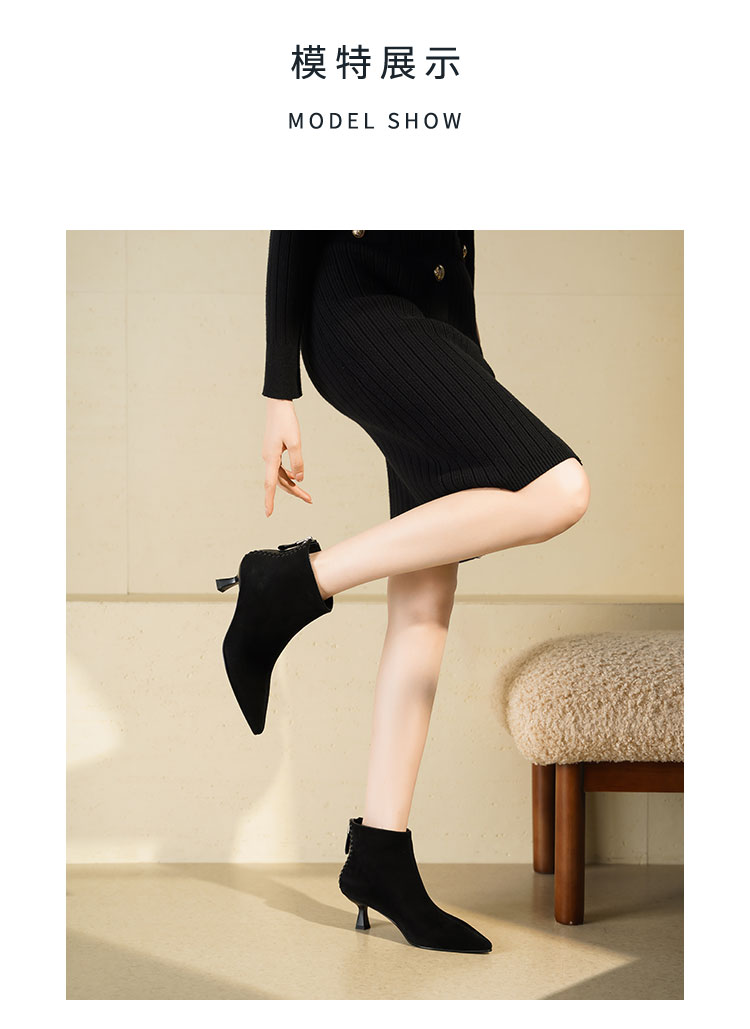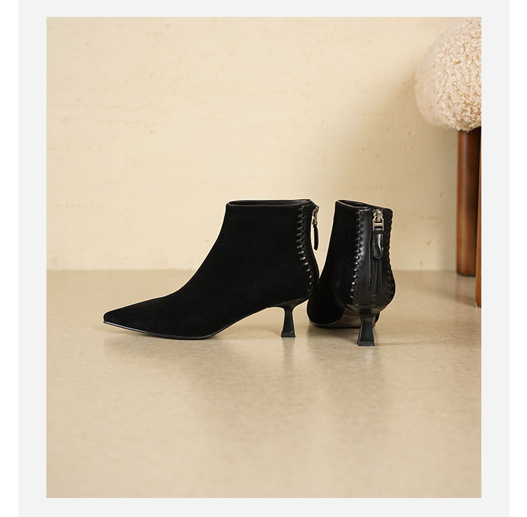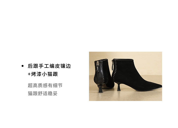 Westory2025年冬季绒面羊京尖头猫跟简约老钱风百搭短靴W25DS85561