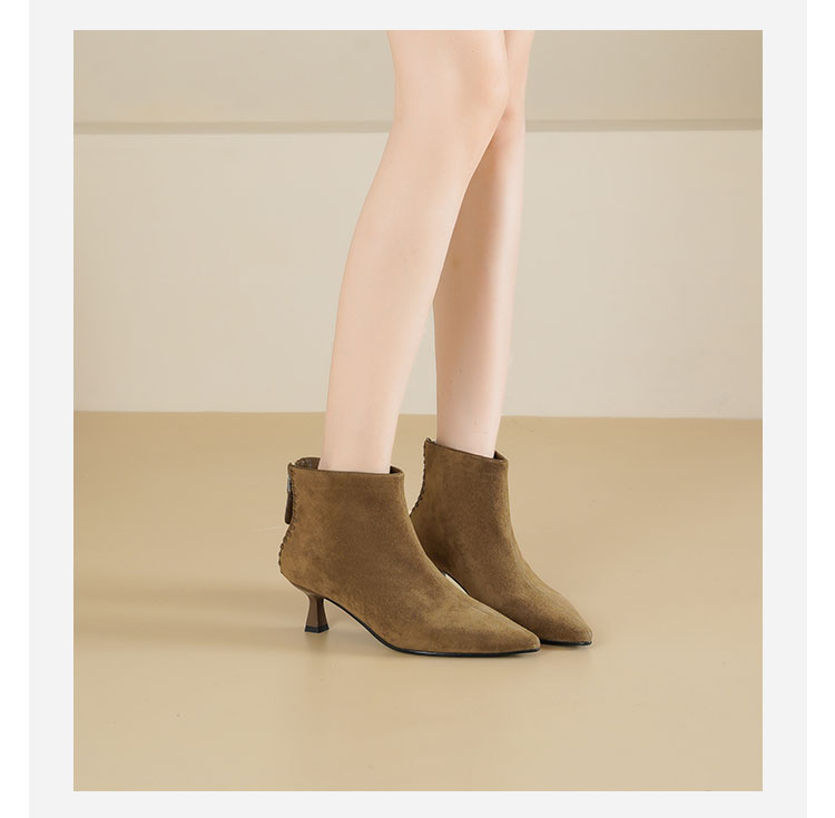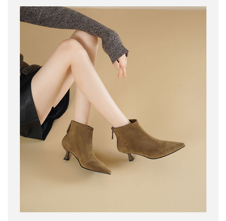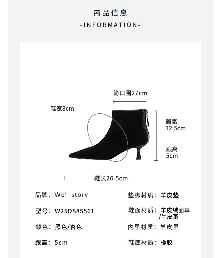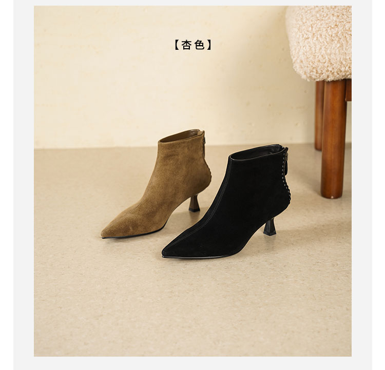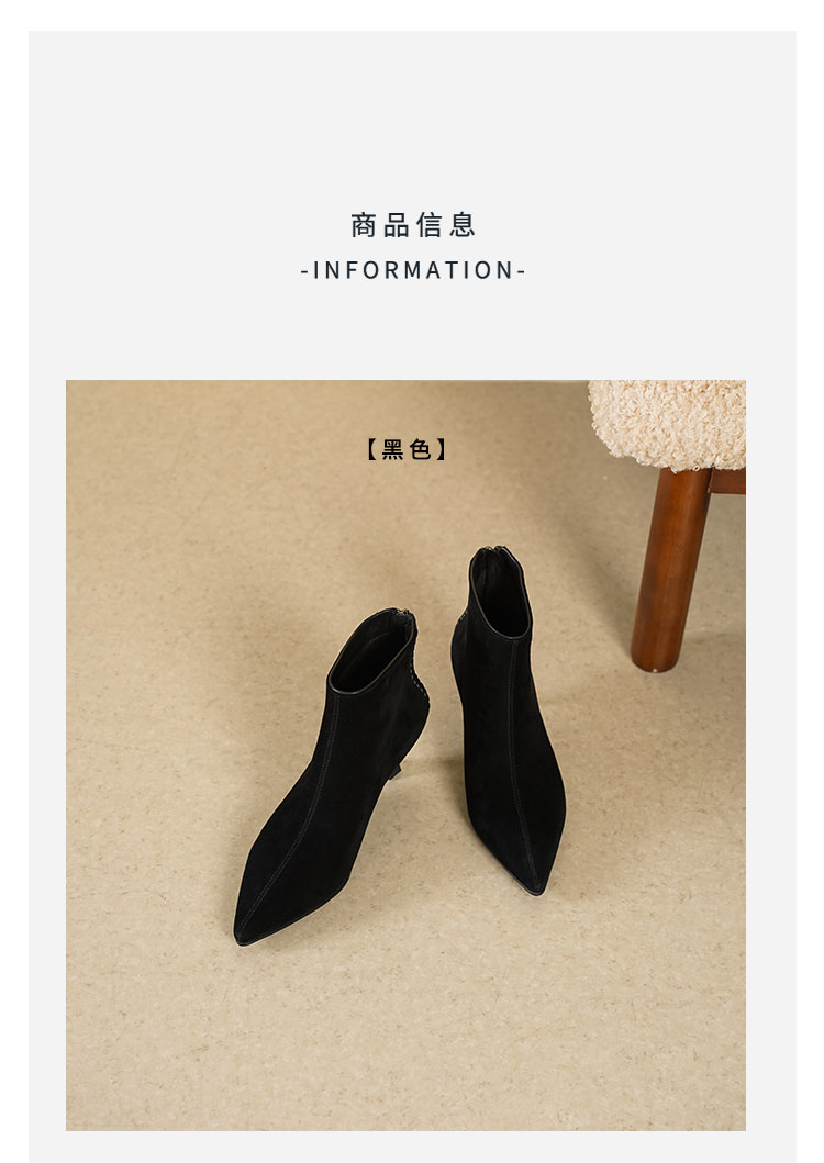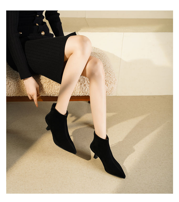 Westory2025年冬季绒面羊京尖头猫跟简约老钱风百搭短靴W25DS85561