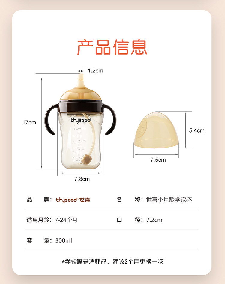 (会员专属价)世喜小月龄学饮杯300ml