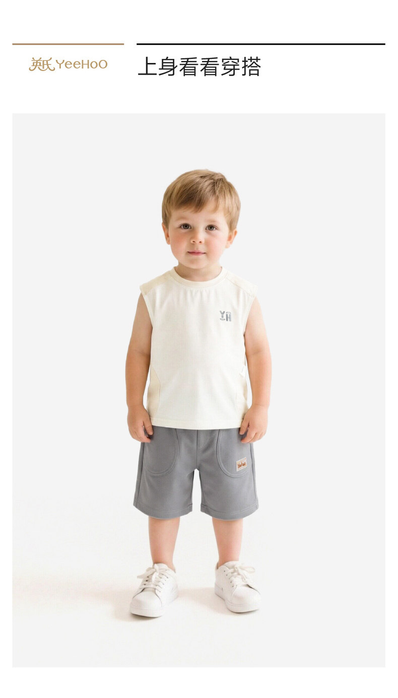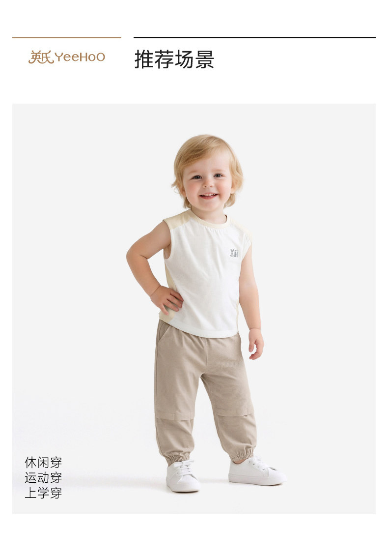 英氏儿童背心男女童夏季新款圆领透气抗菌打底无袖T恤YRBYJ2S081A