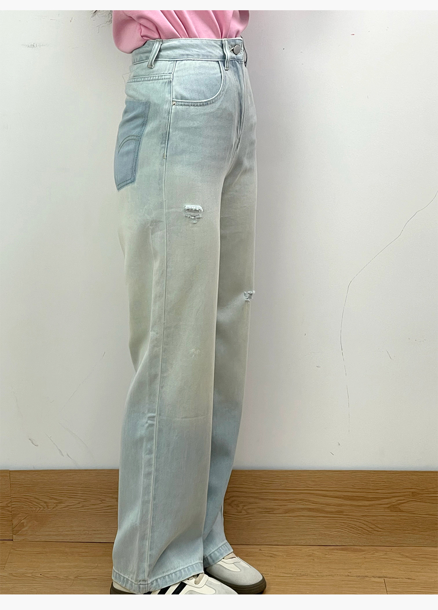 P&X设计师女装夏季阔腿百搭时尚简约牛仔长裤 824210383 蓝色