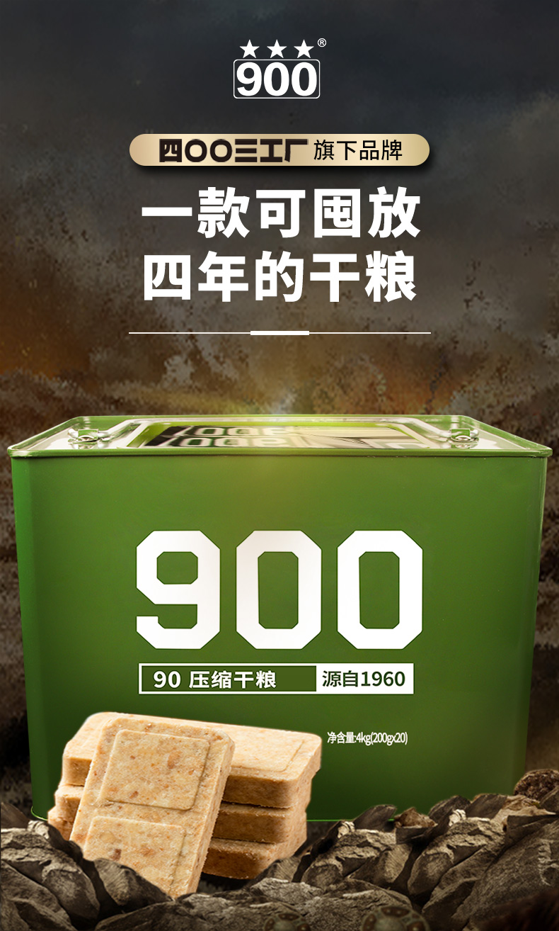90压缩饼干 全脂奶粉 200g*20袋 铁桶装 即食口粮压缩干粮