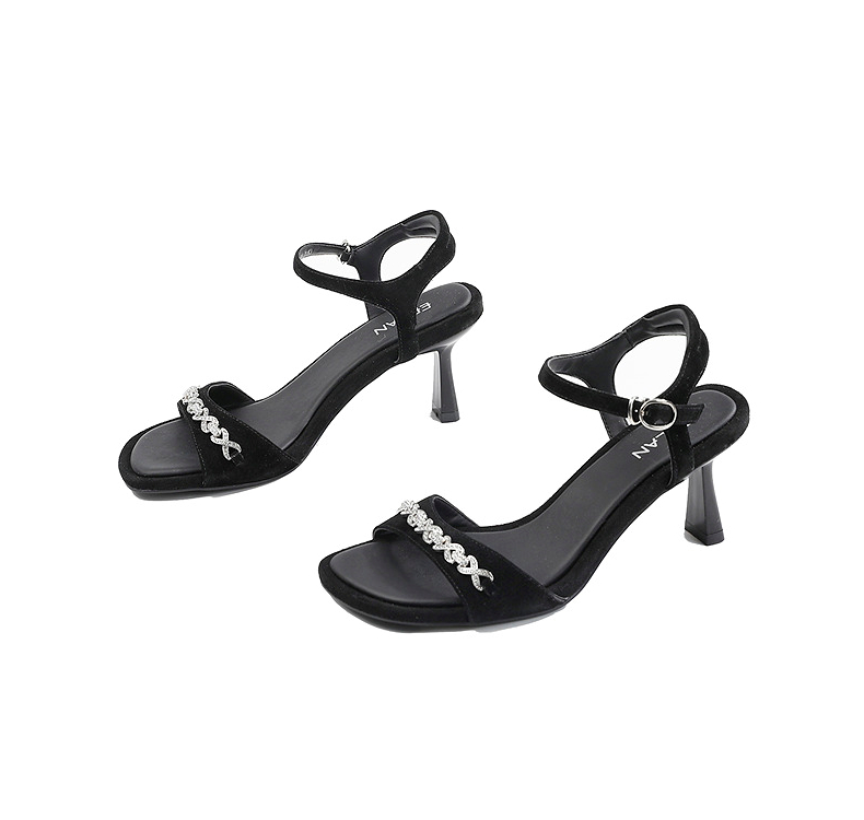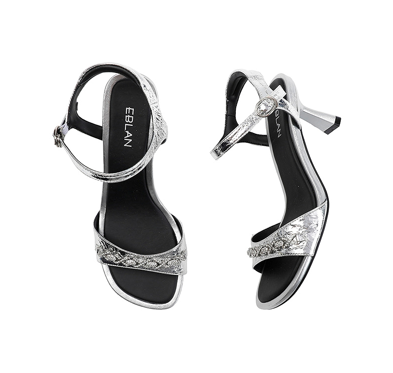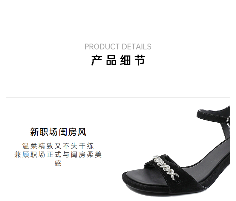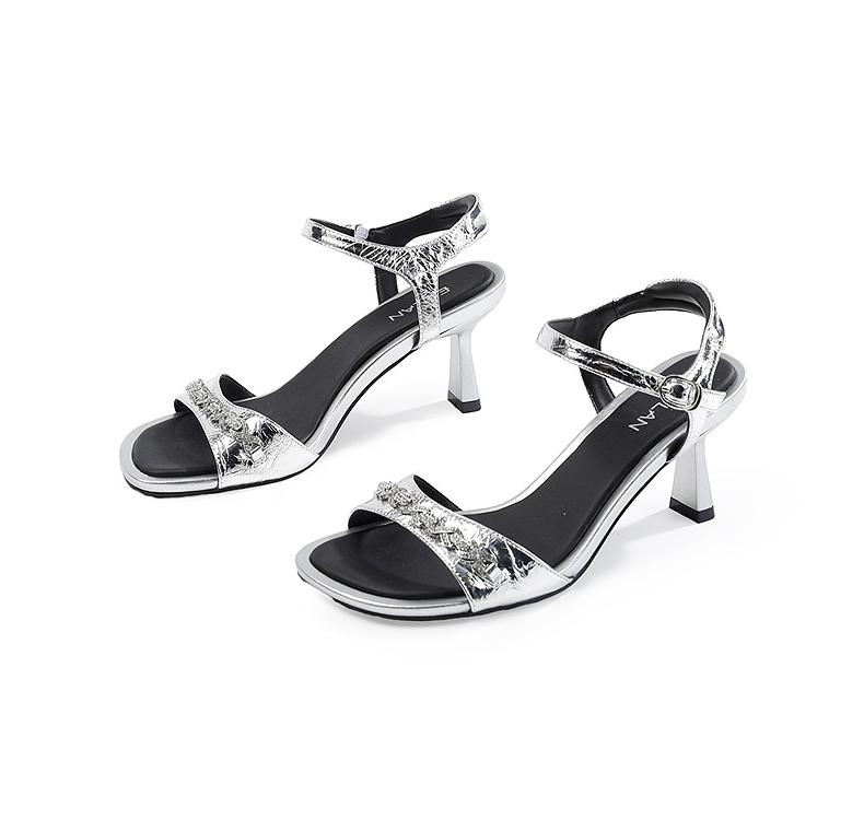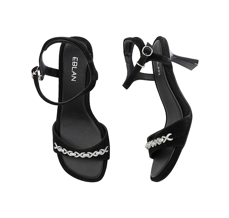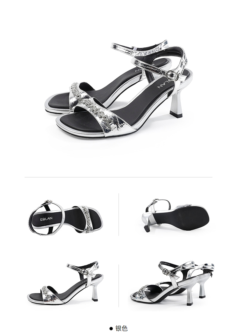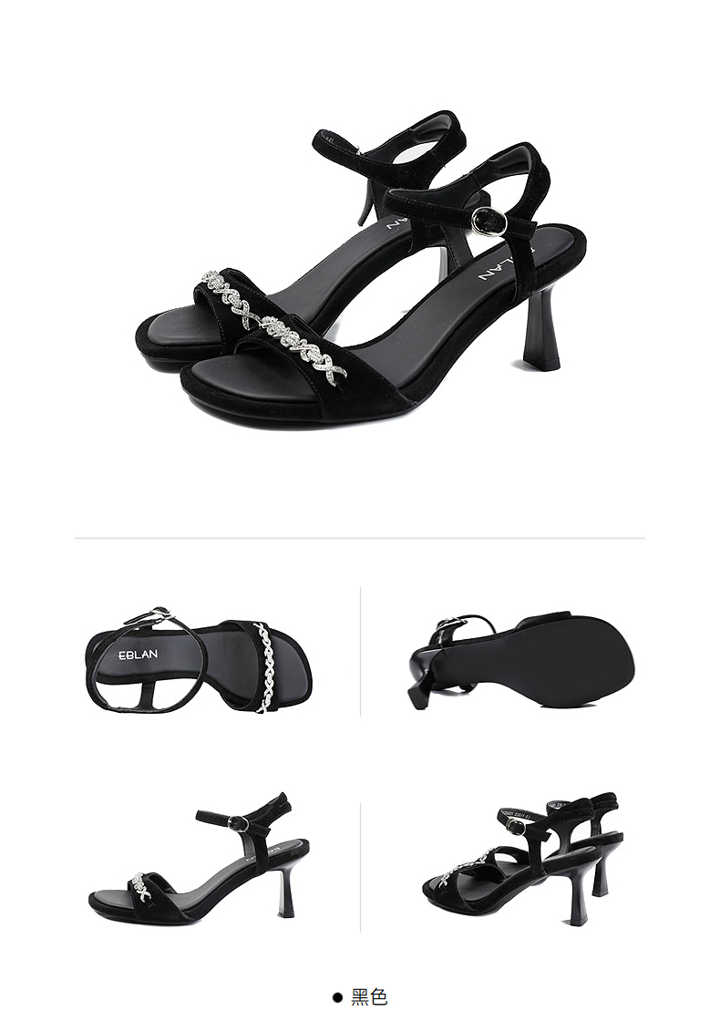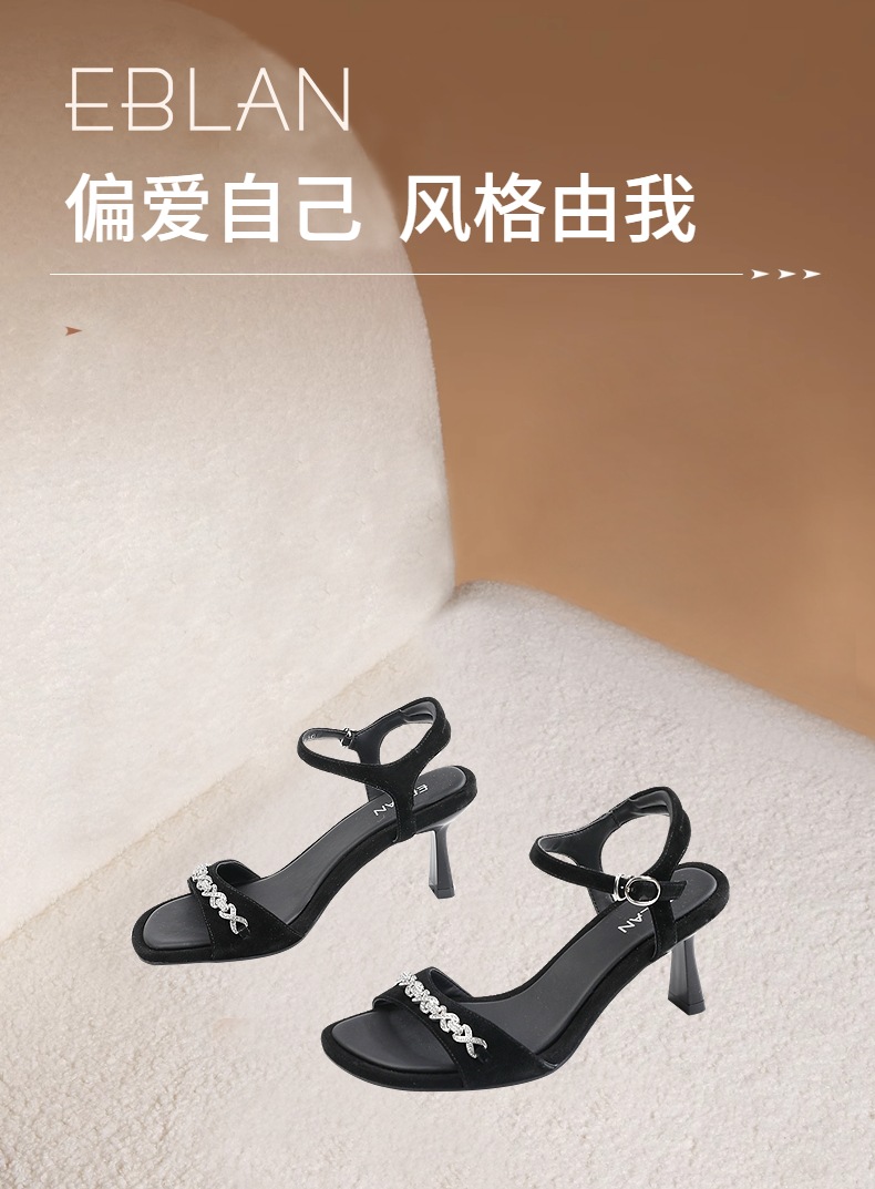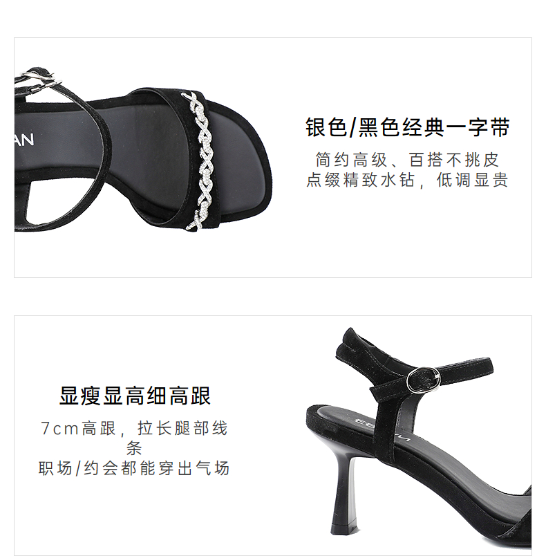 伊伴2026夏季新职场闺房风水钻一字带真皮高跟鞋B26366120