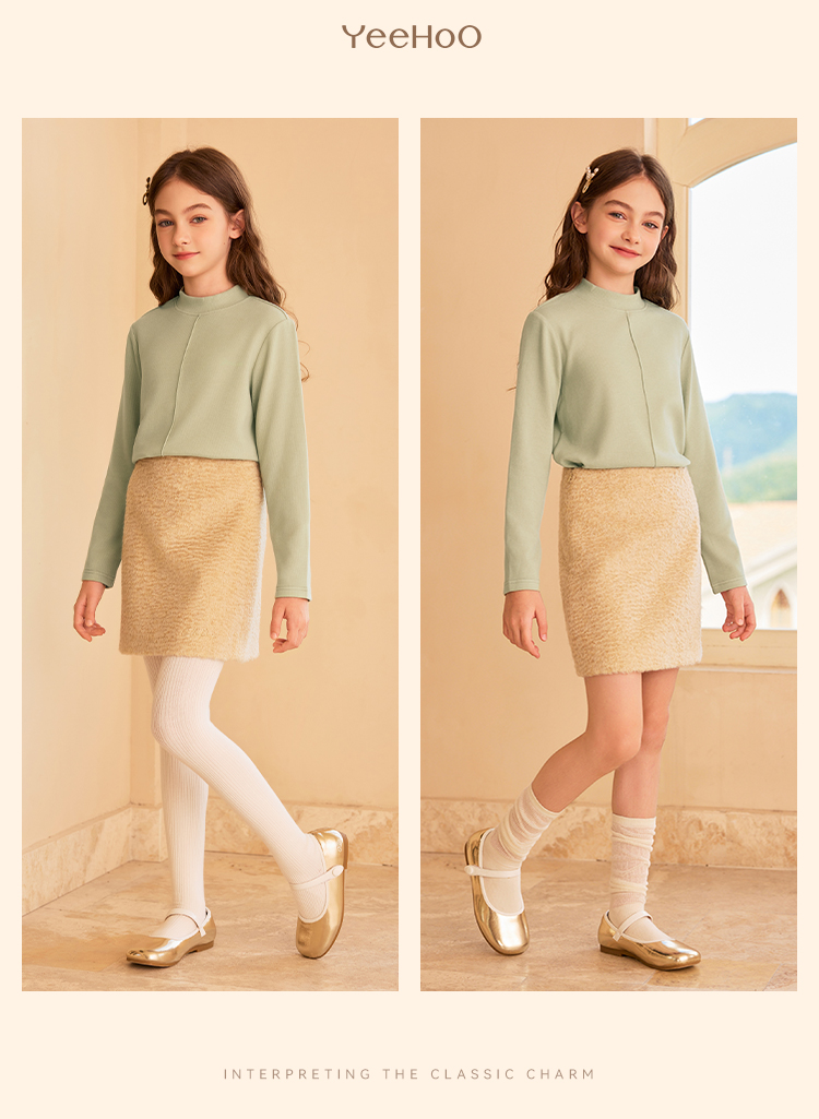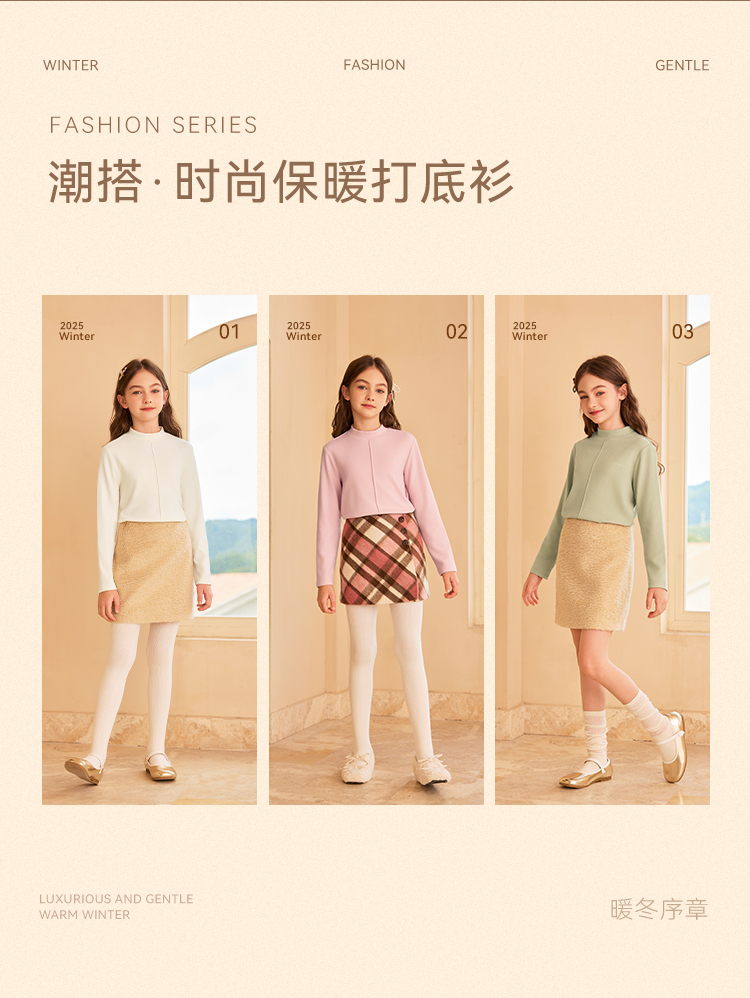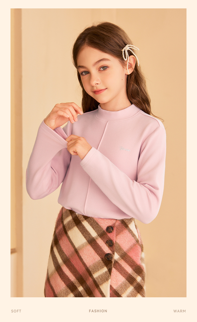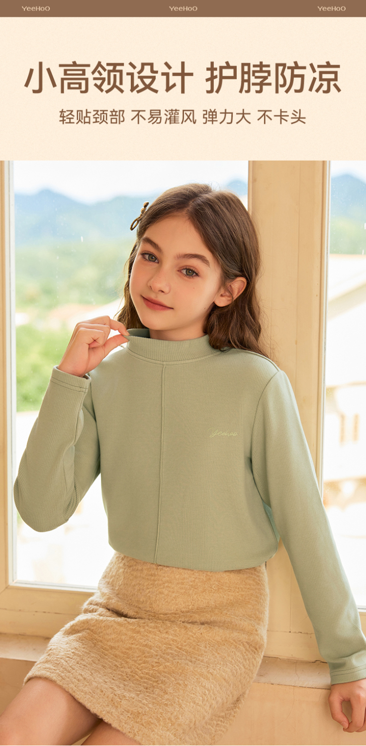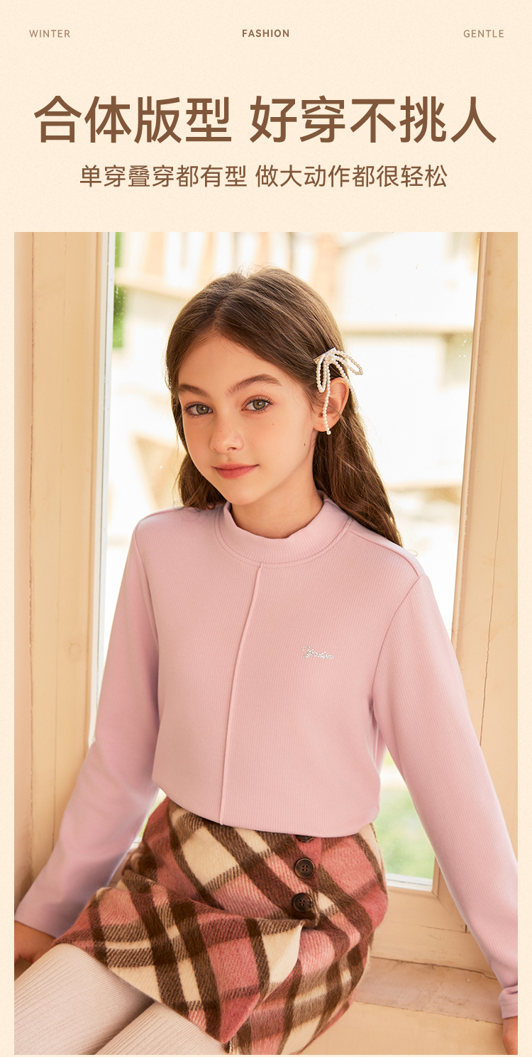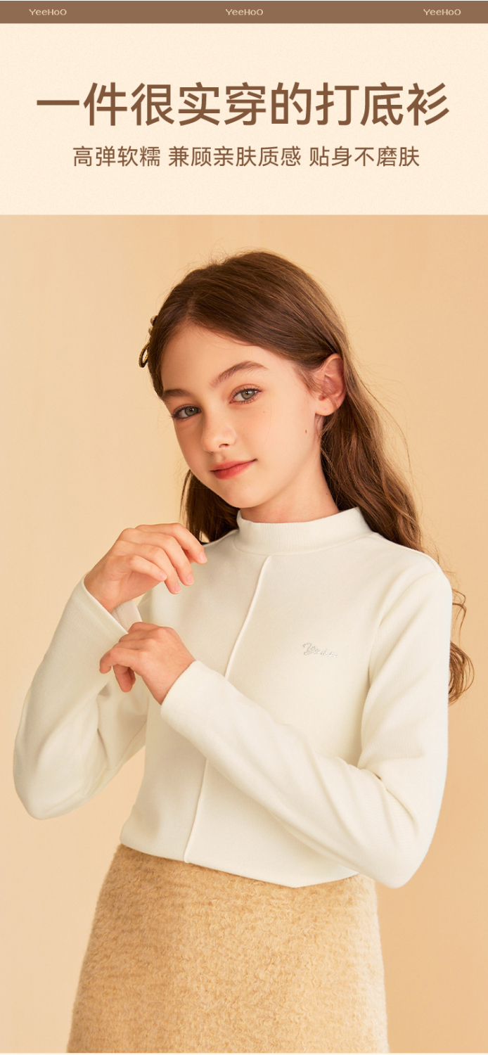 【英氏】【德绒暖感】【110-175】女童半高领打底衫