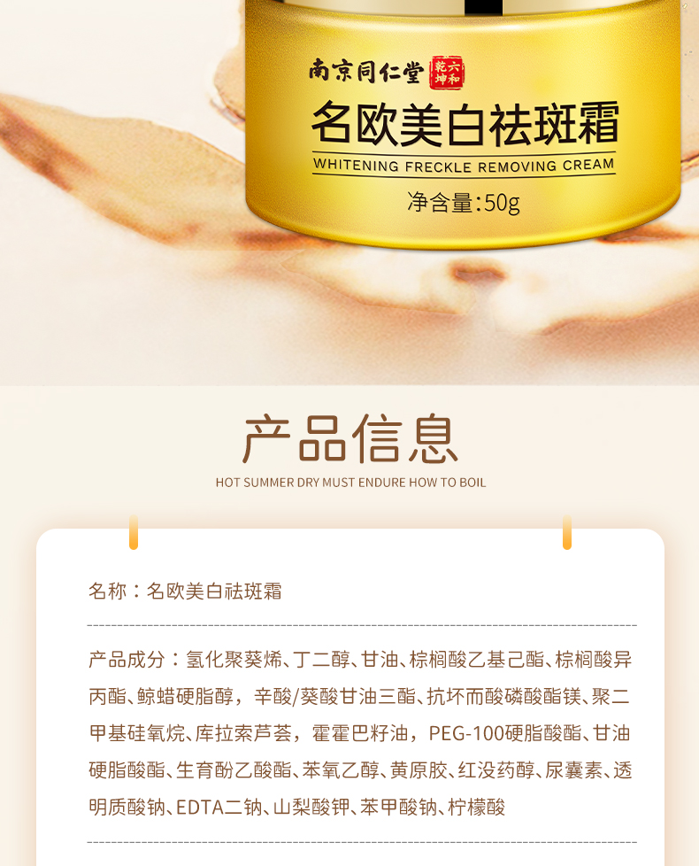【三罐更划算】南京同仁堂祛斑霜 50g/罐老年斑雀斑黑斑痘印晒斑肤黄淡斑膏 金装版