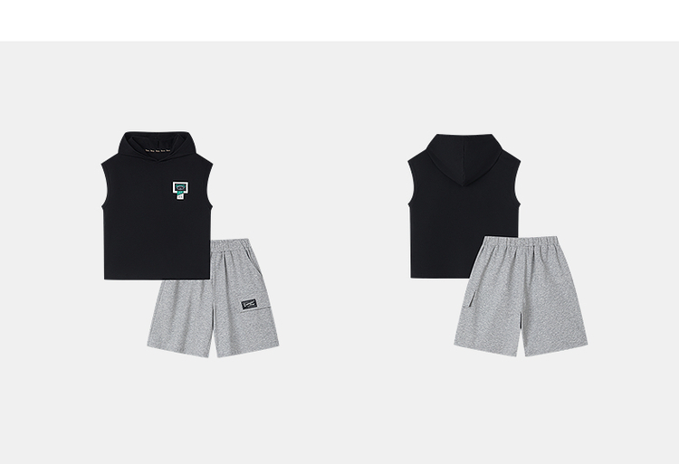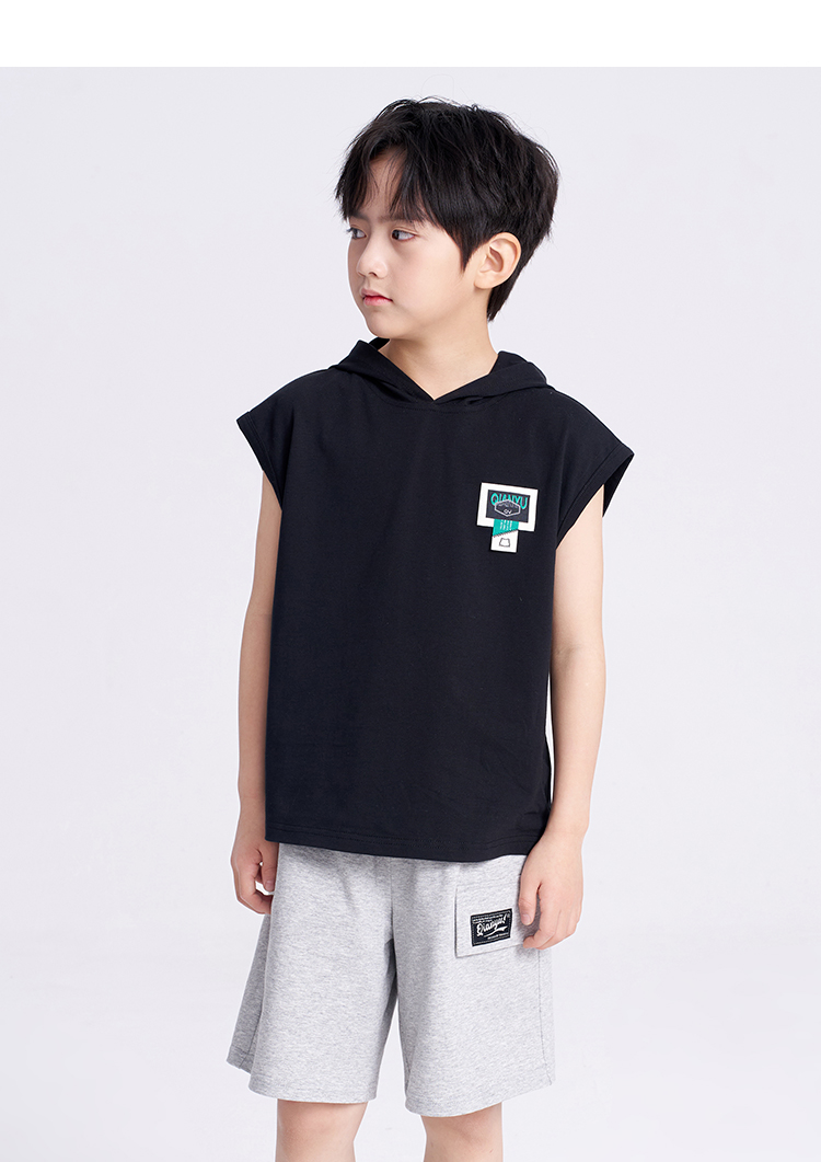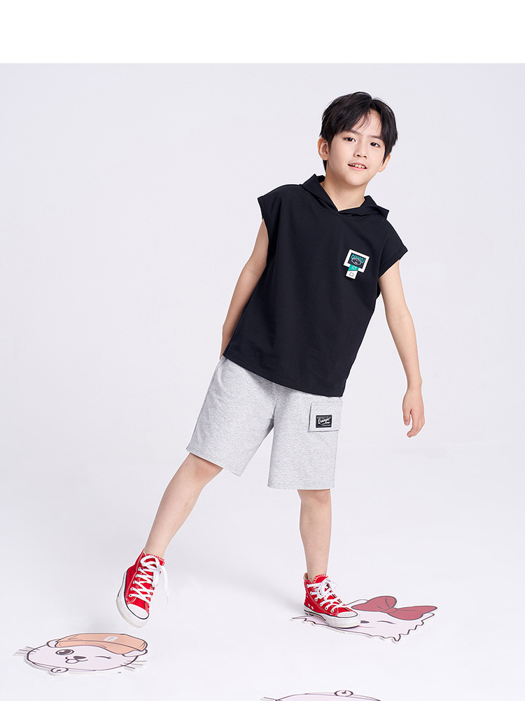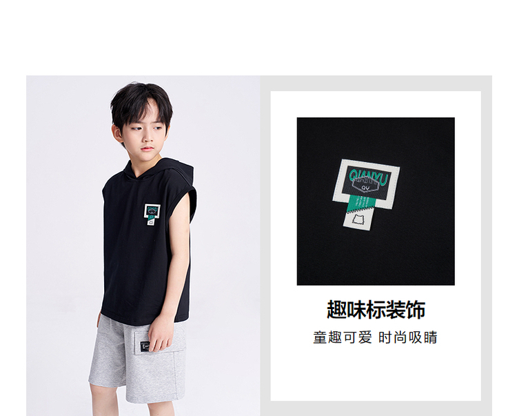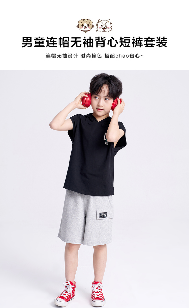 笛莎千与2025夏新款男童连帽无袖背心短裤套装
