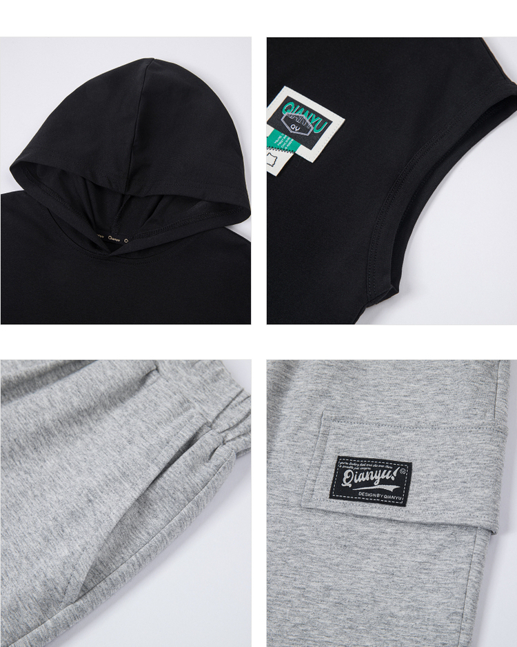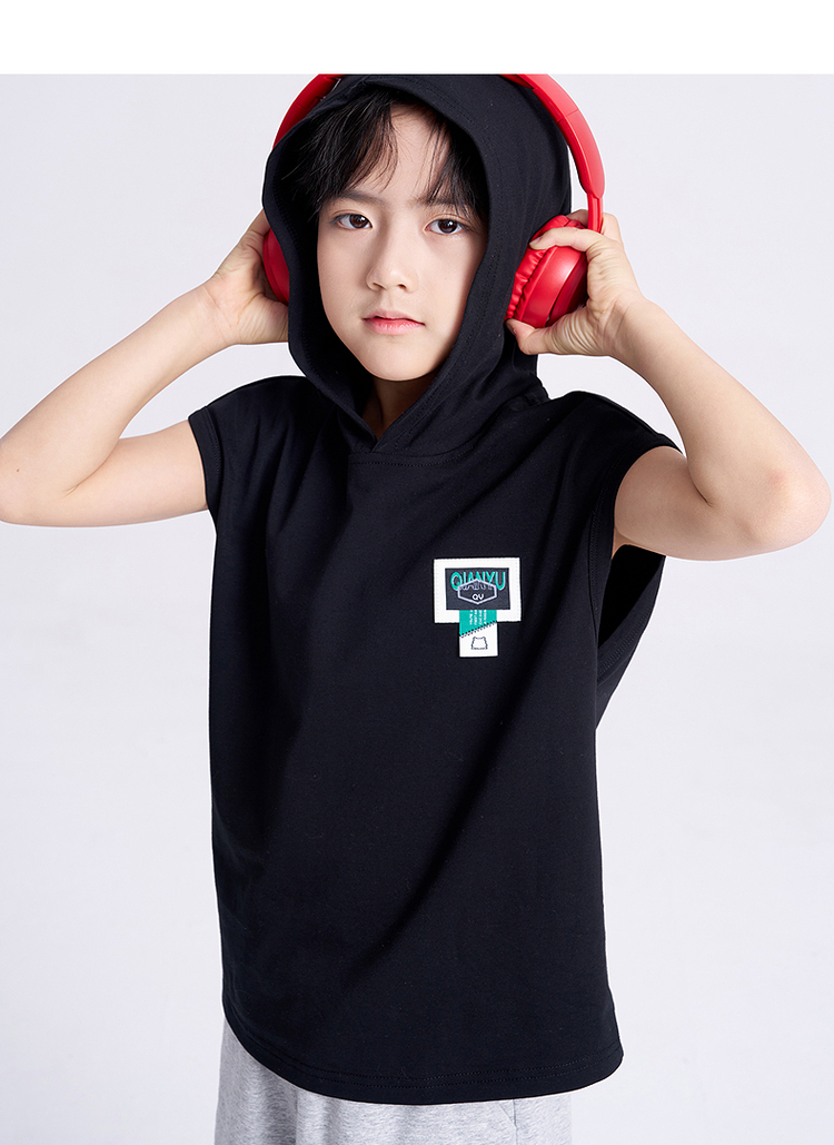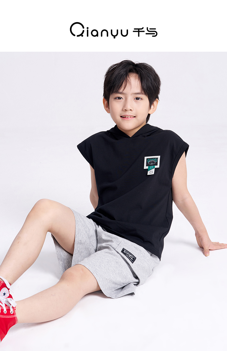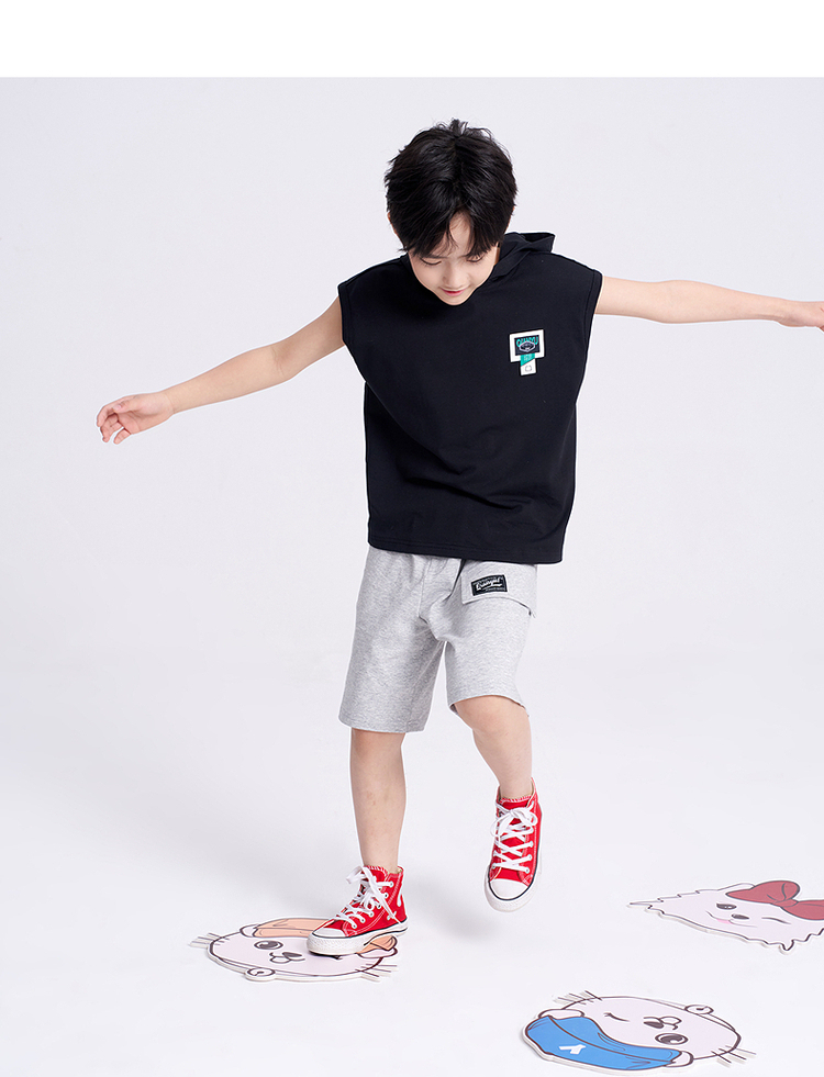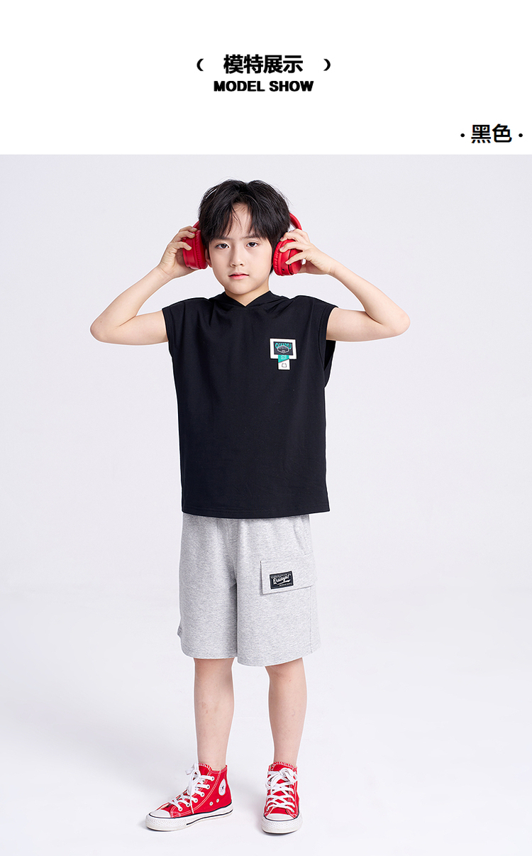 笛莎千与2025夏新款男童连帽无袖背心短裤套装