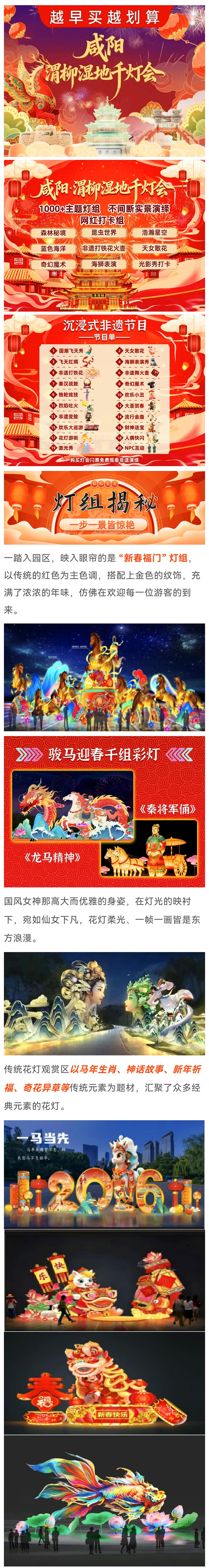 【咸阳渭柳湿地千灯会】¥19.9起抢单人票1.2米以下儿童免票!骏马迎春千组彩灯+非遗打铁花火壶+天女散花+烈焰吐火+海狮表演+实景演绎(春节可用)