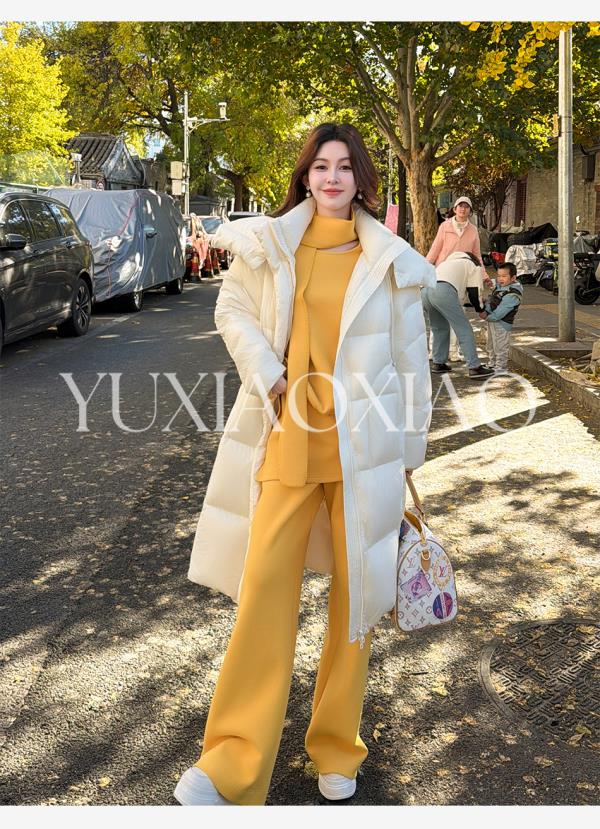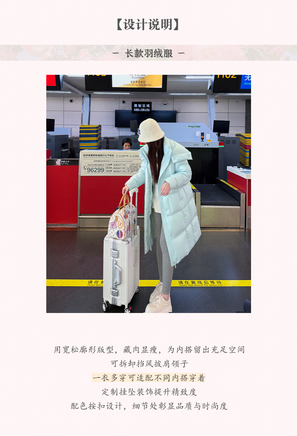 余潇潇【超时空漫游】高克重防钻绒95白鹅绒可拆卸披肩领长款羽绒服
