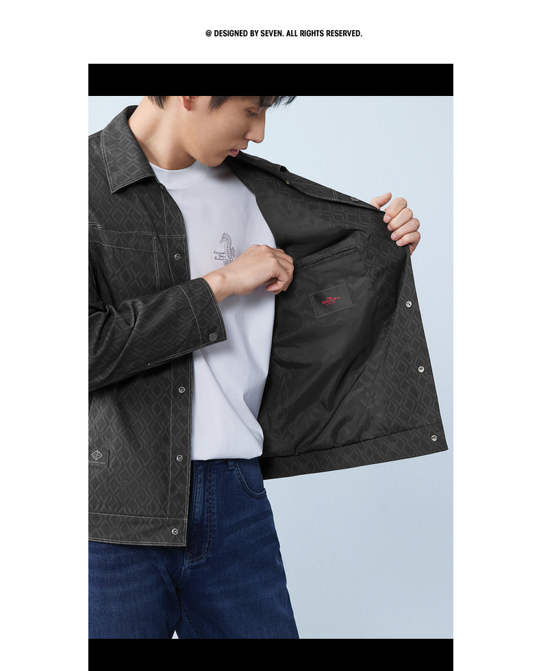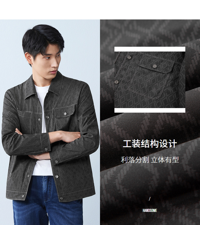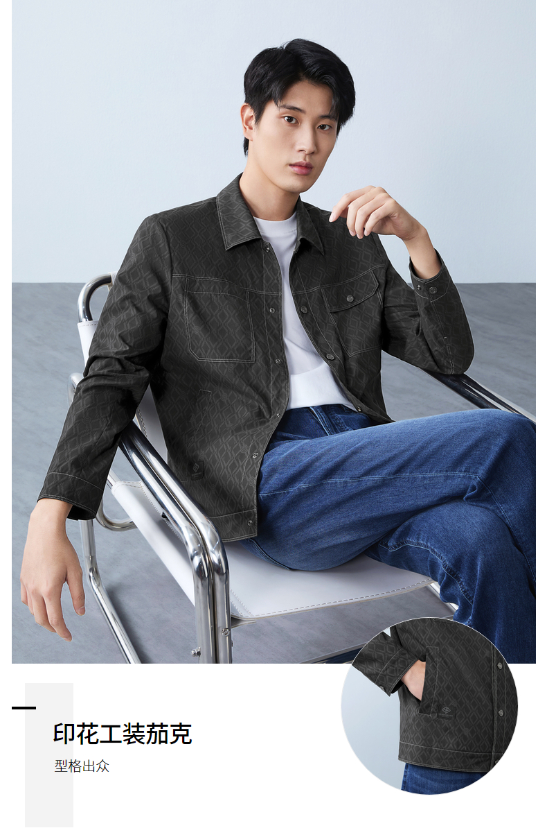 【印花工装茄克】柒牌男装2026春季新款几何图形都市休闲百搭夹克 130K70490