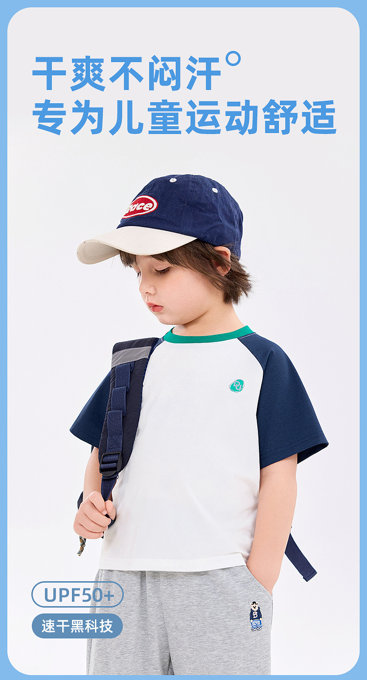 【UPF50+】嘟嘟家儿童短袖T恤夏季防晒男童半袖吸湿速干女童童装