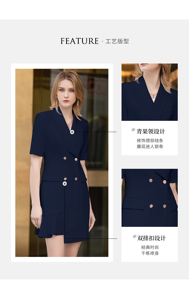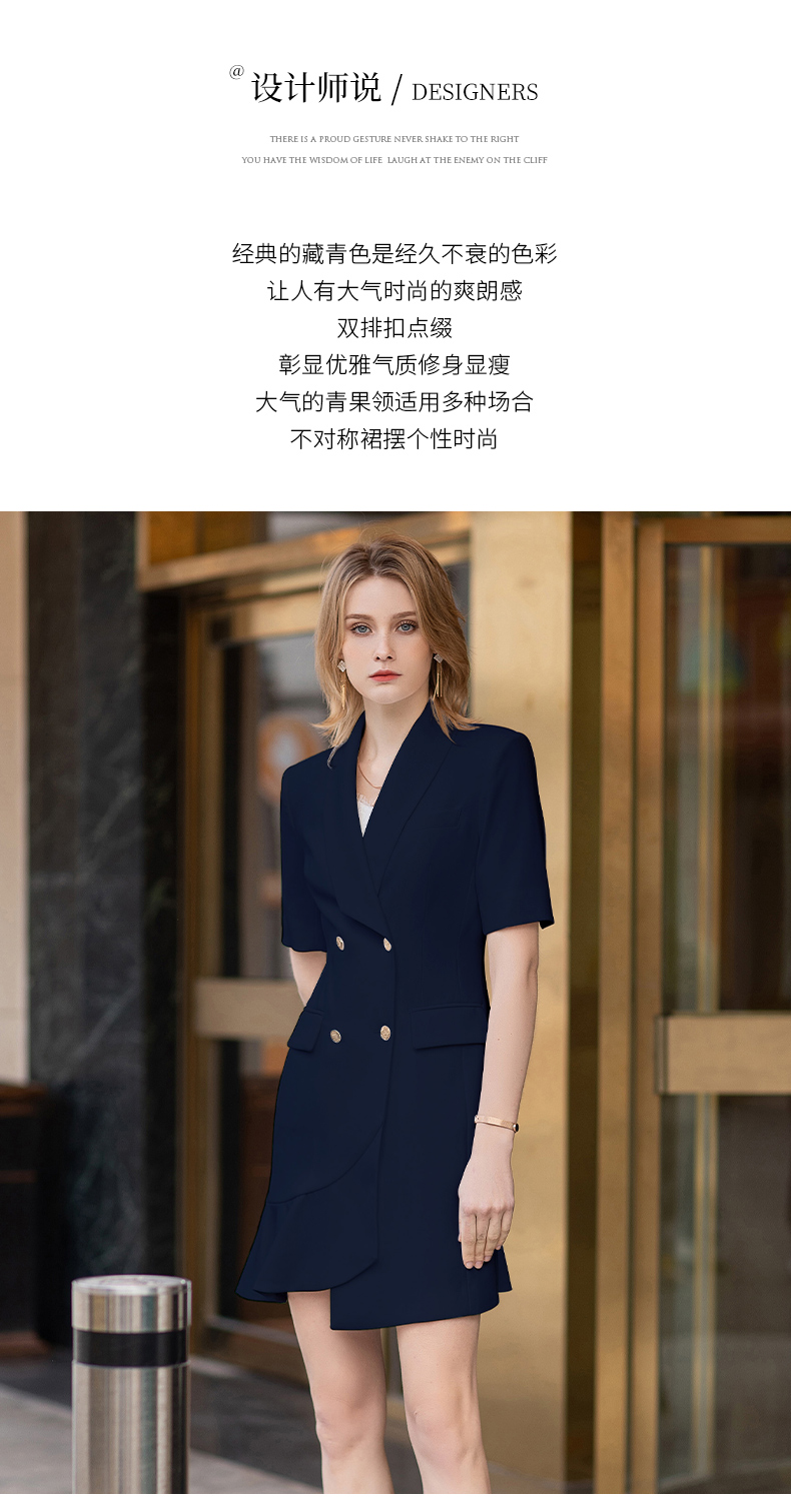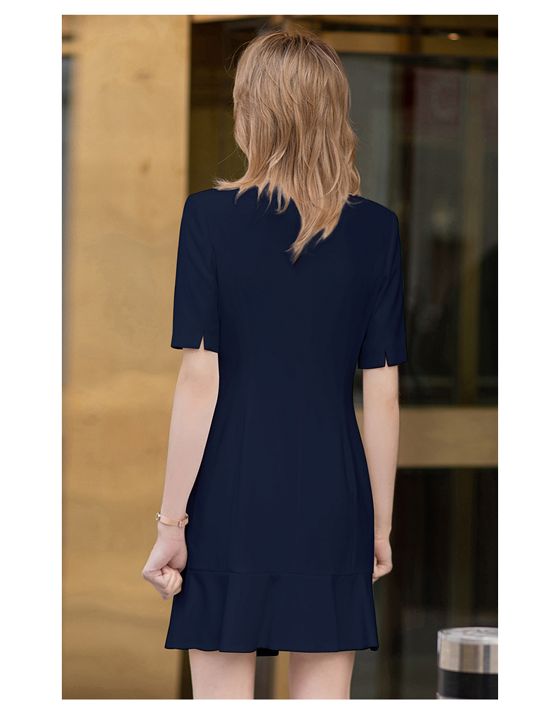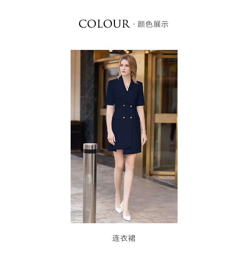 IWY/短袖藏青色连衣裙西装裙修身显瘦商务气质职业OL职场工装正装Q11255