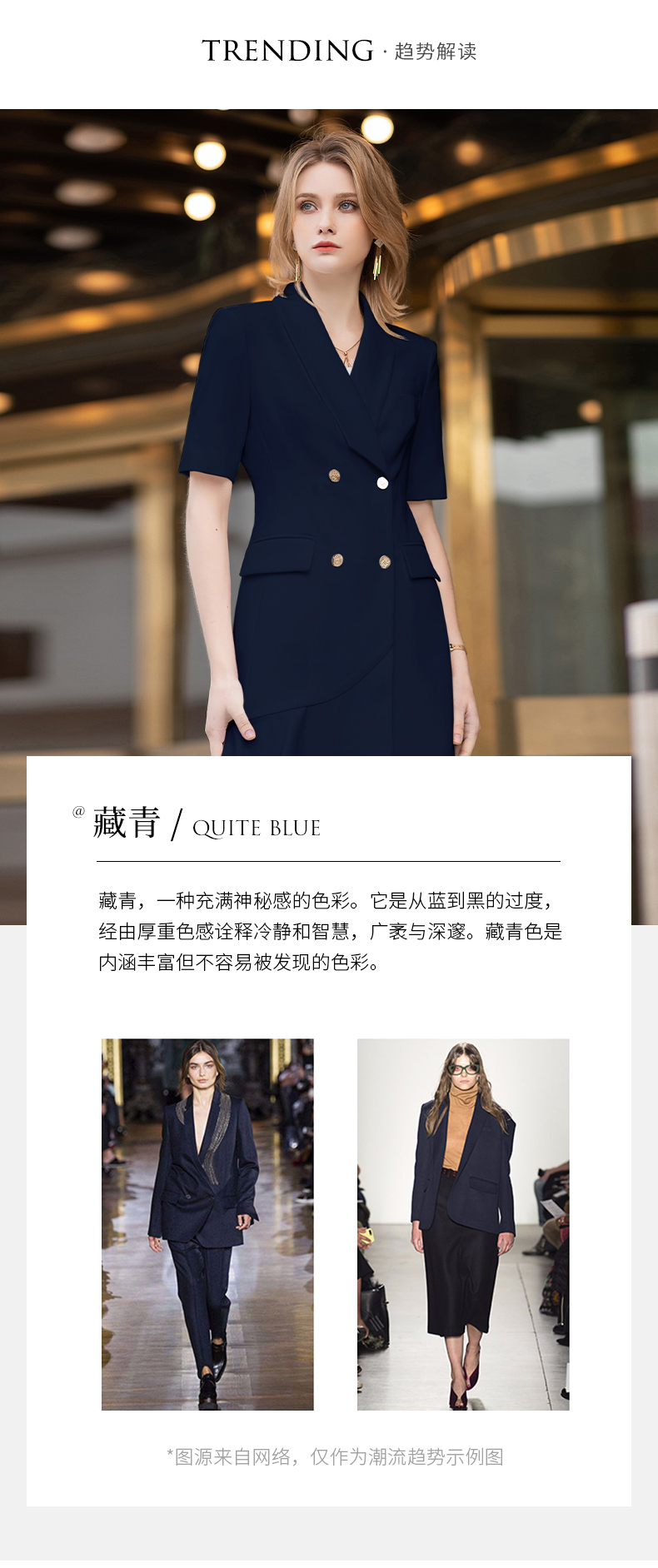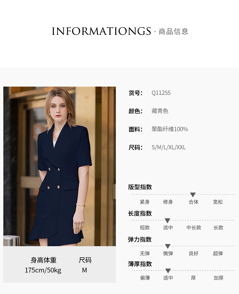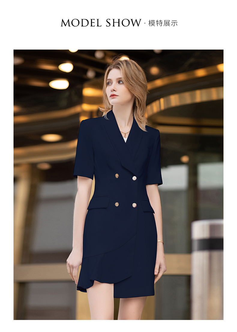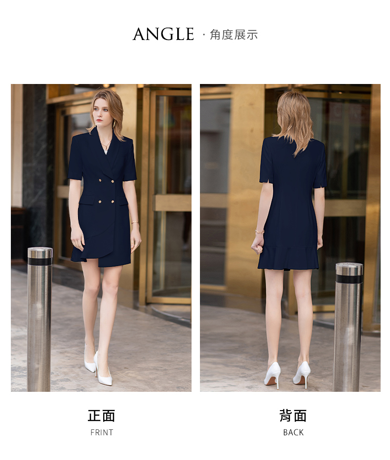 IWY/短袖藏青色连衣裙西装裙修身显瘦商务气质职业OL职场工装正装Q11255