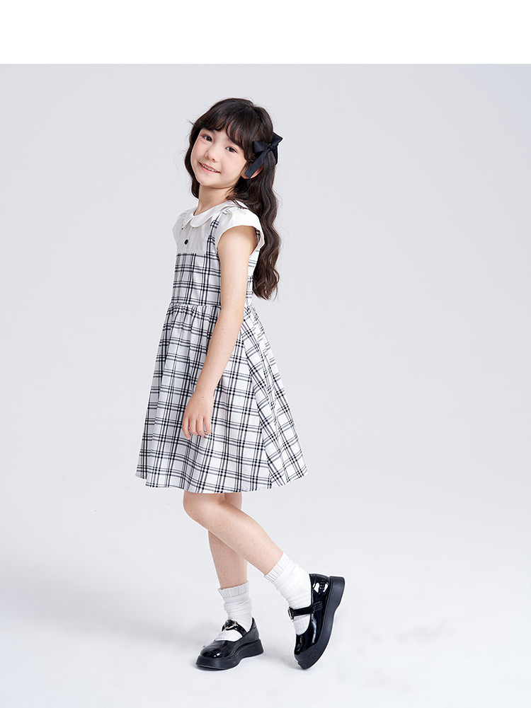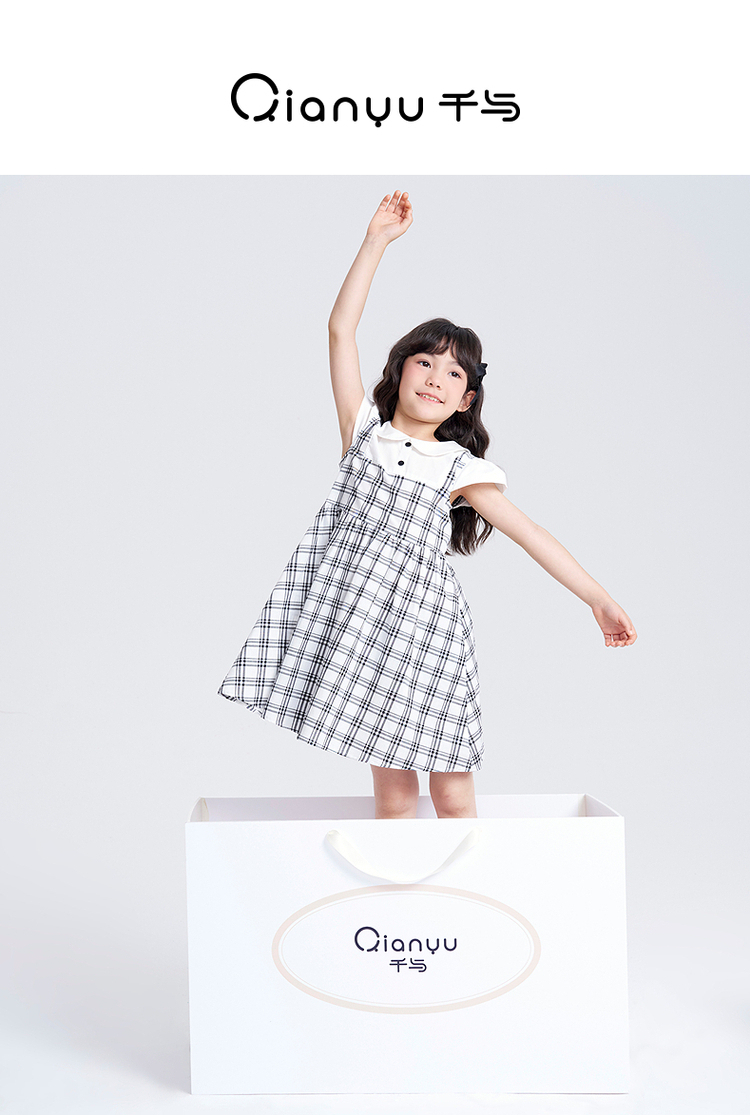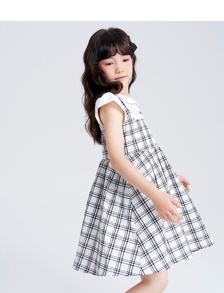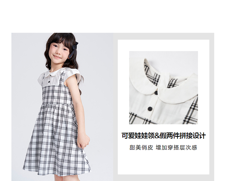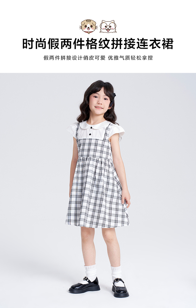 笛莎千与2025夏季新款女童时尚假两件格纹拼接连衣裙
