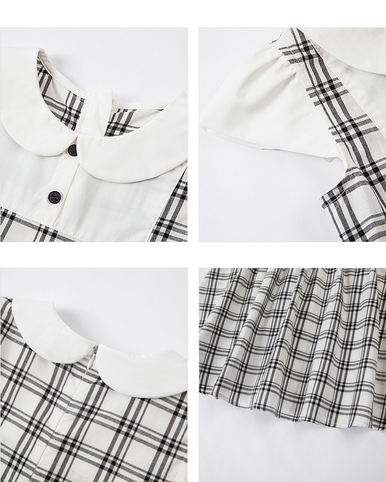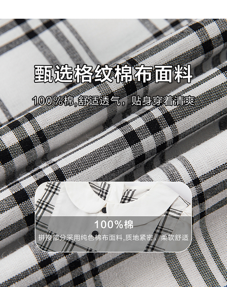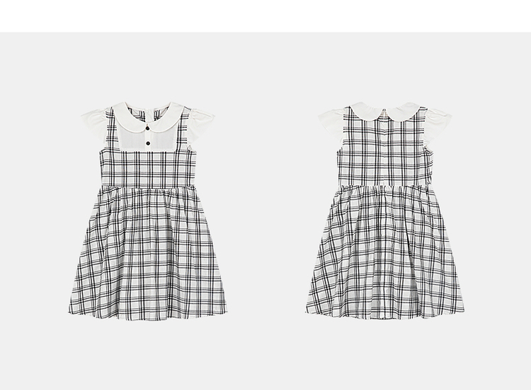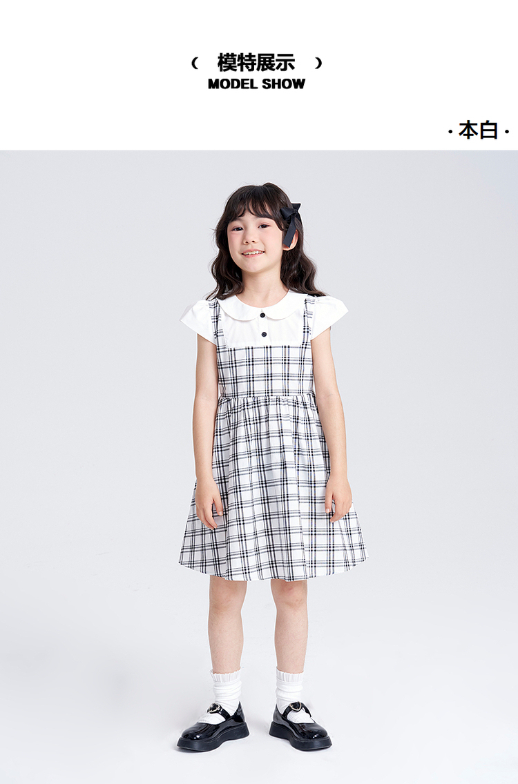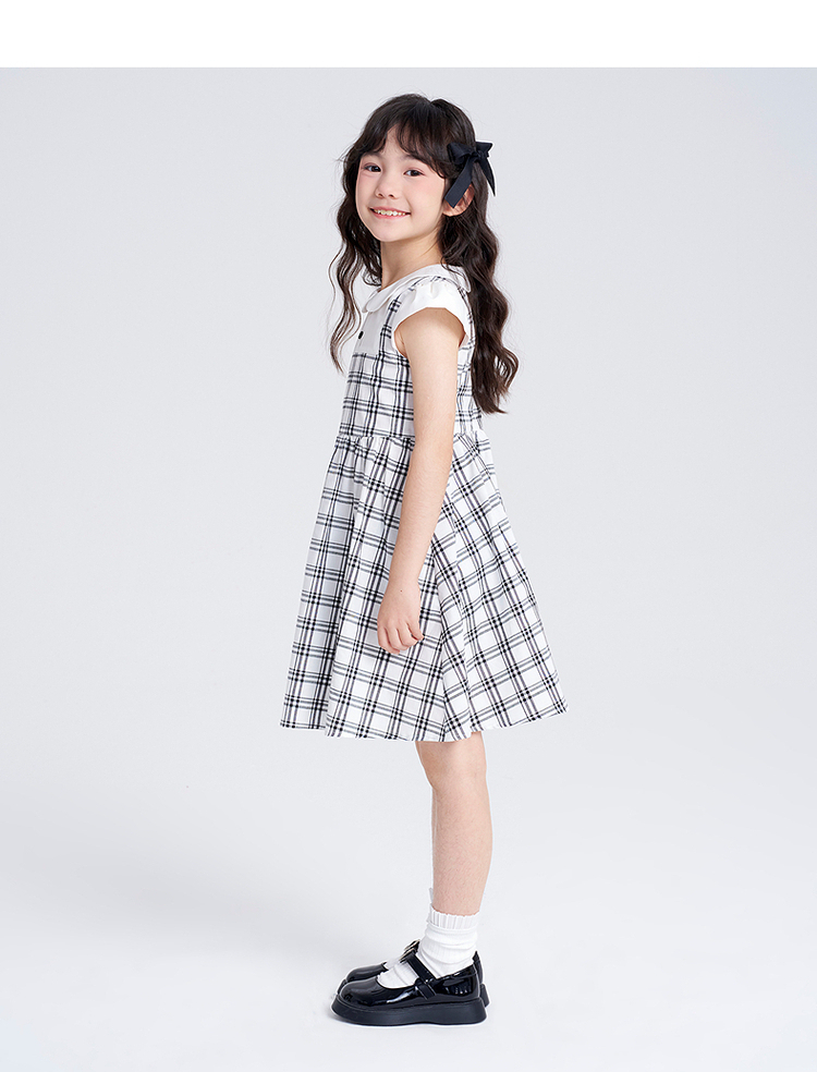 笛莎千与2025夏季新款女童时尚假两件格纹拼接连衣裙
