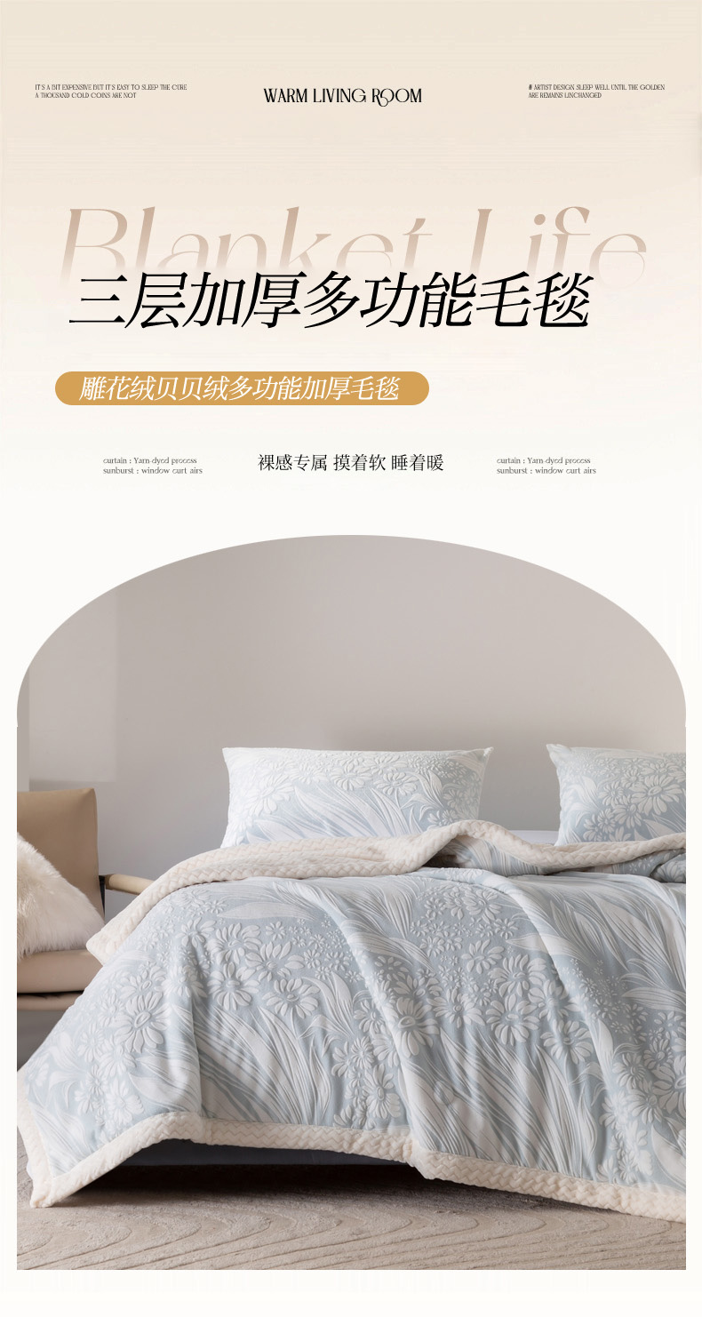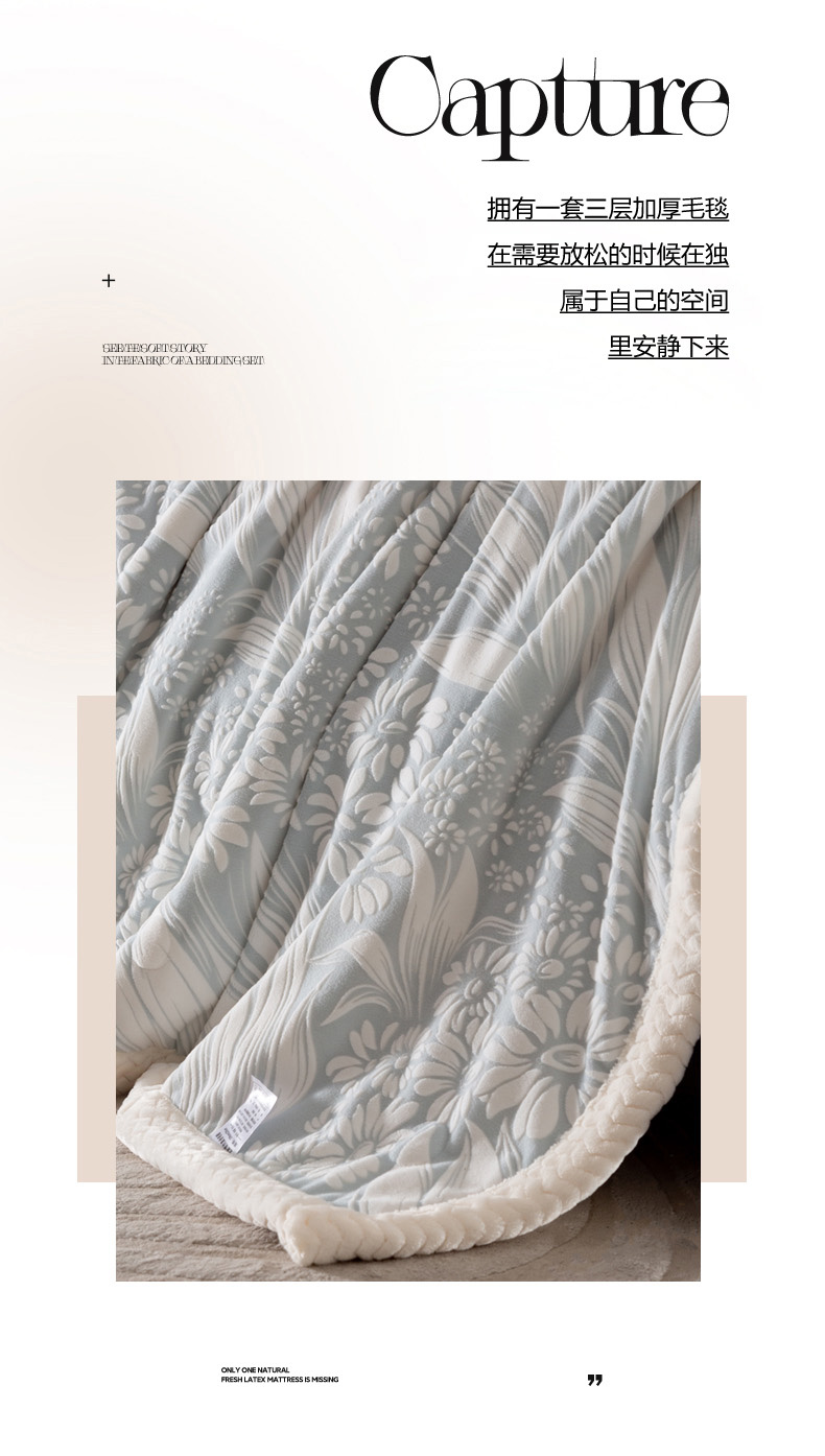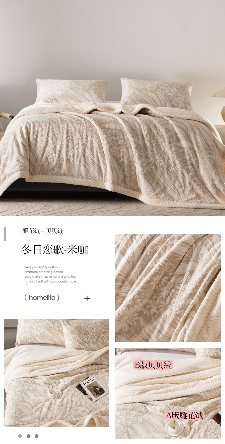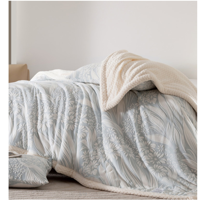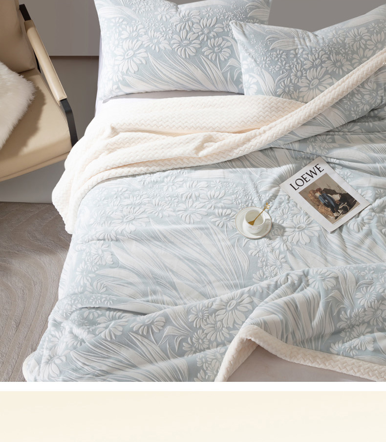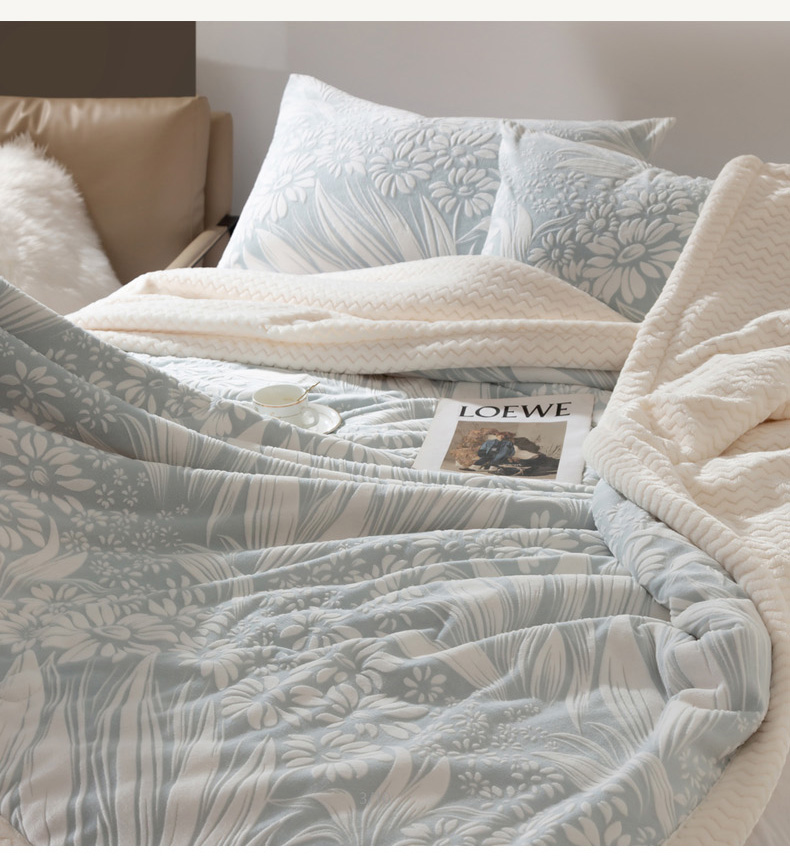 秋冬三层夹棉花卉款雕花绒毛毯