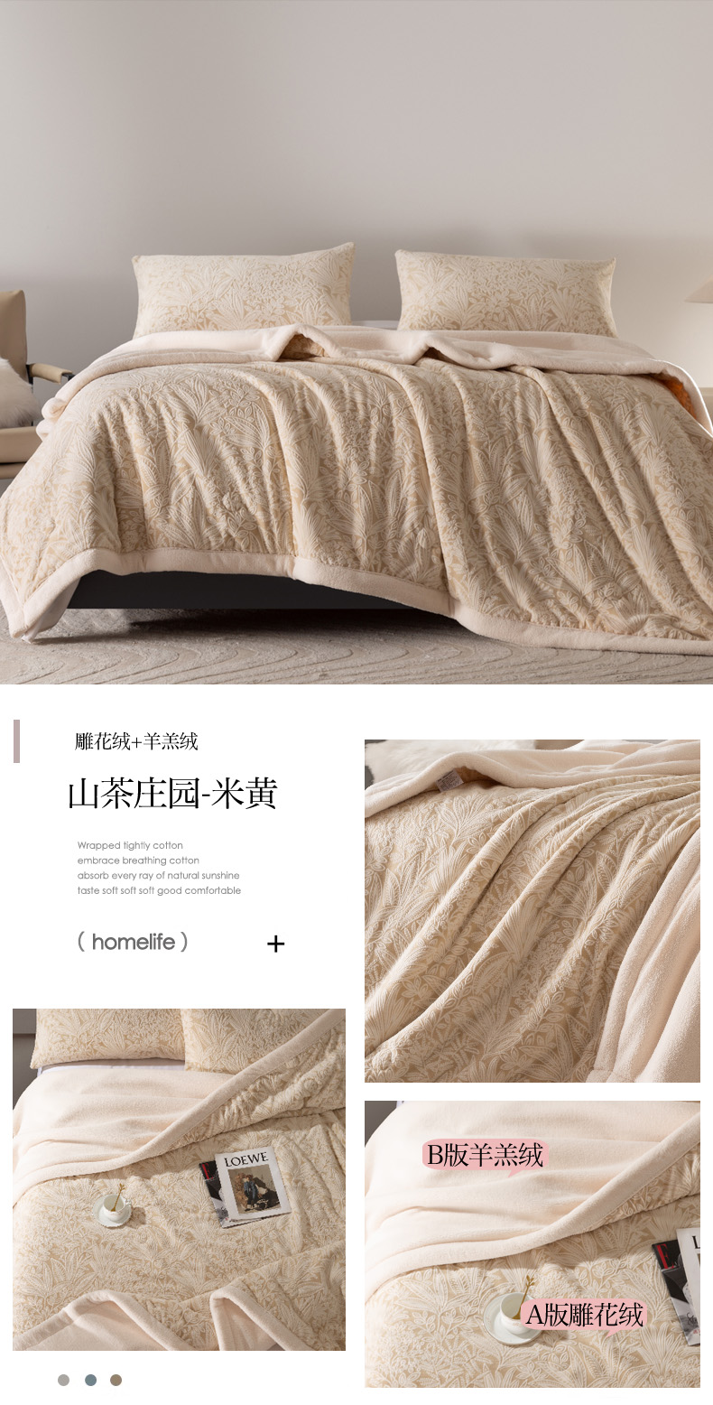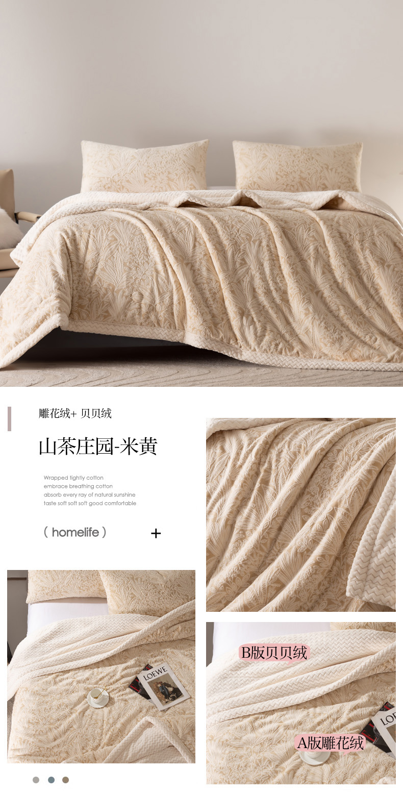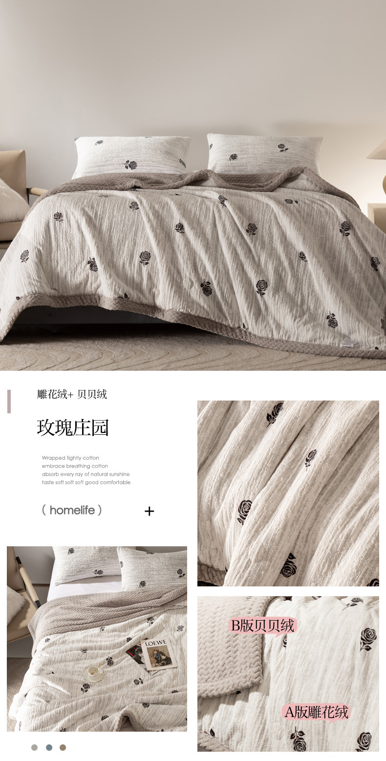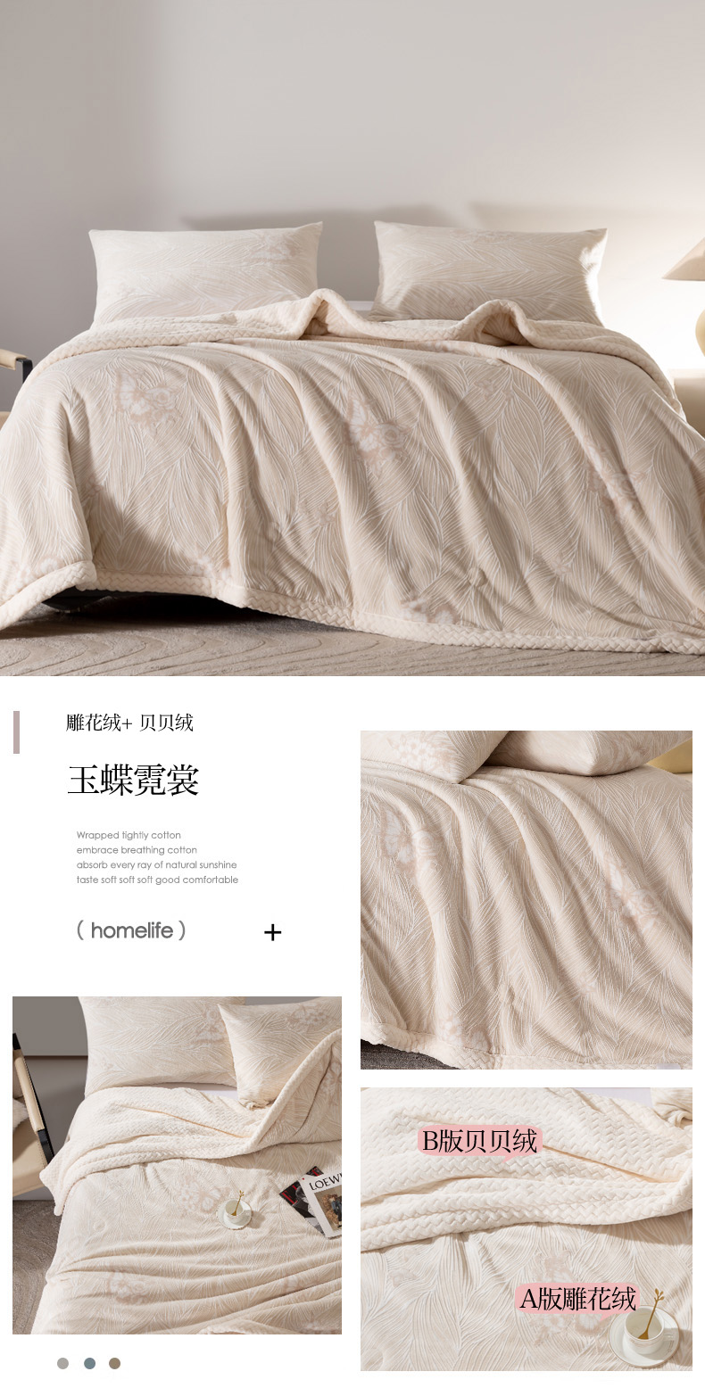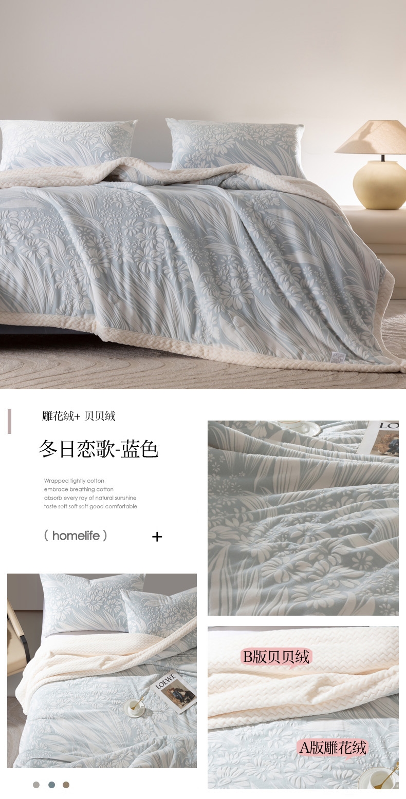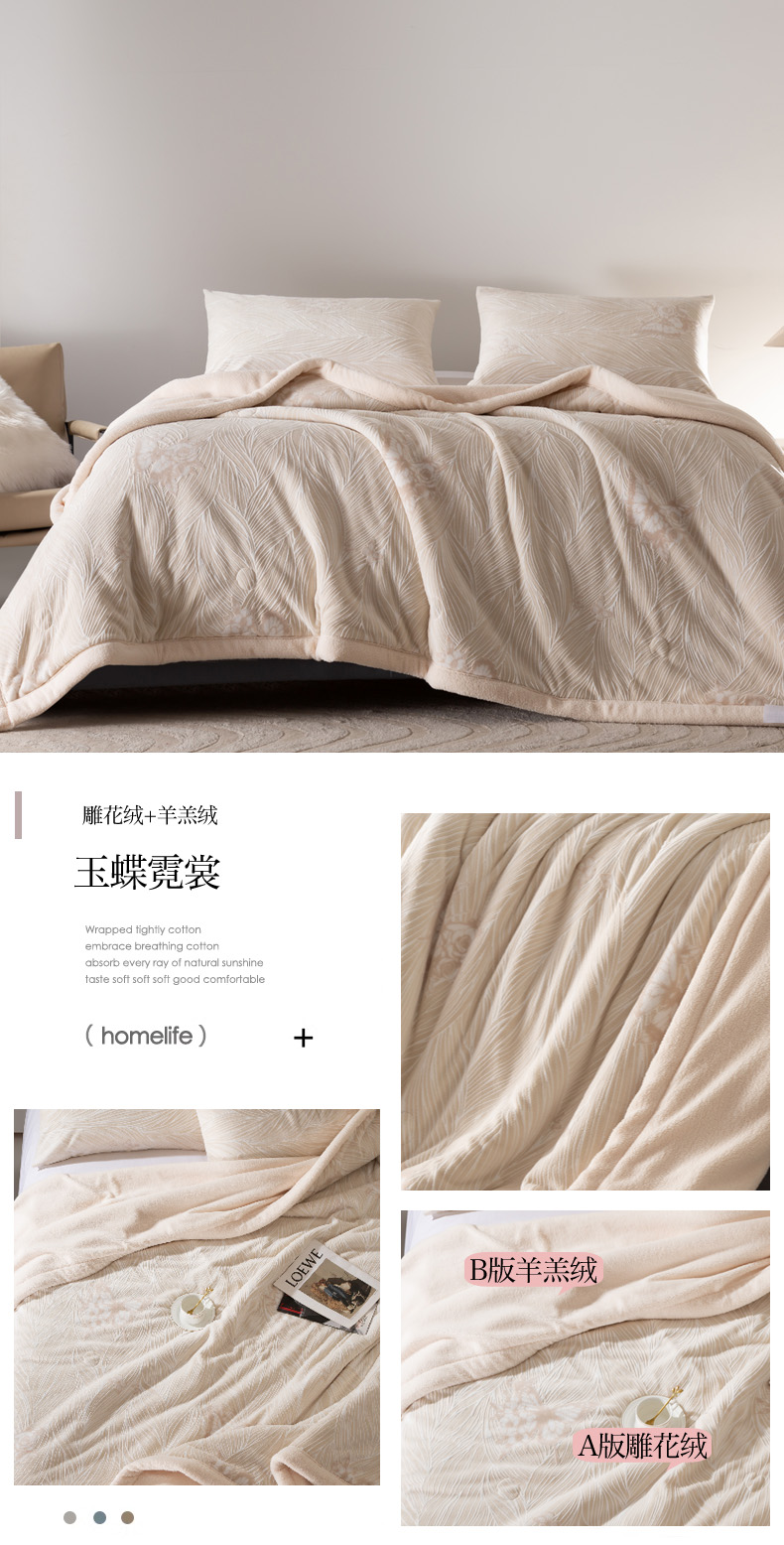 秋冬三层夹棉花卉款雕花绒毛毯