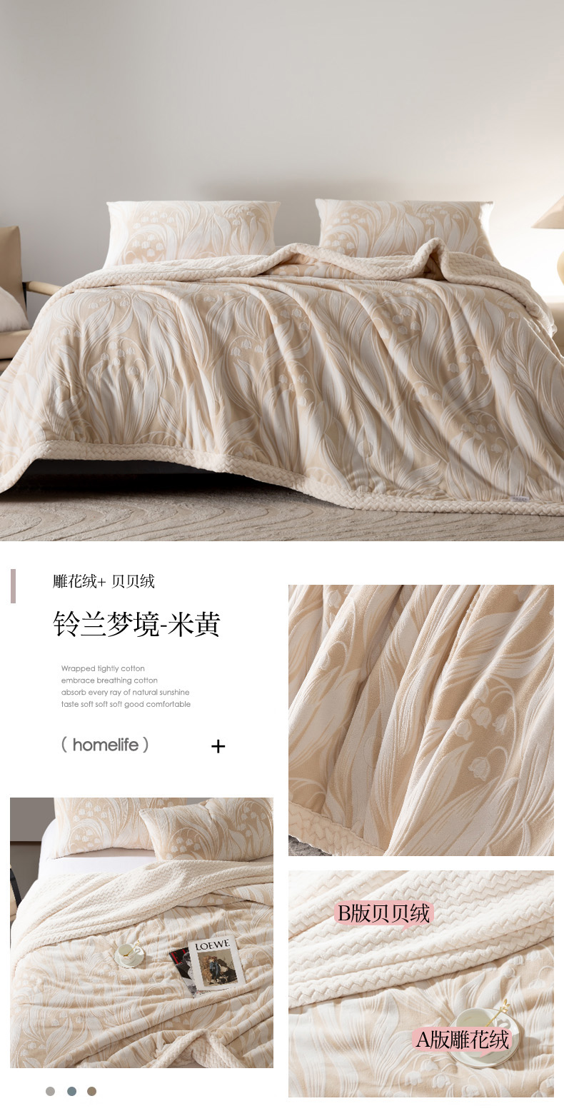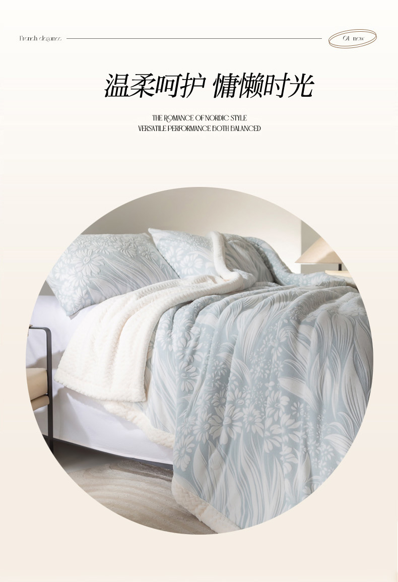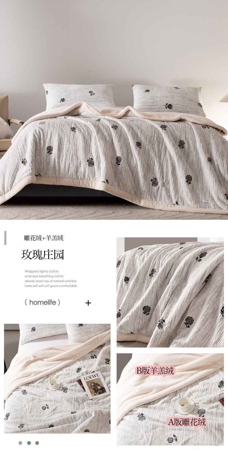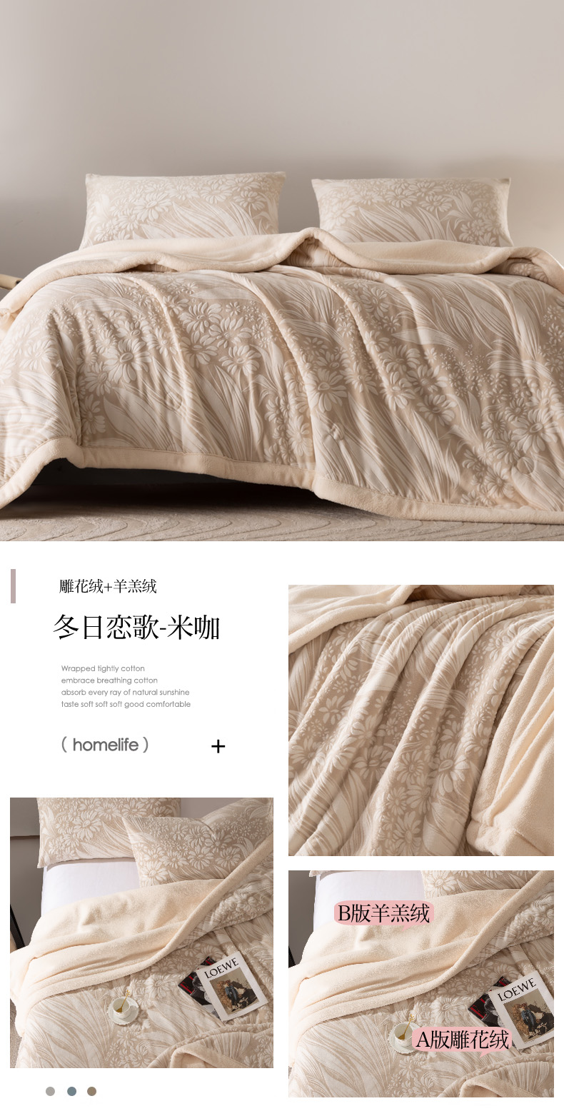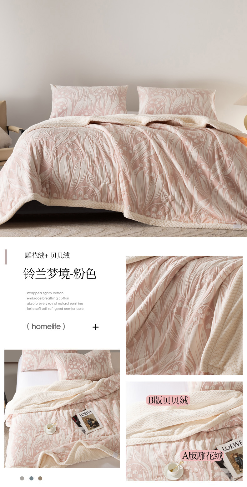 秋冬三层夹棉花卉款雕花绒毛毯