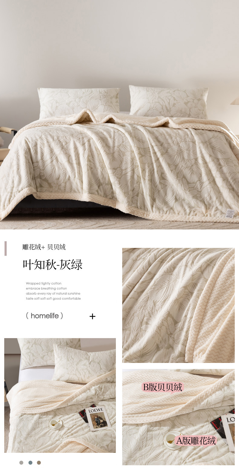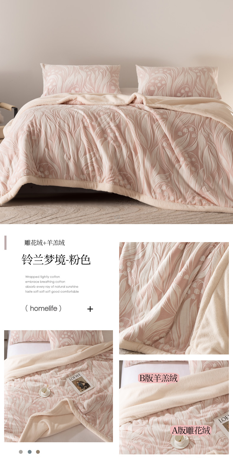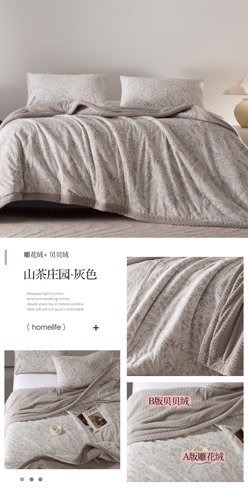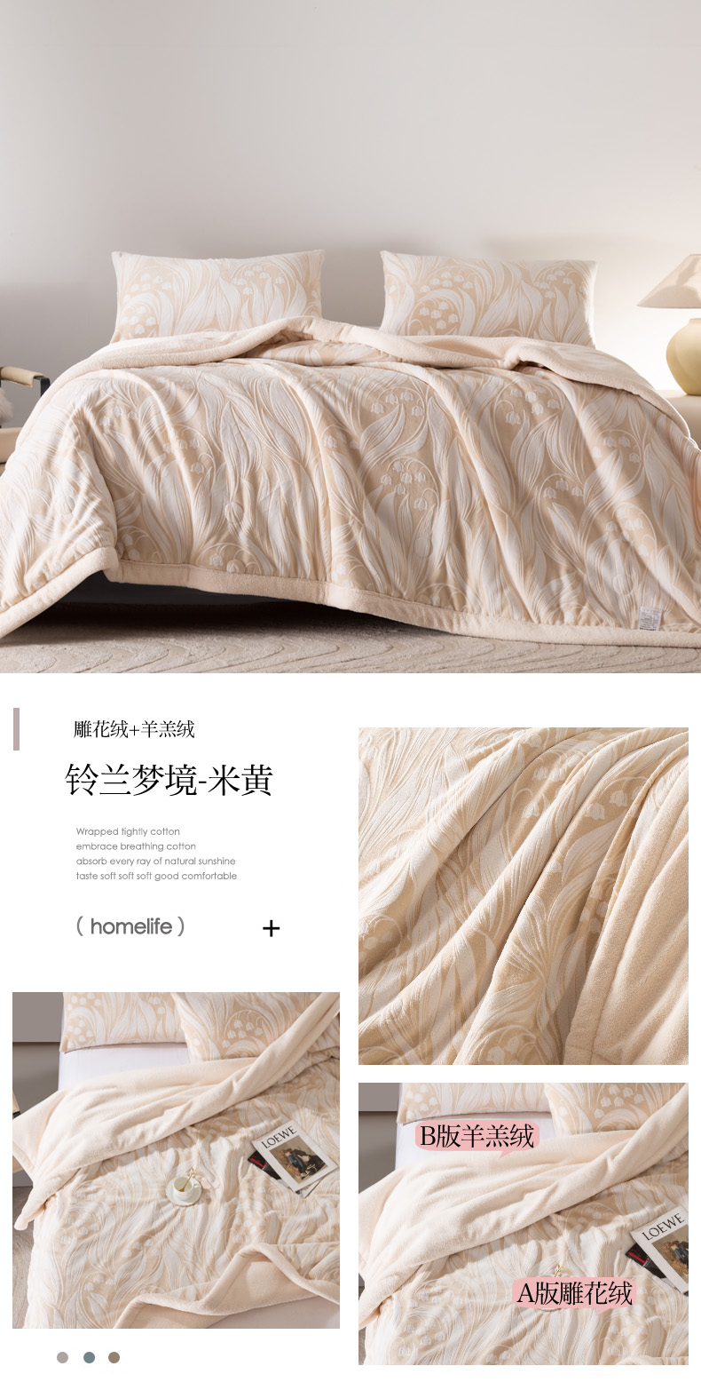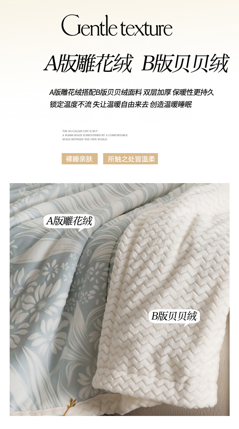 秋冬三层夹棉花卉款雕花绒毛毯