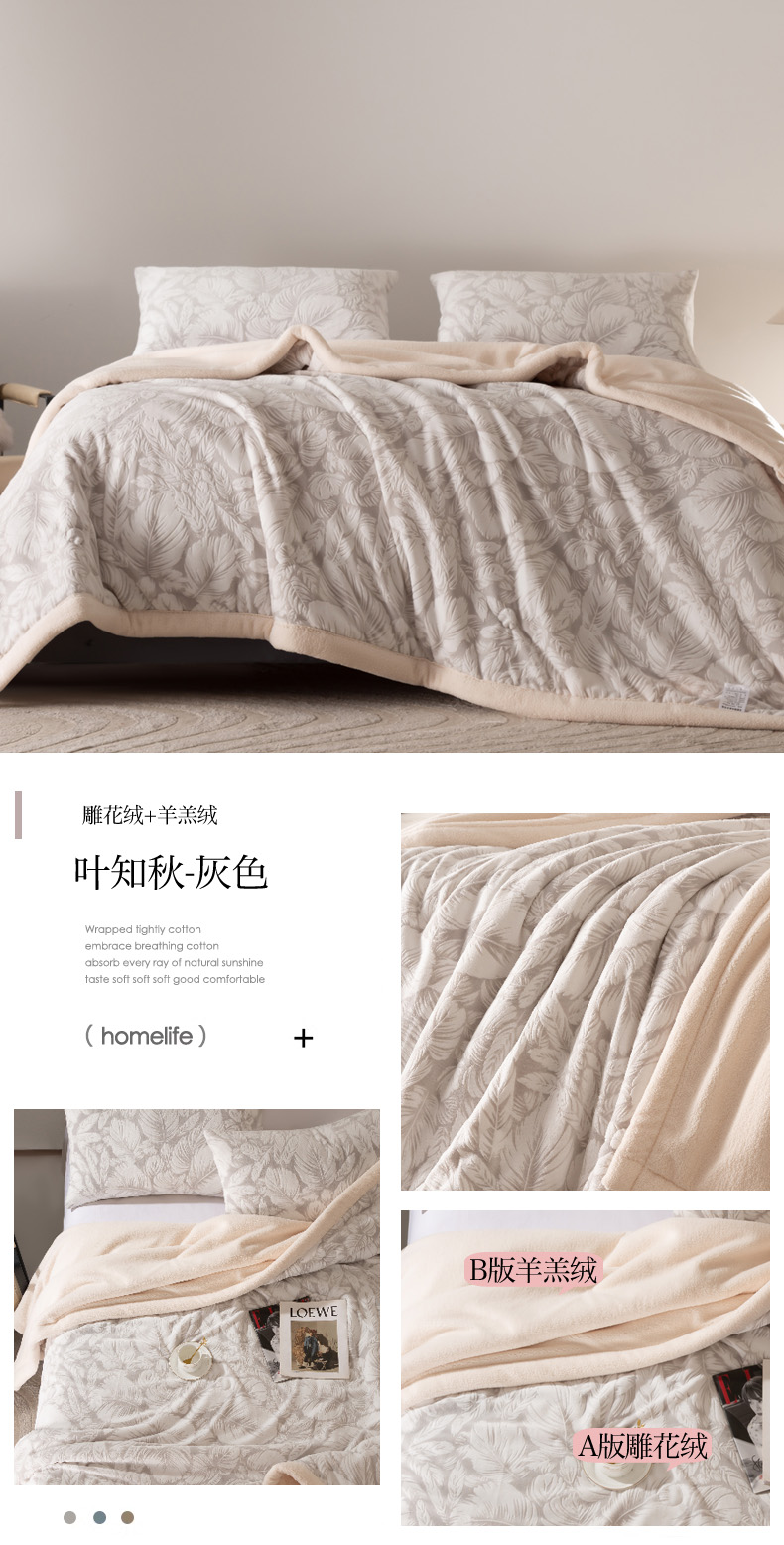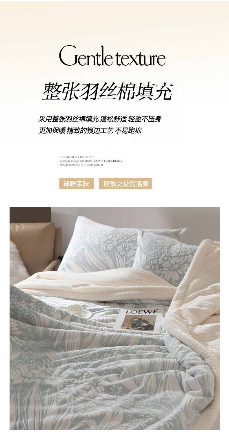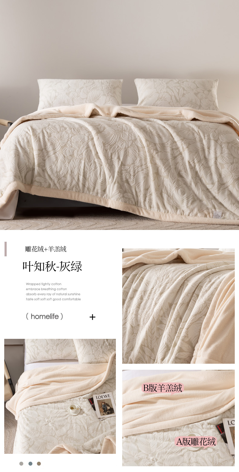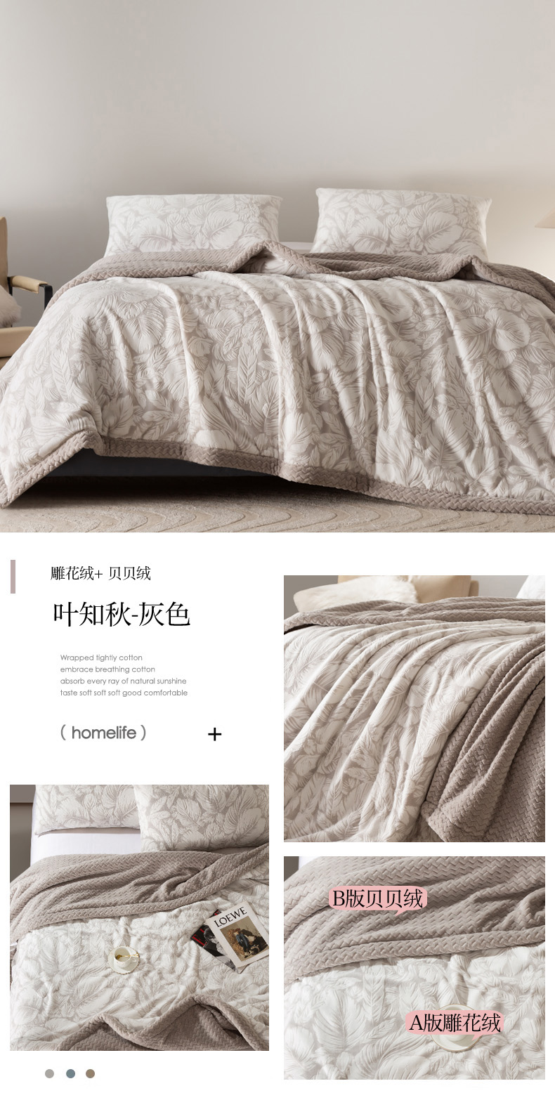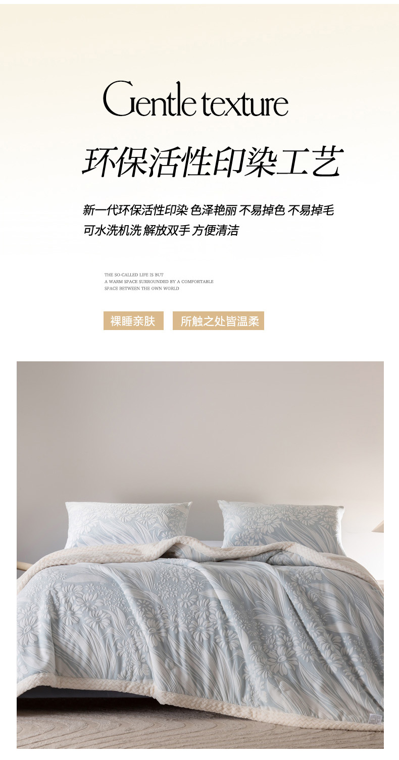 秋冬三层夹棉花卉款雕花绒毛毯
