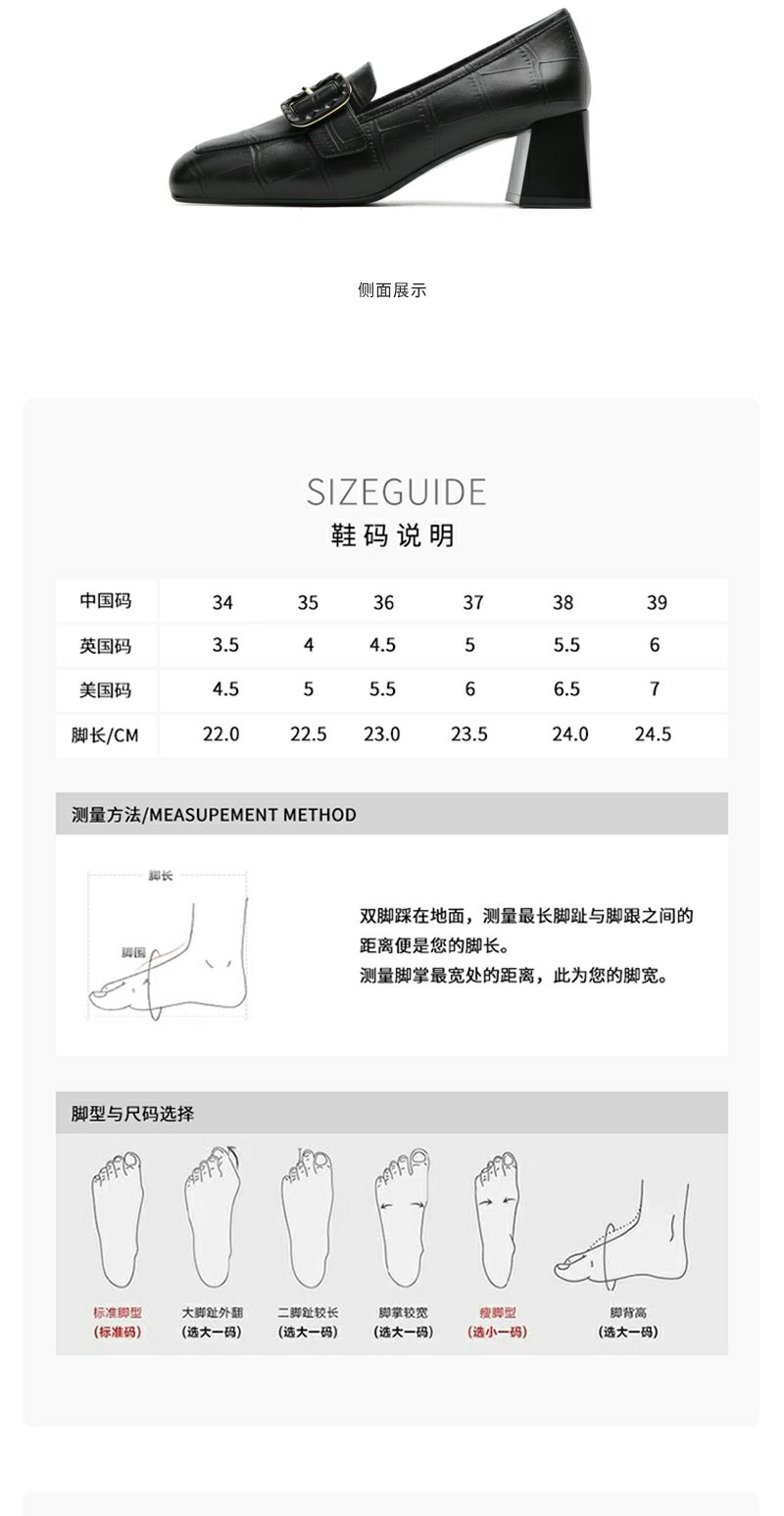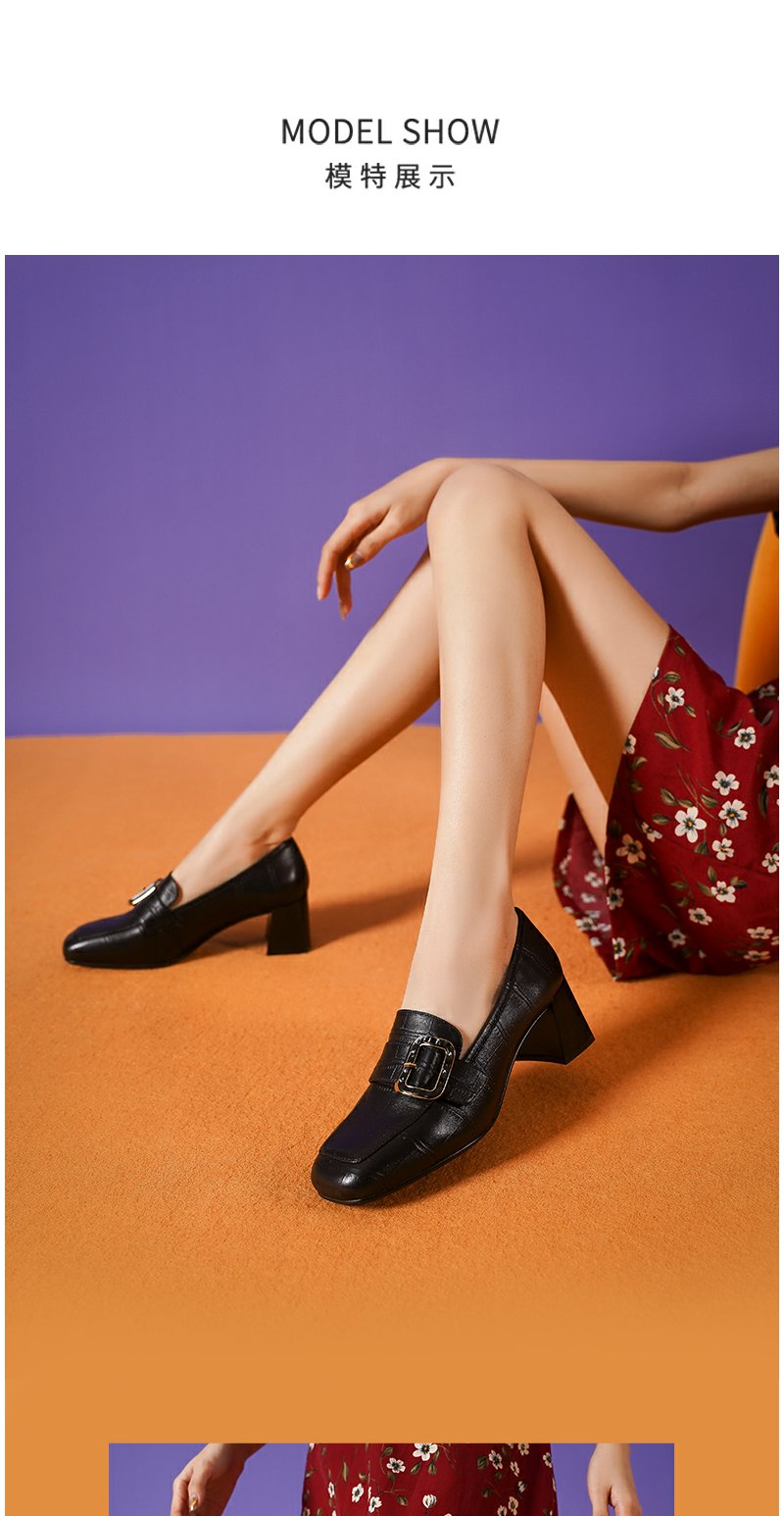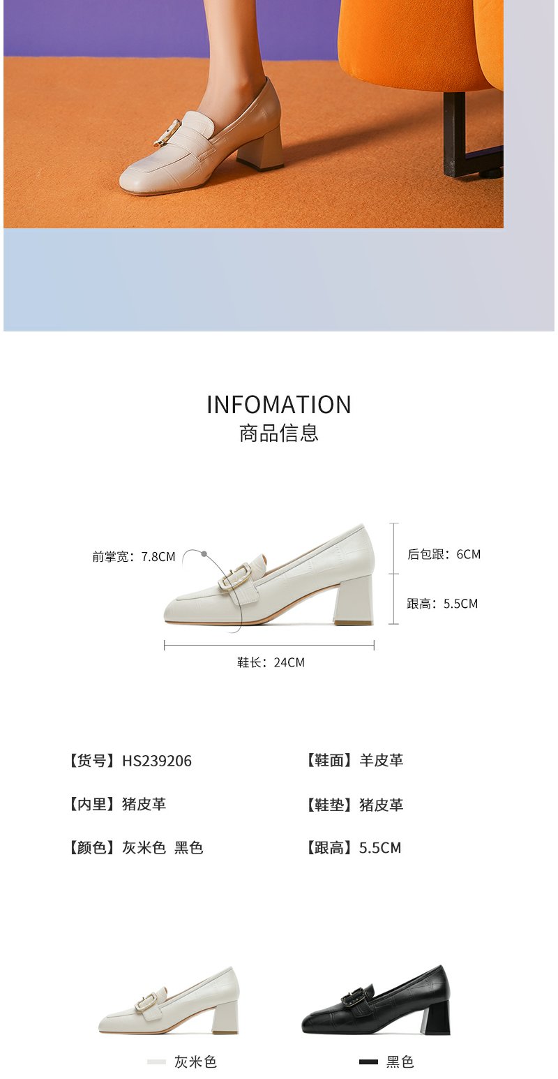 【Harson哈森】B3F I 粗跟方头商务通勤小皮鞋深口单鞋HS239206