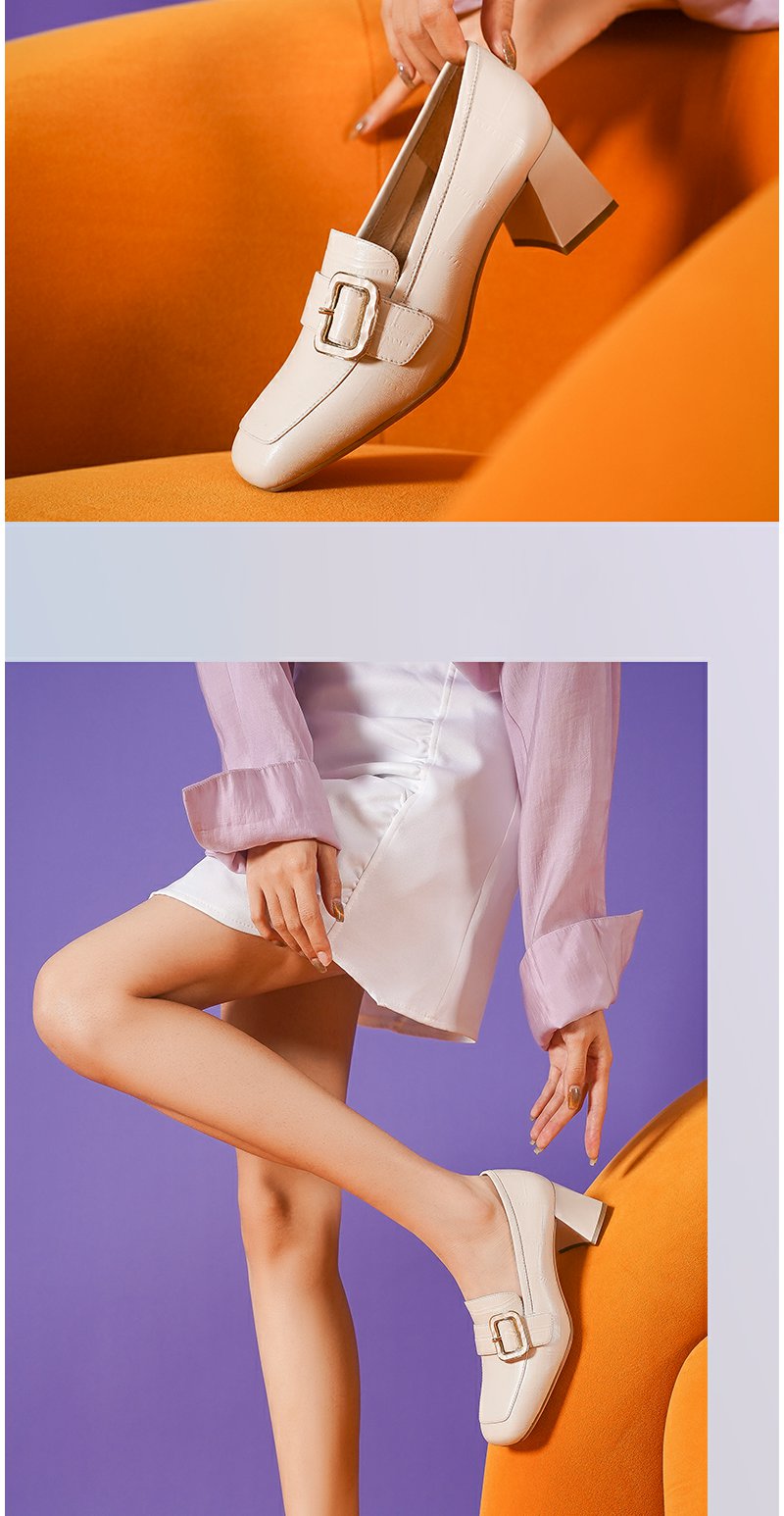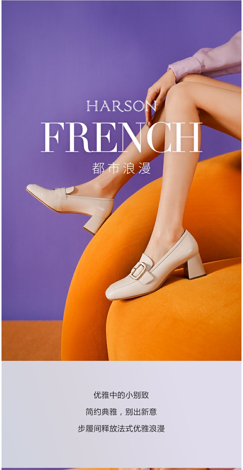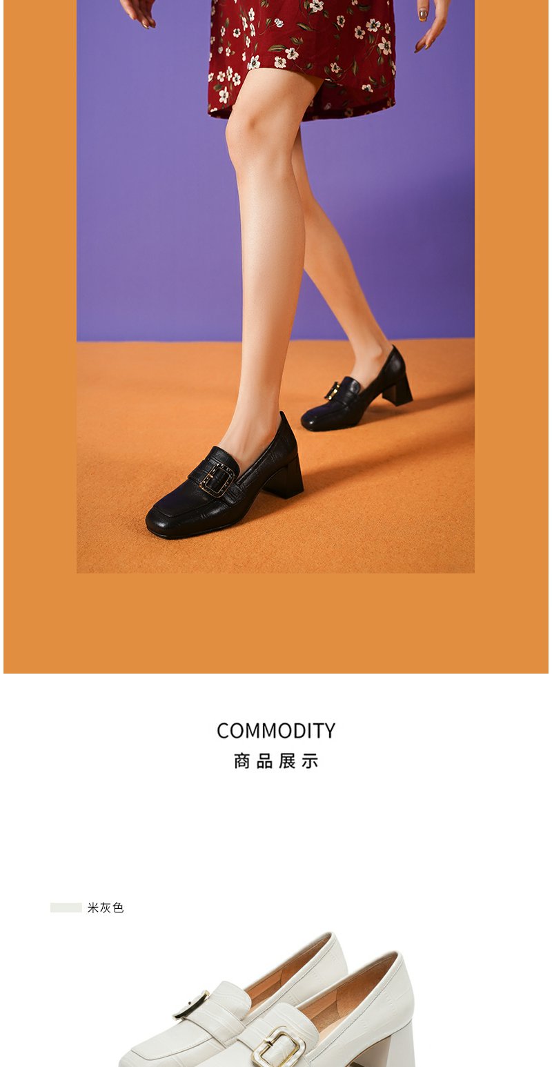 【Harson哈森】B3F I 粗跟方头商务通勤小皮鞋深口单鞋HS239206
