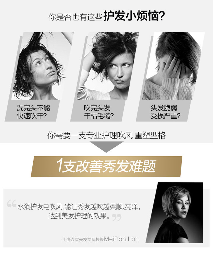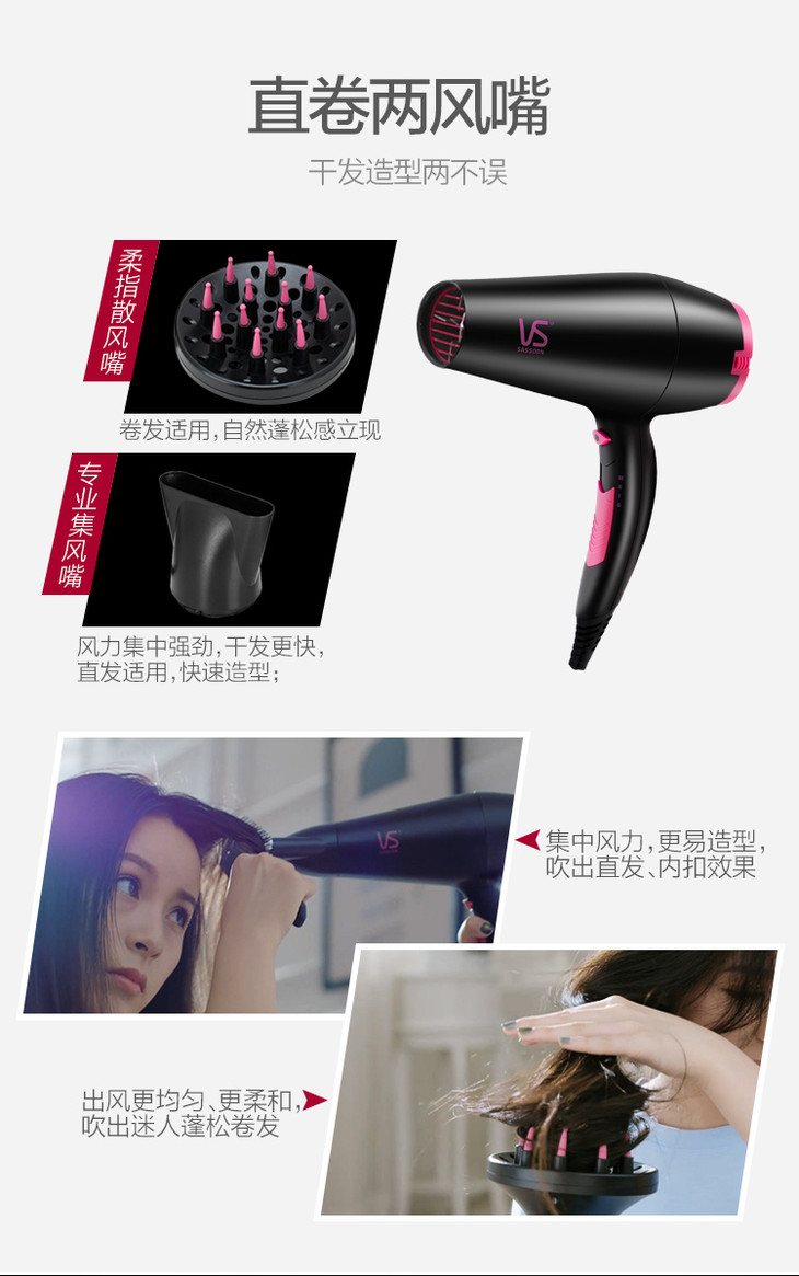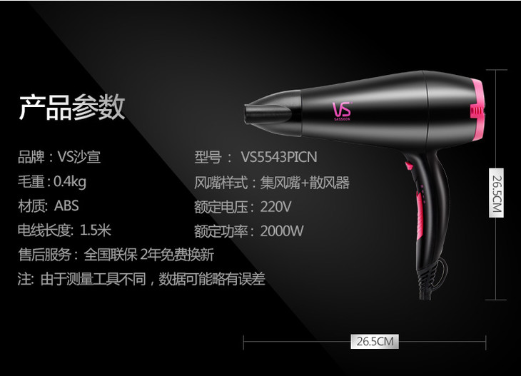 沙宣(VS)电吹风机家用 水润护发大功率吹风筒VS5543PICN (2000W)