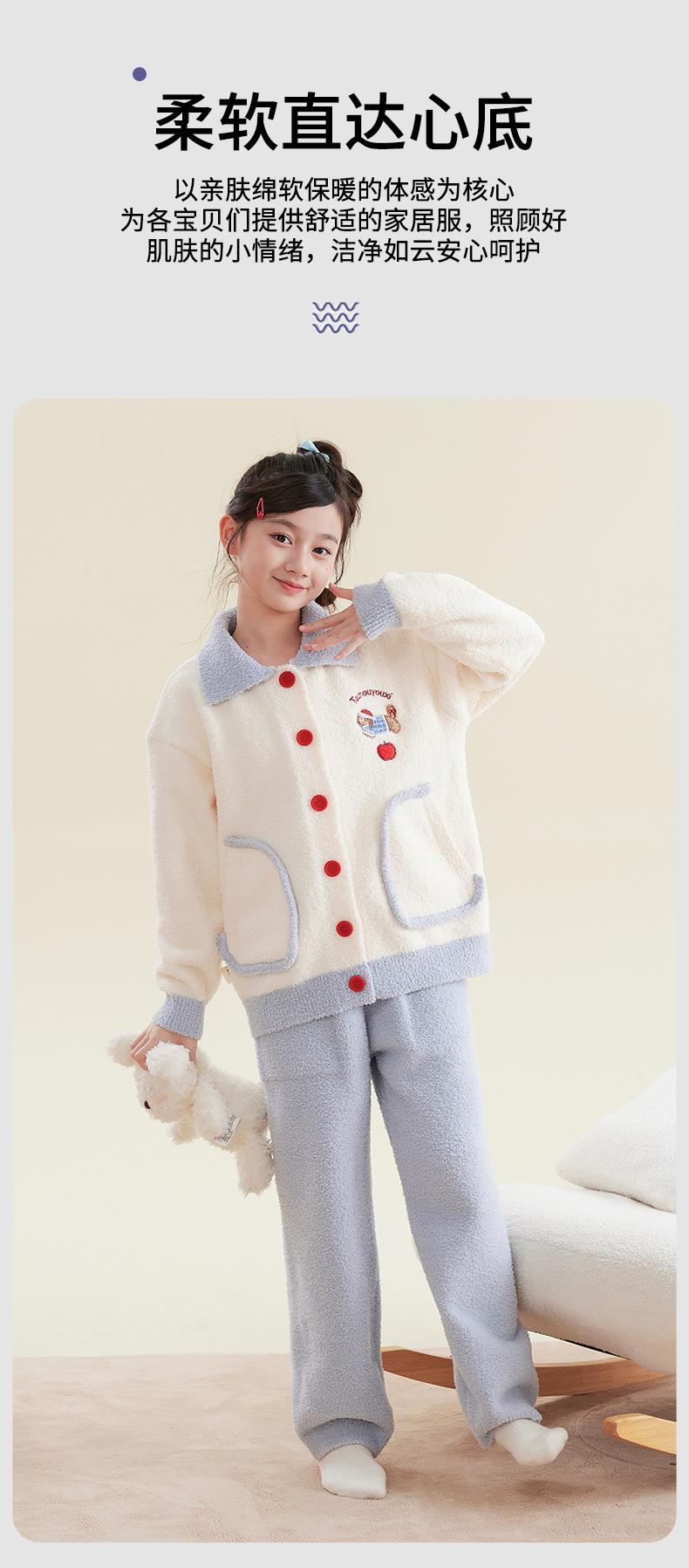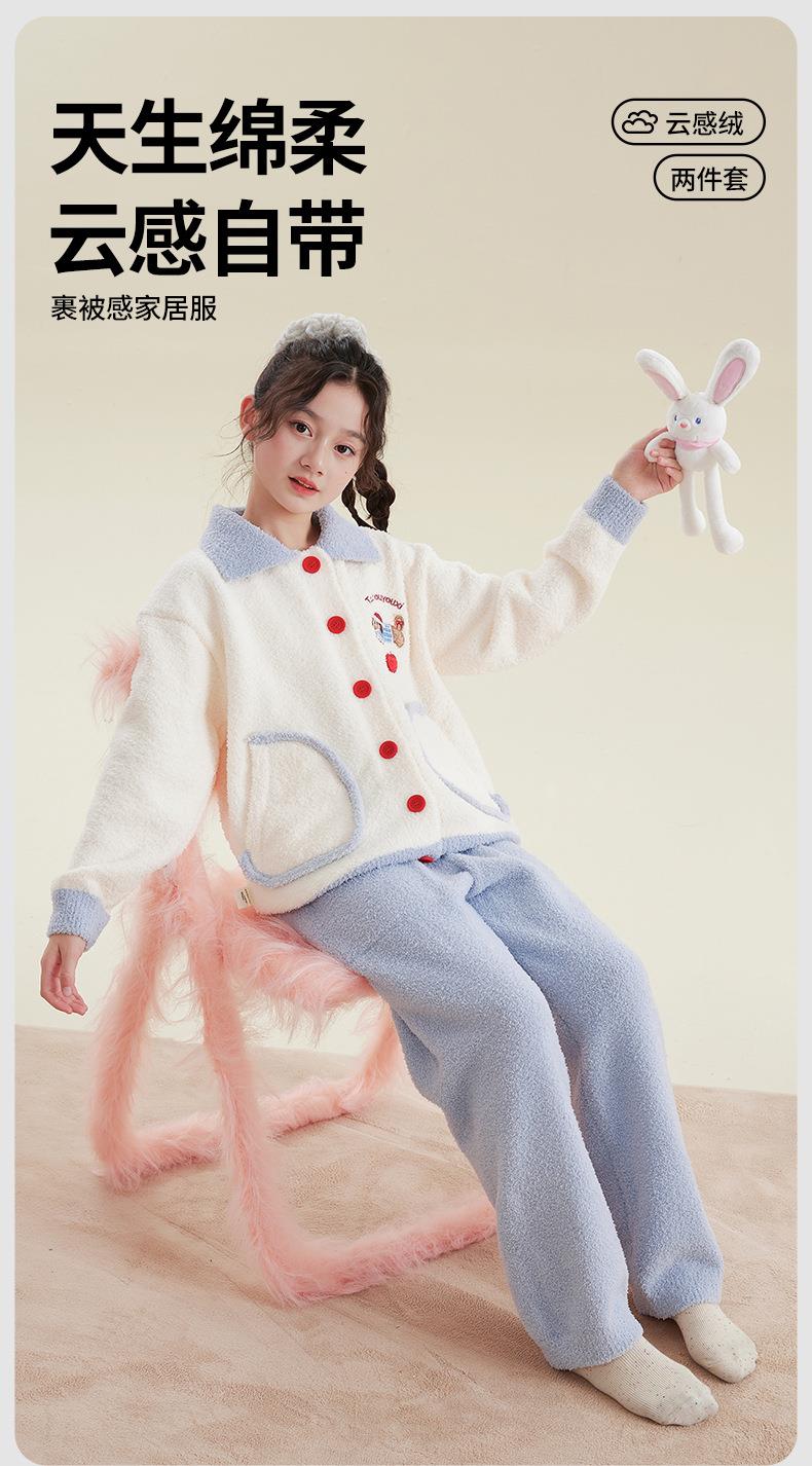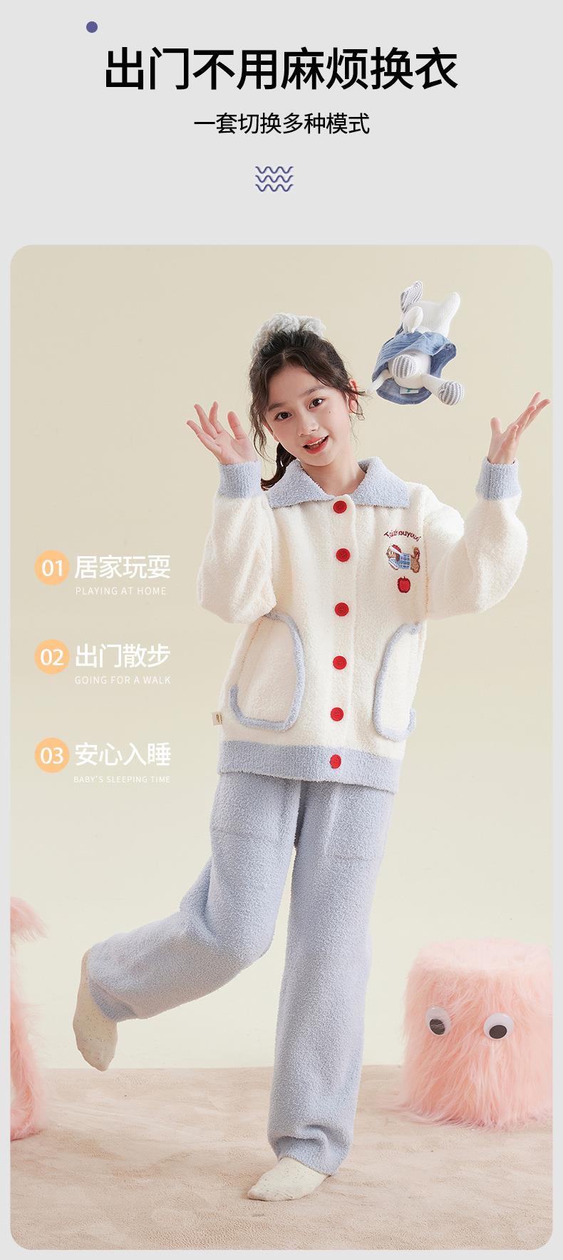 儿童睡衣冬加厚女童2025新款中大童女孩秋冬保暖珊瑚绒家居服套装