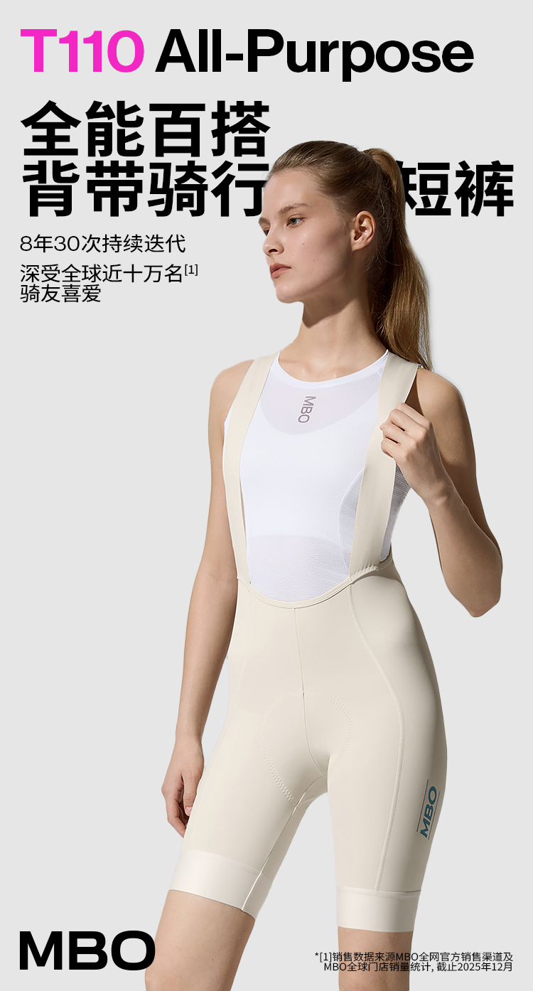 MBO 女子春夏防晒UPF50+速干背带骑行短裤 T110 双箭头减震 26年新款 (经销商专拍链接,非经销商拍单不发货)