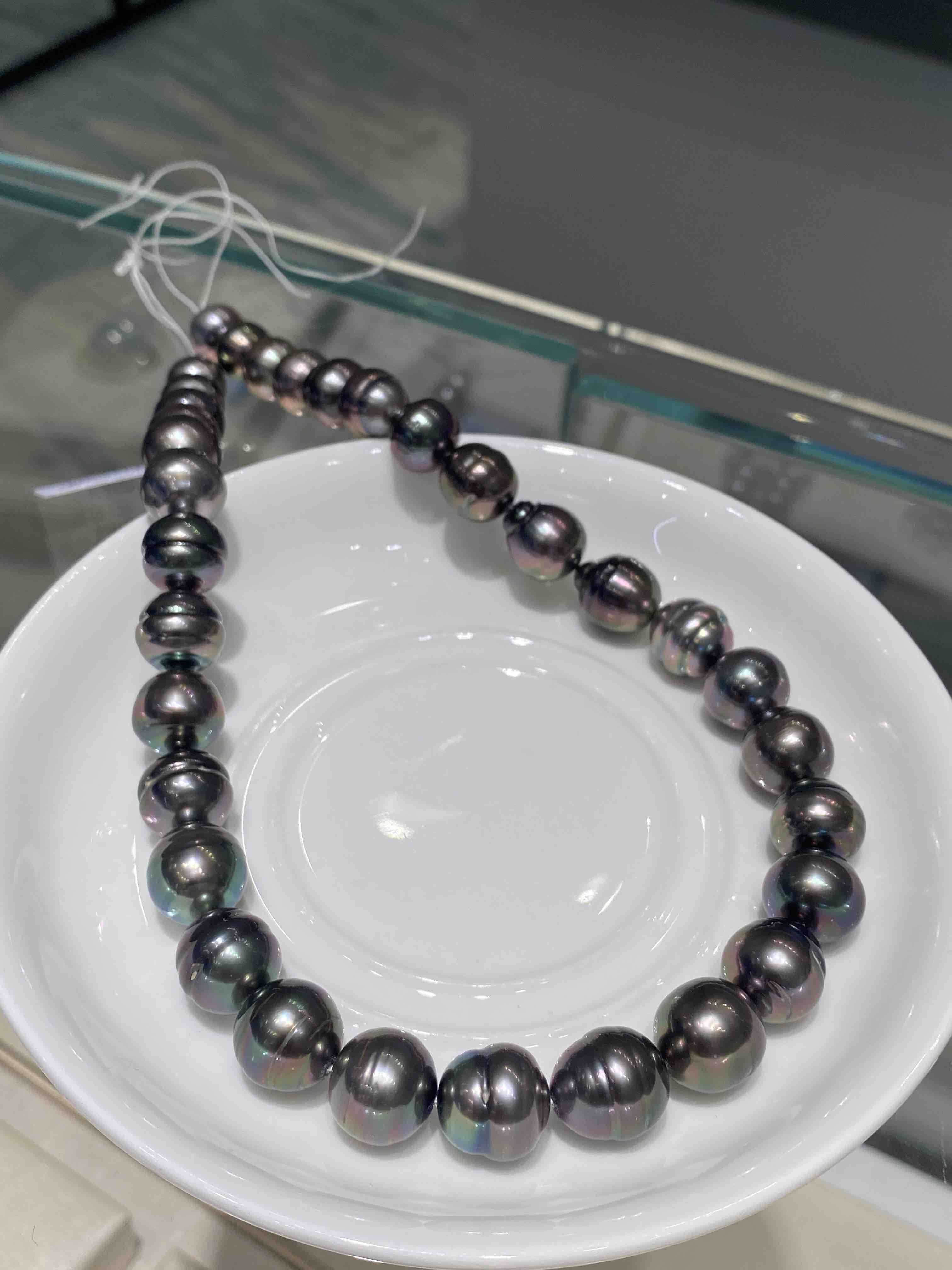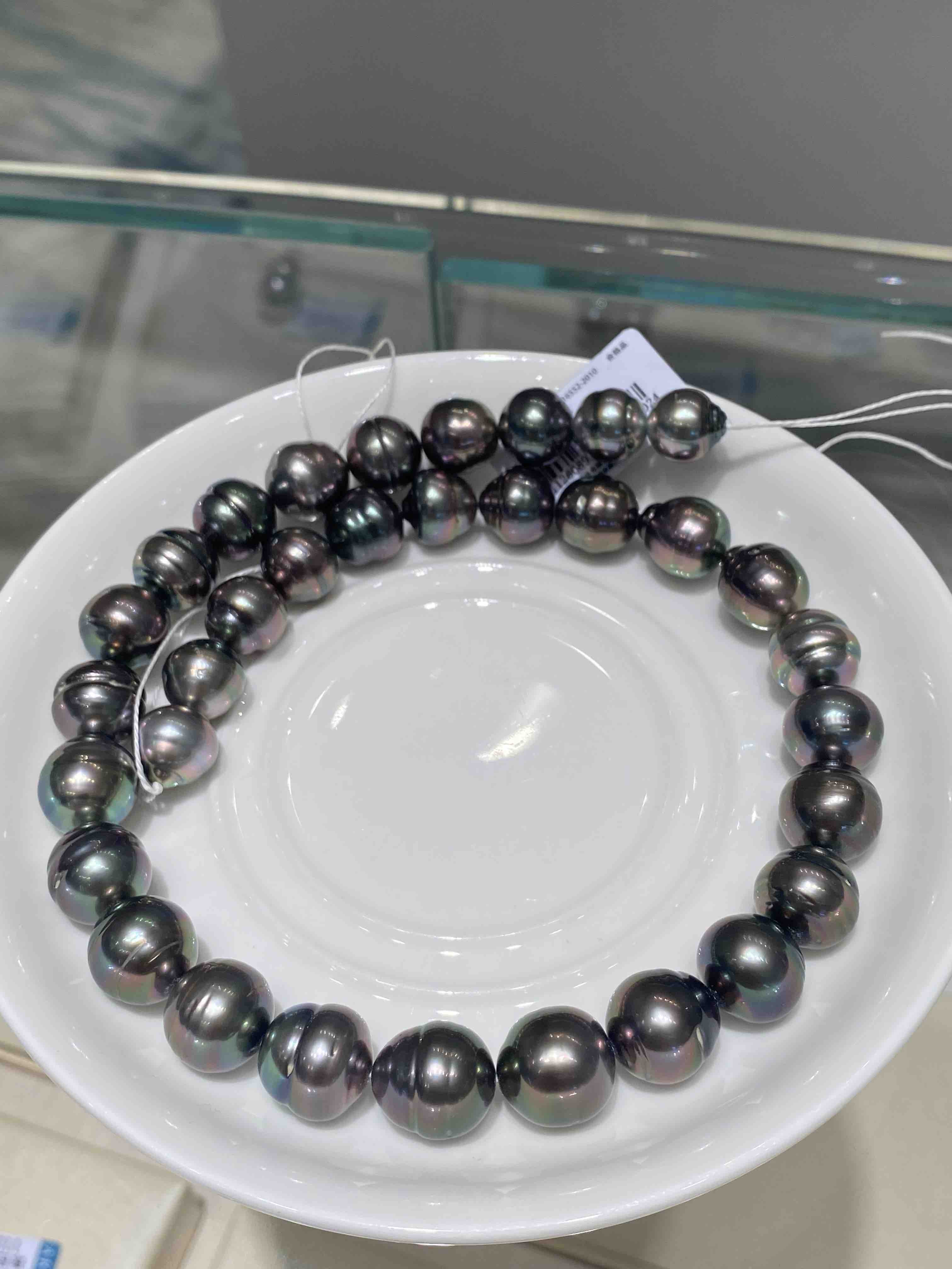 超美螺纹黑珍珠项链,一整条孔雀绿