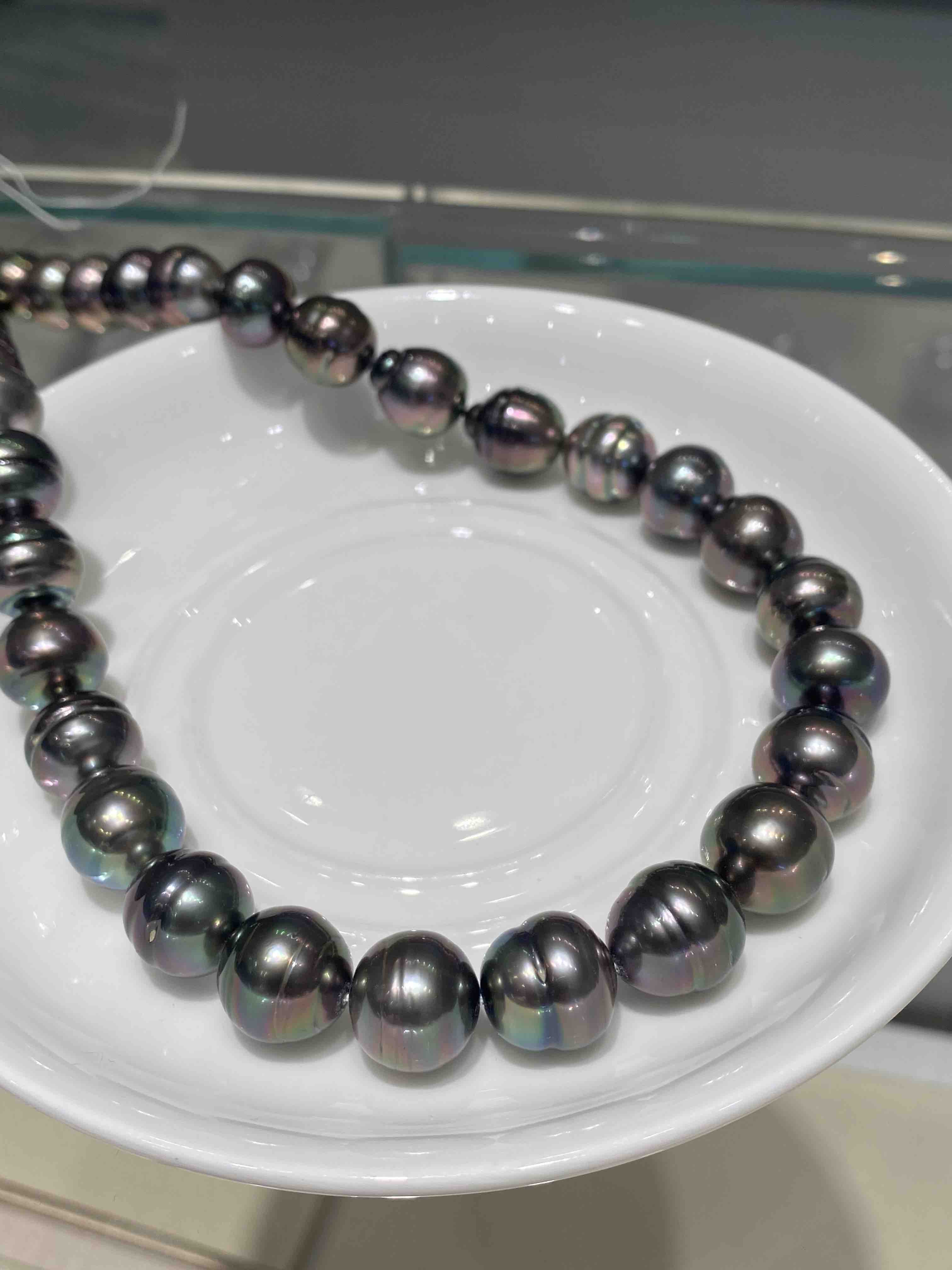 【私席真珠·新年盛宴】大溪地螺纹黑珍珠项链,极品晕彩,珠光巨亮