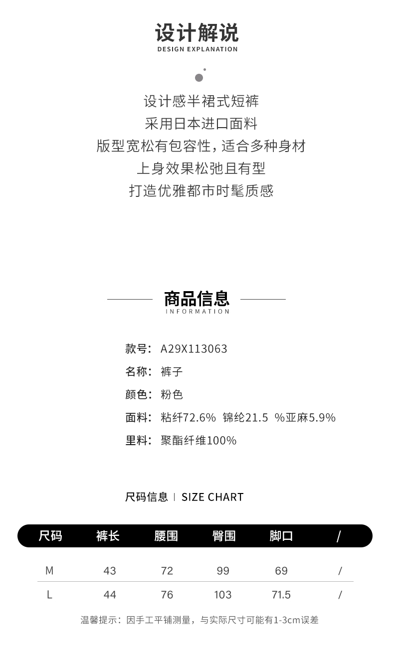 【商场同款】阿菁娜2024夏季新款设计感半裙式短裤A29X113063