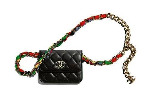 CHANEL 香奈儿 小羊皮配丝带和金属 链条元素彩虹链条包 腰包 腰链 女款 小号 黑色/多彩