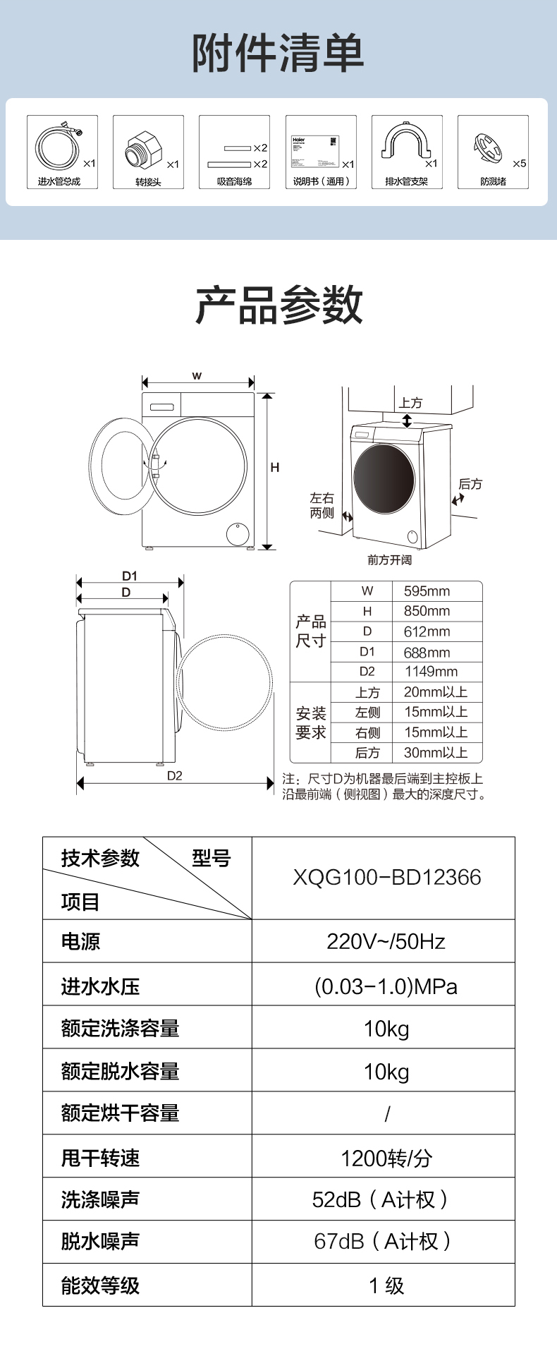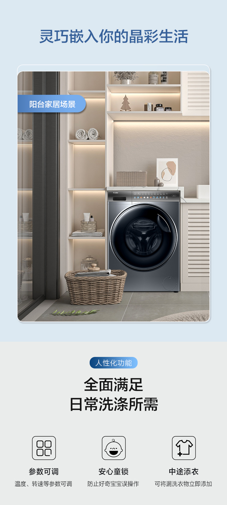 海尔(Haier)10公斤 直驱变频 AI智慧洗 智能投放 防过敏 滚筒洗衣机 懒人神器 消费补贴 BD12366