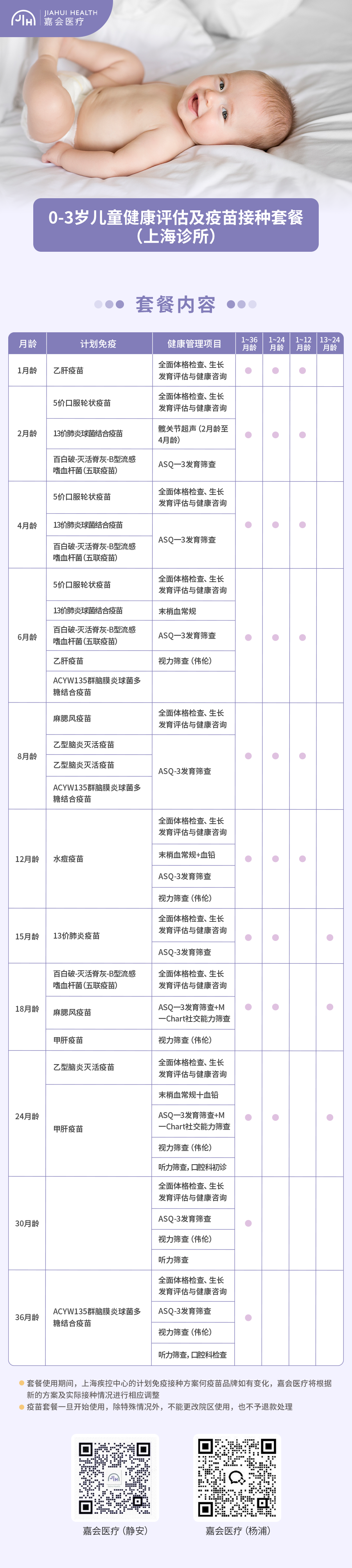 疫苗接种月龄仅供参考,需综合国家免疫计划调整、上海市疾控中心疫苗供应情况、宝宝健康情况、接种情况、季节及疾病流行情况,调整接种时间,为此带来的不便,敬请谅解;