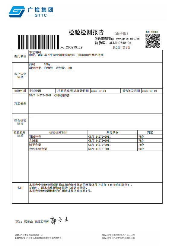 大身填充物:90%白鸭绒 10%羽毛(旧国标)