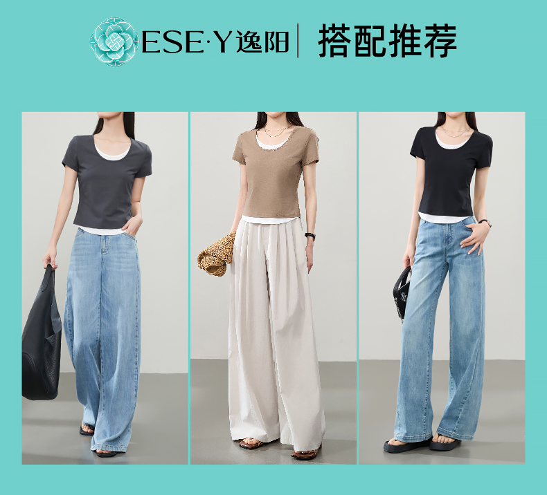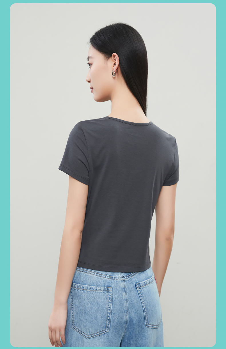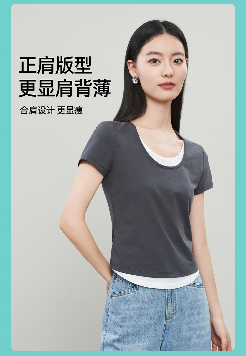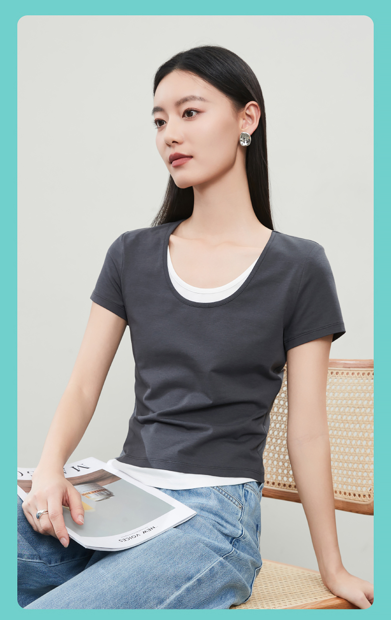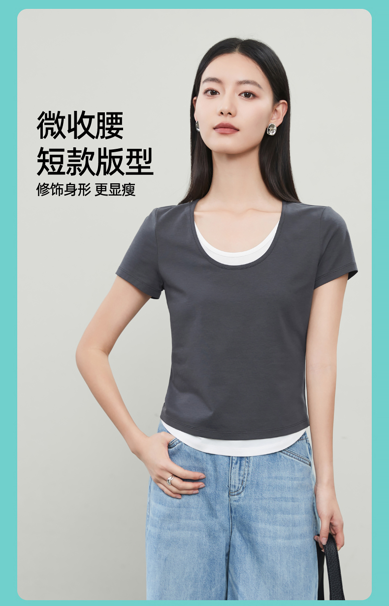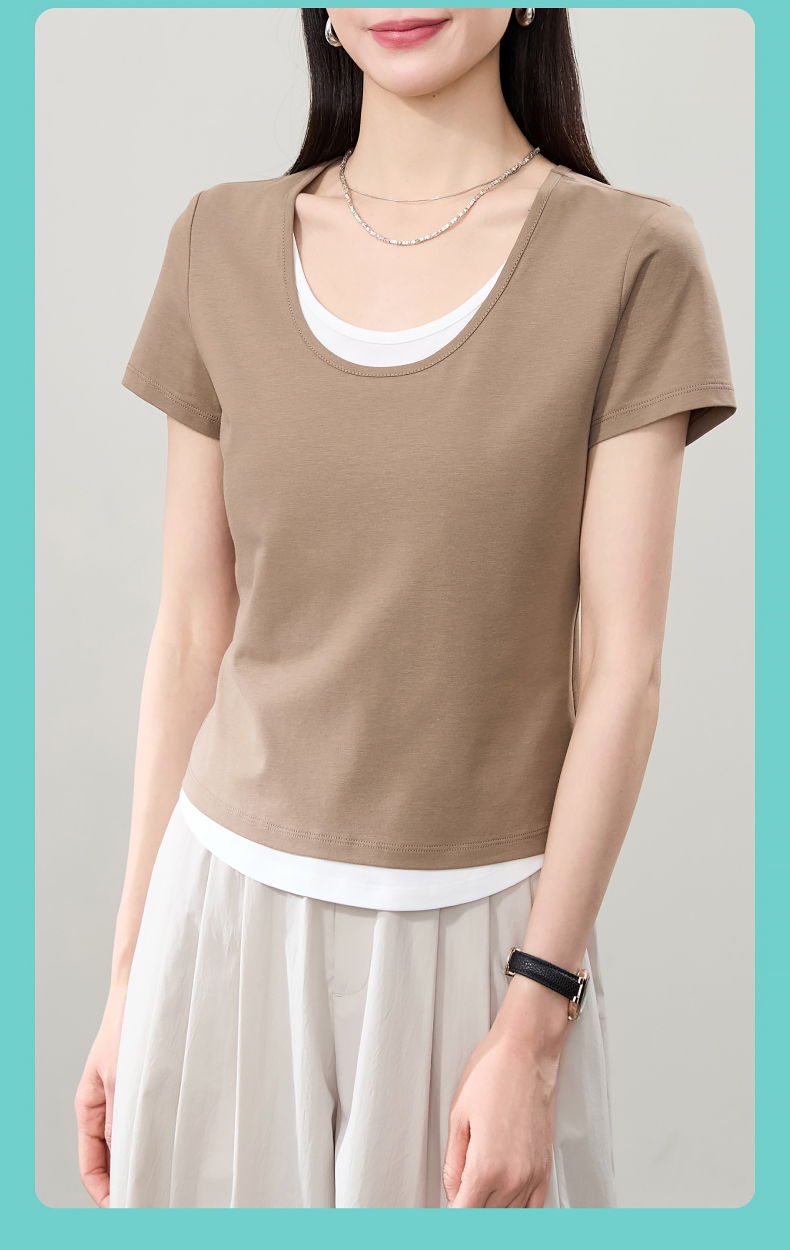 【莱赛尔假两件短T】逸阳夏薄圆领修身内搭短袖上衣5159