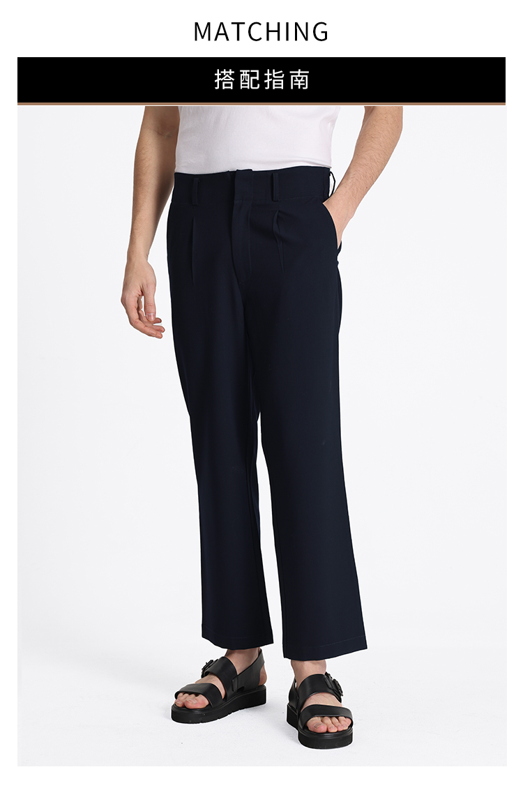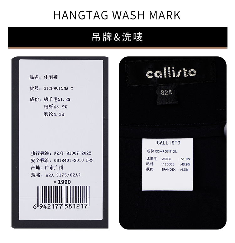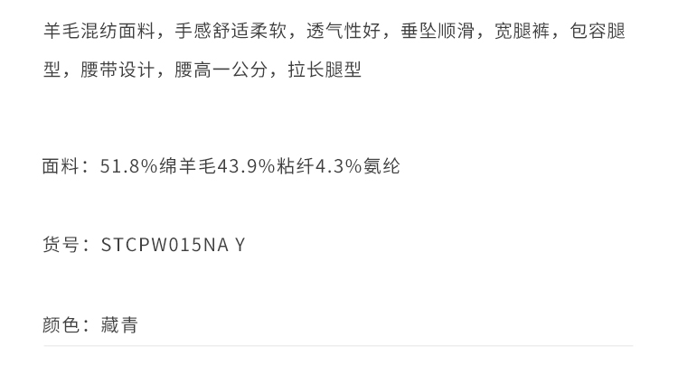 callisto藏青绵羊毛混纺休闲裤 STCPW015Y