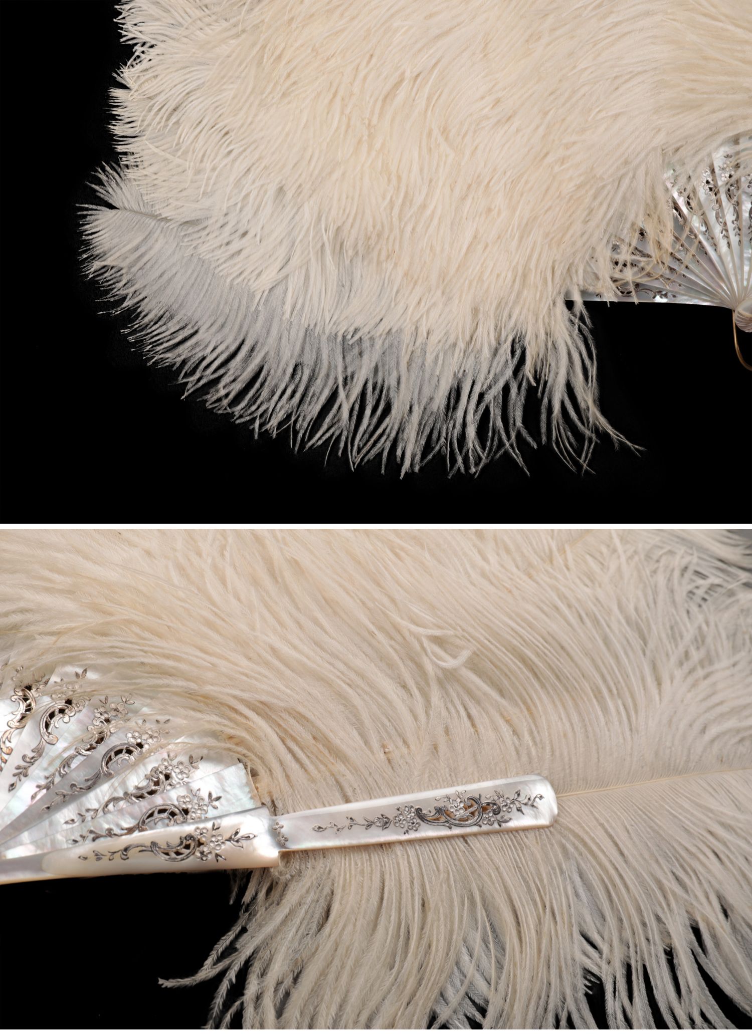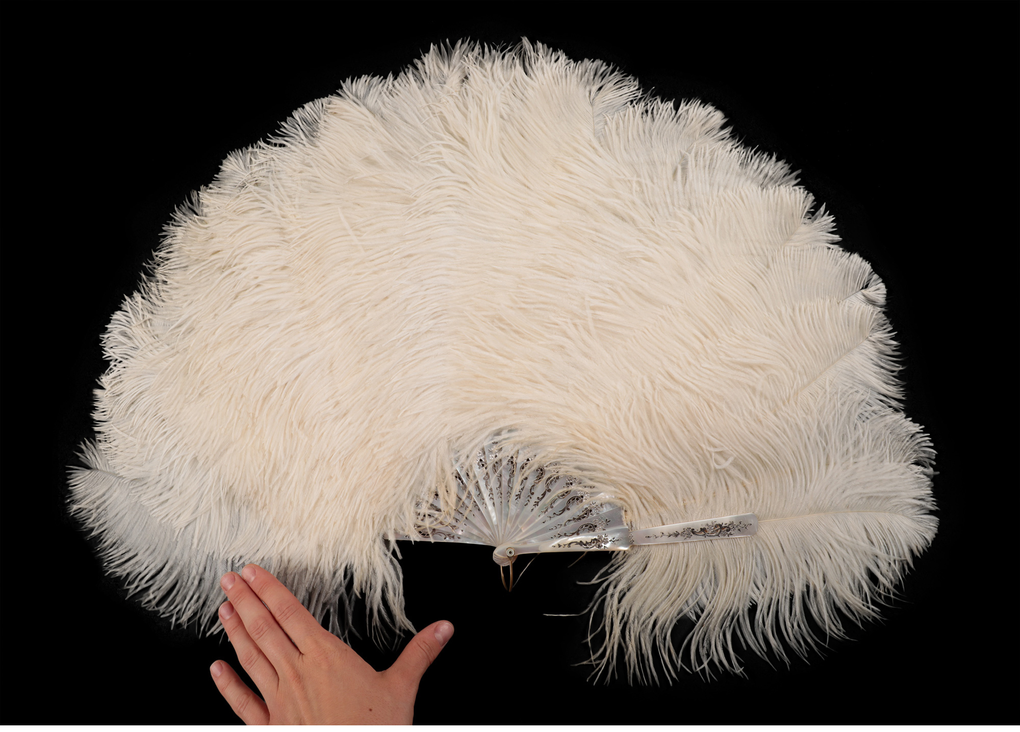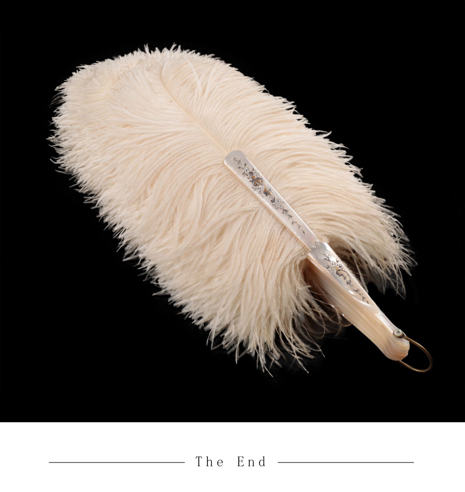 独角鹿西洋古董法国奶白色鸵鸟羽毛扇面描金装饰牛角扇骨古董折扇