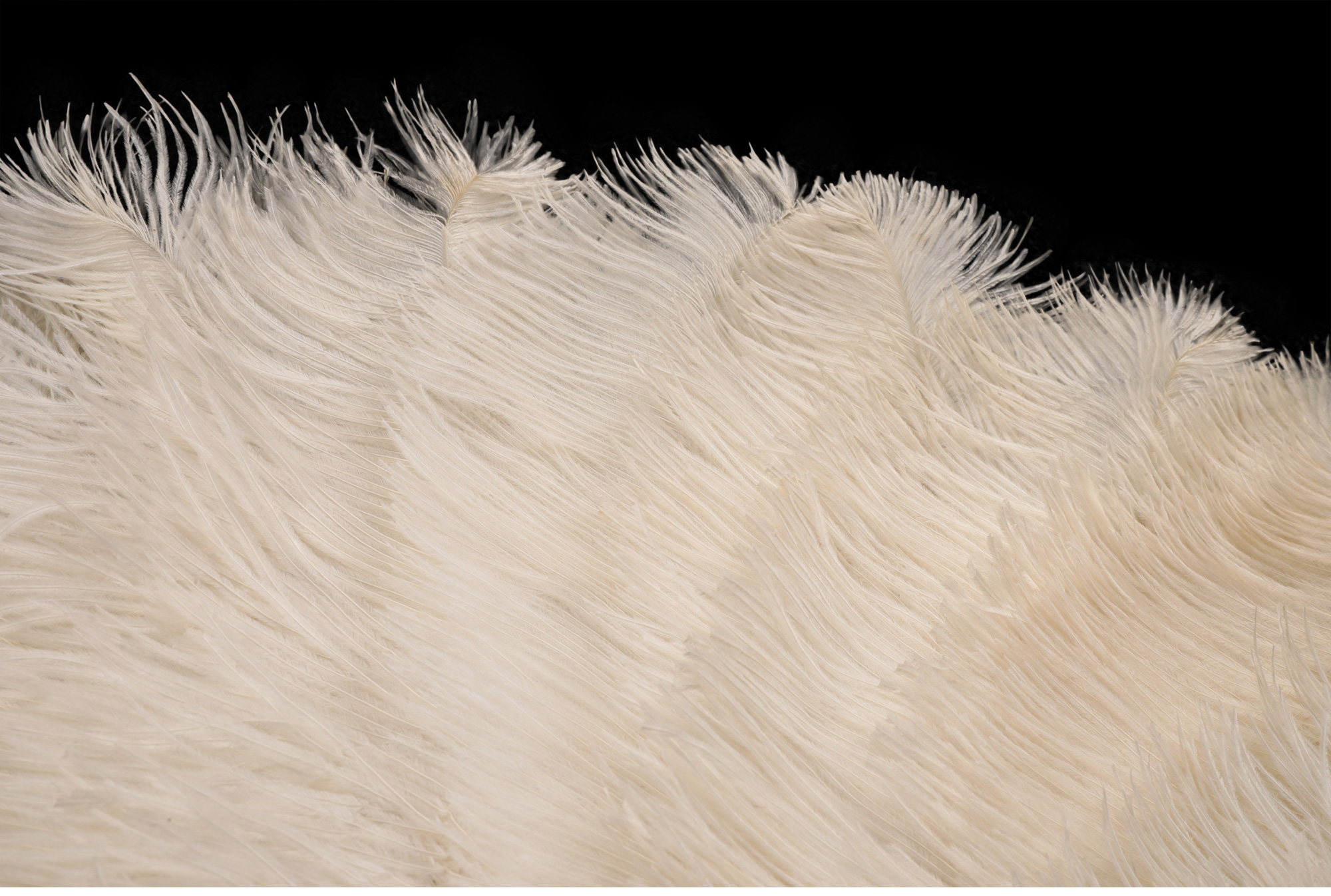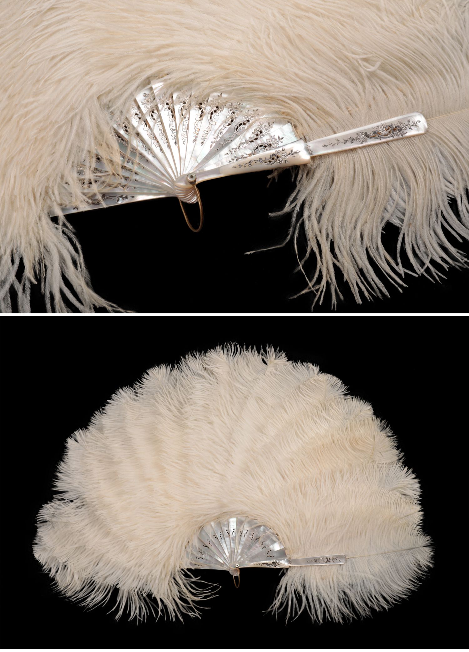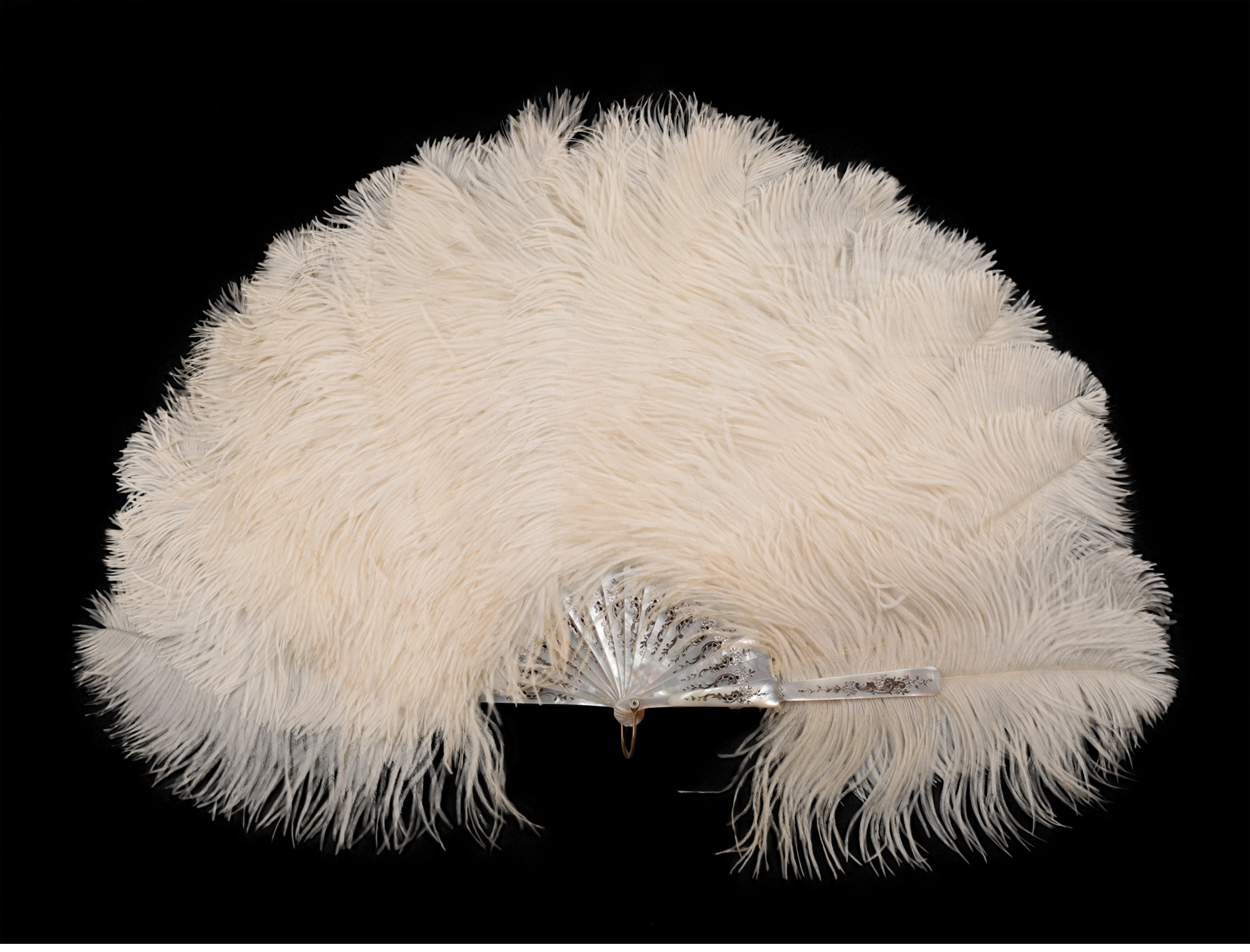 独角鹿西洋古董法国奶白色鸵鸟羽毛扇面描金装饰牛角扇骨古董折扇