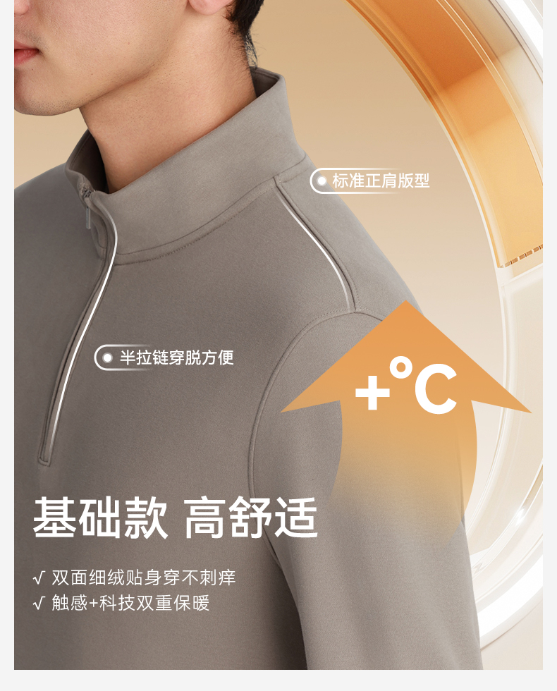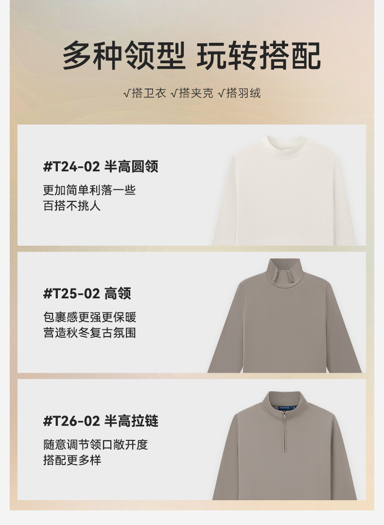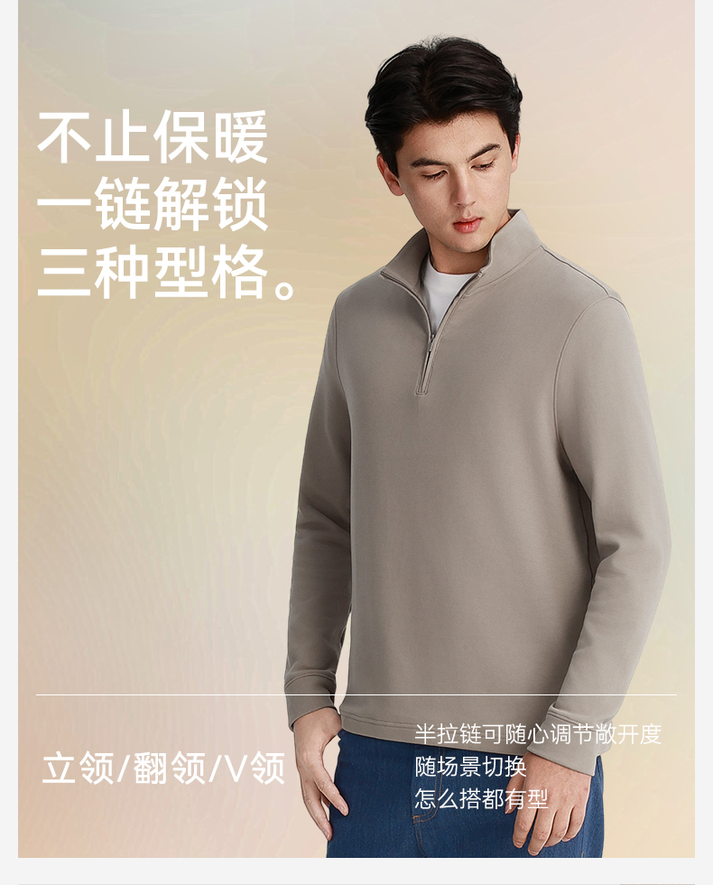 秋冬针织半拉链远红外保暖长袖T恤-T26-02