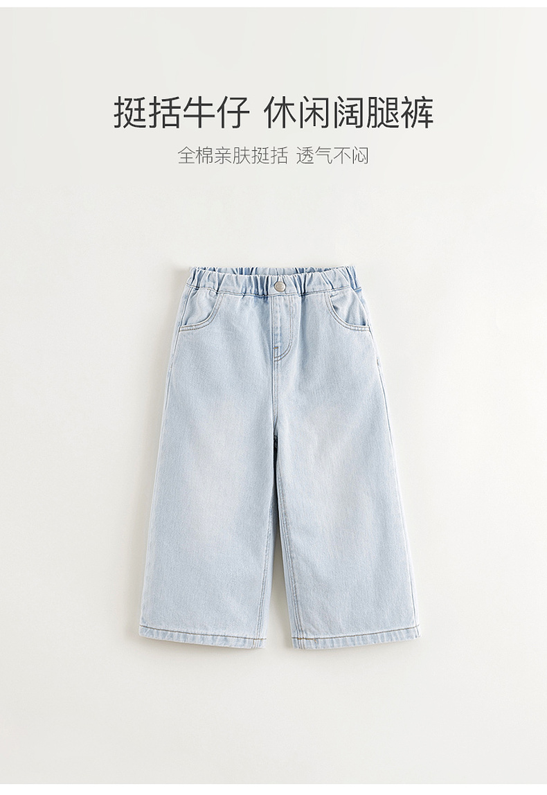 马克珍妮女童时尚百搭纯棉阔腿牛仔裤2025年春装新款250276