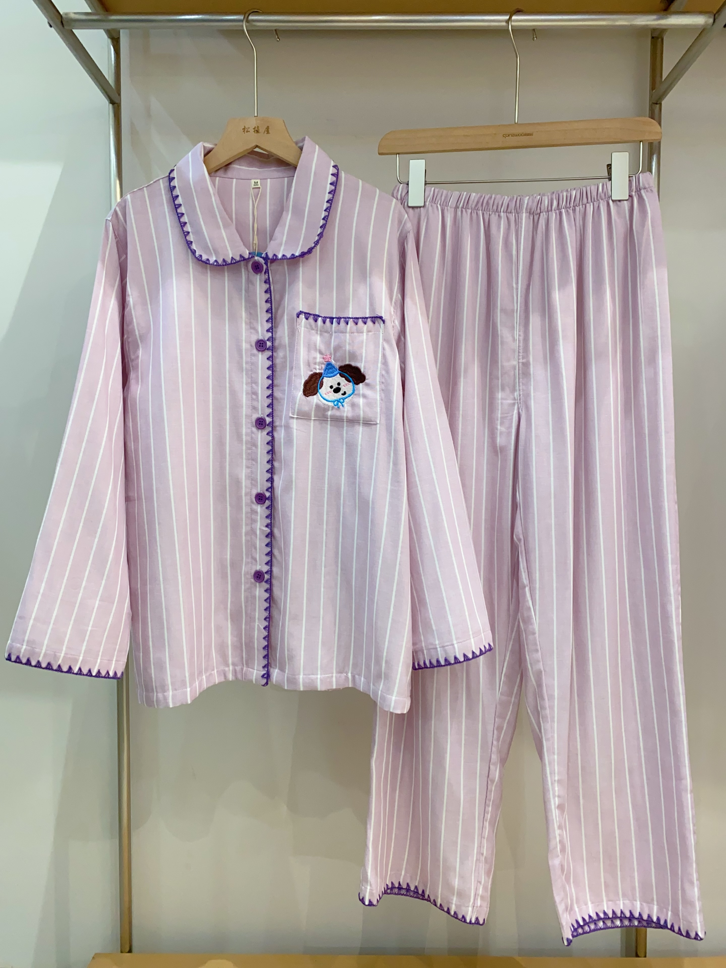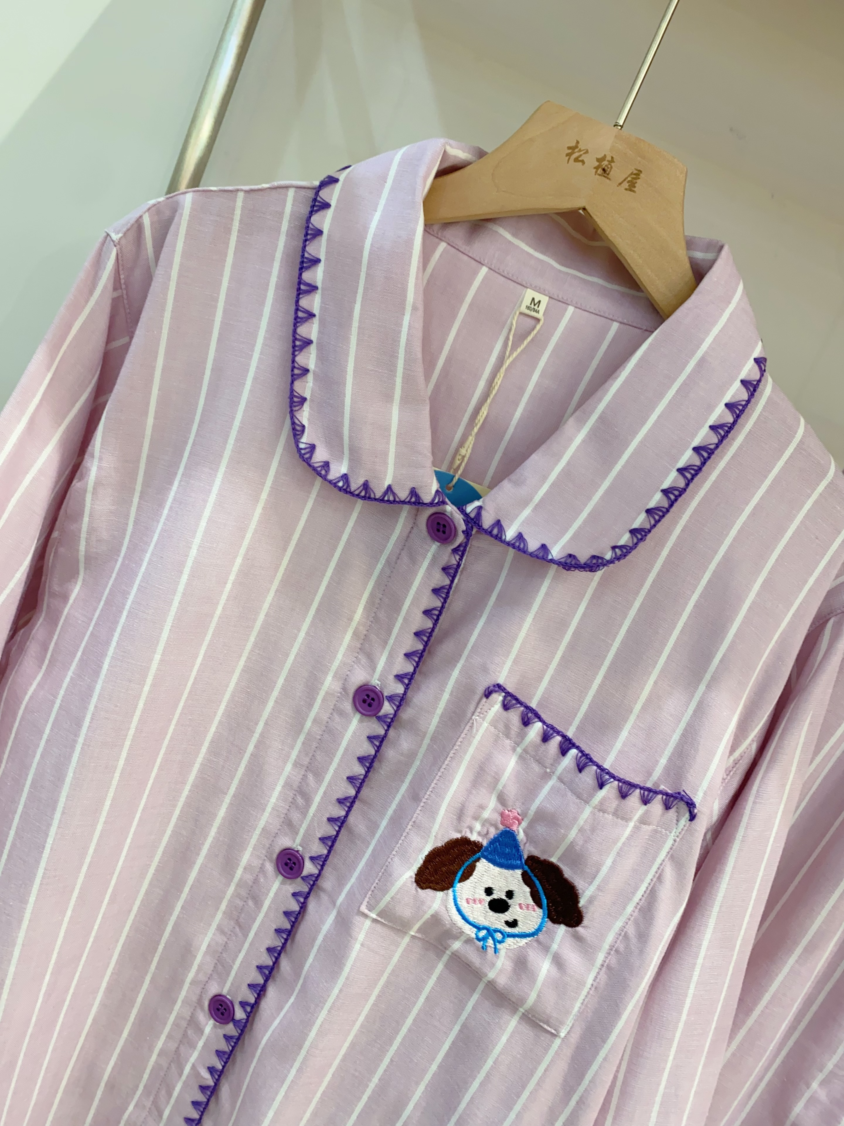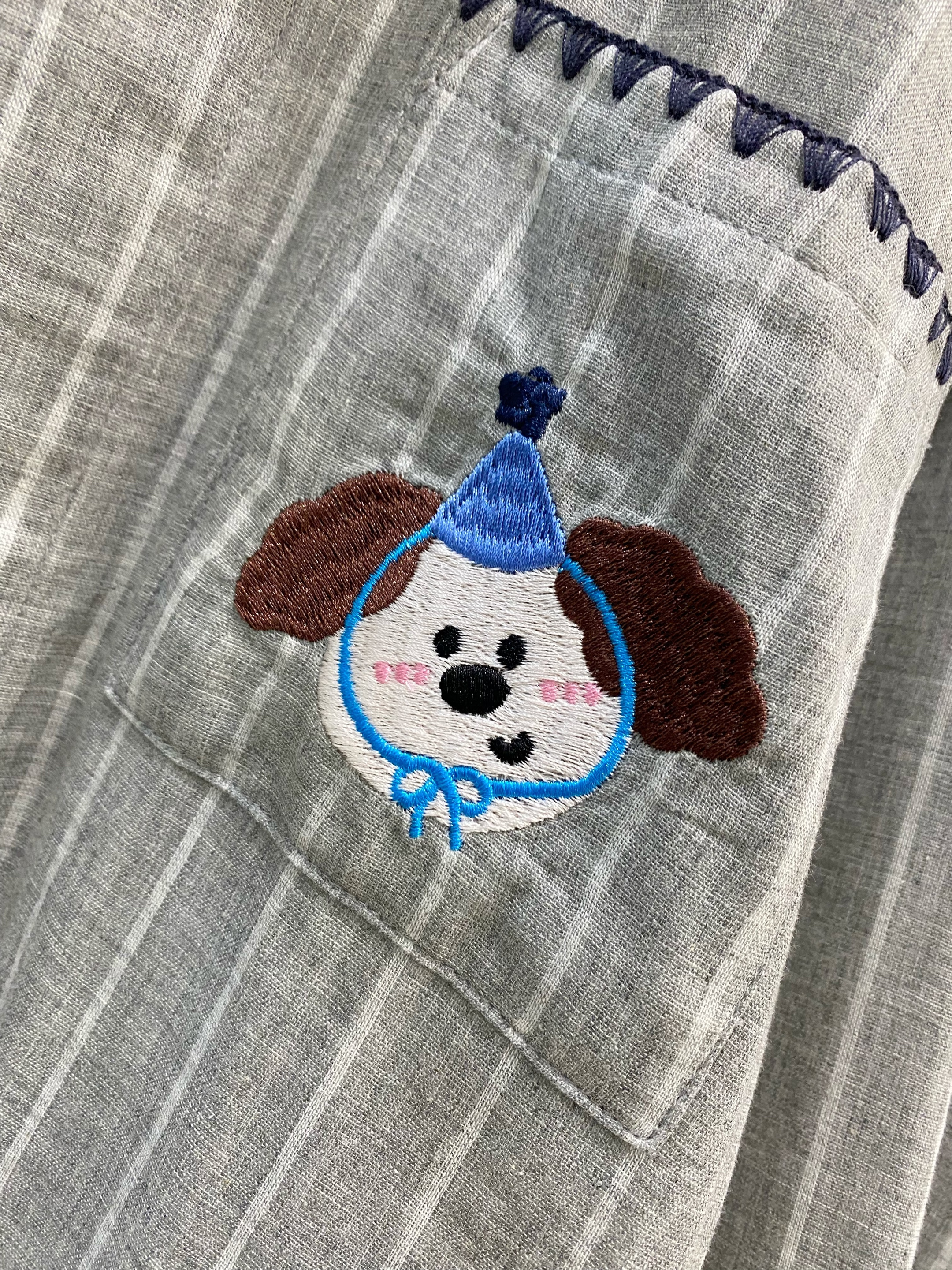 纱布的轻盈配上口袋上的小狗刺绣+撞色锁边,纱布面料柔软透气,四季皆宜~ 🌙✨