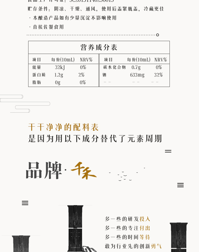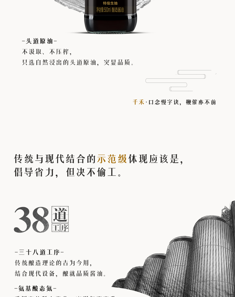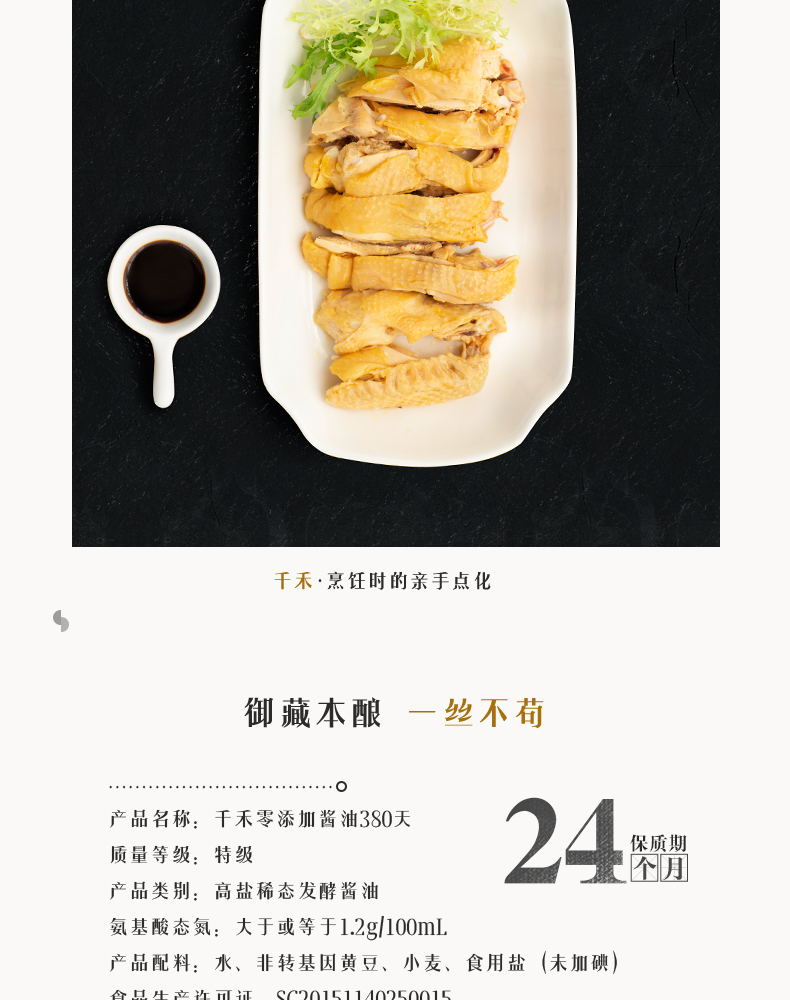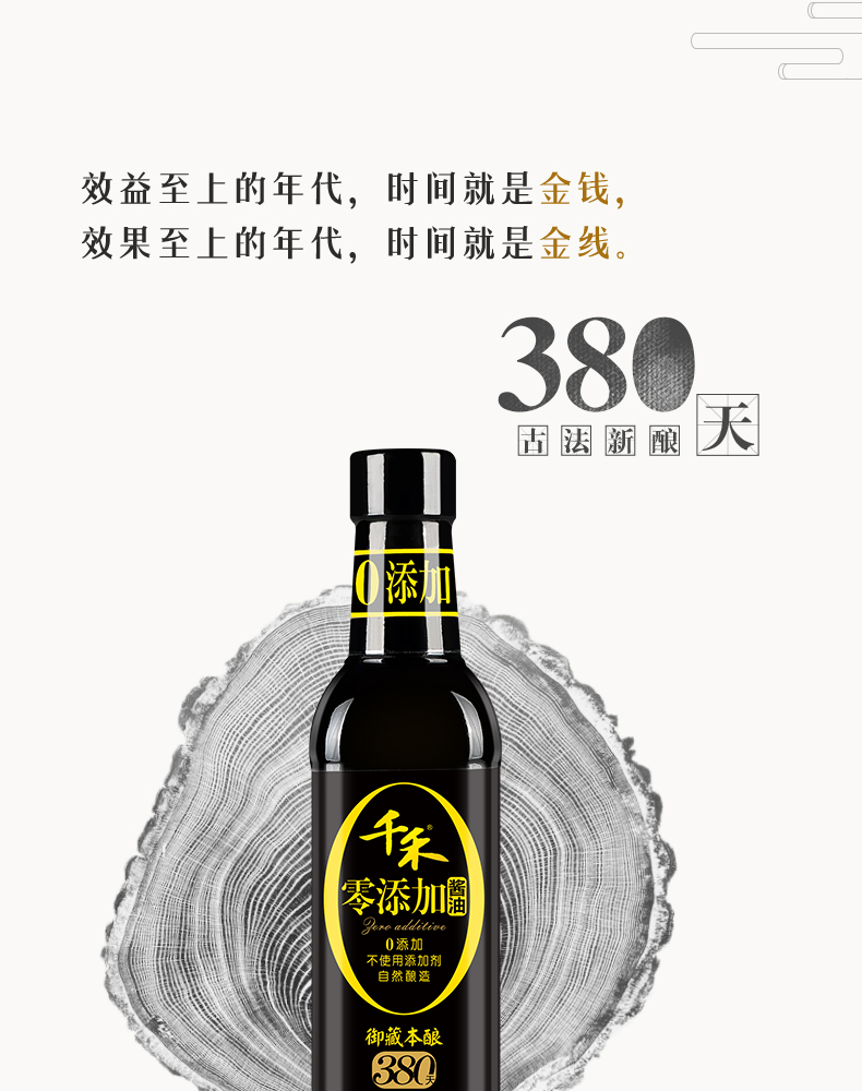 千禾 酱油 御藏本酿380天特级生抽 零添加 酿造酱油500mL 不使用添加剂