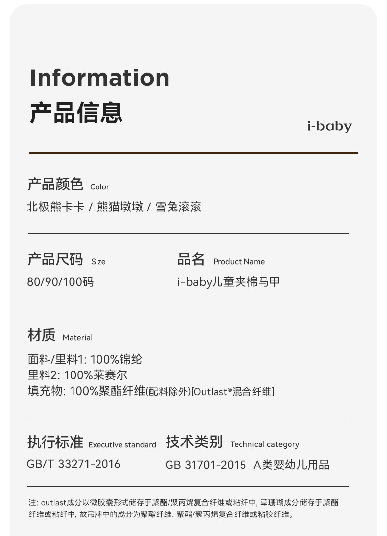 i-baby1-3岁幼儿恒温夹棉马甲