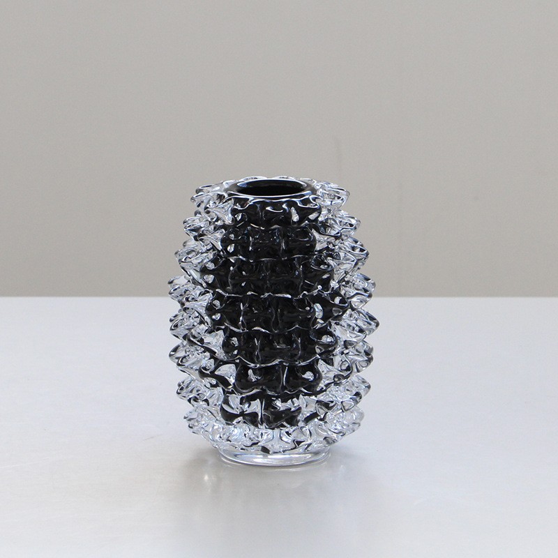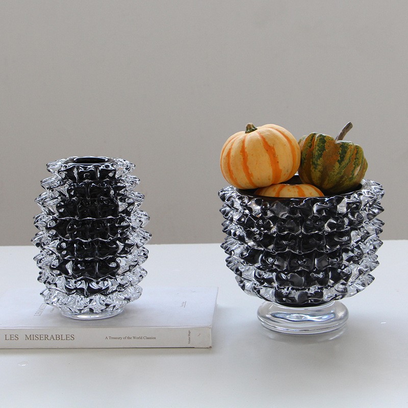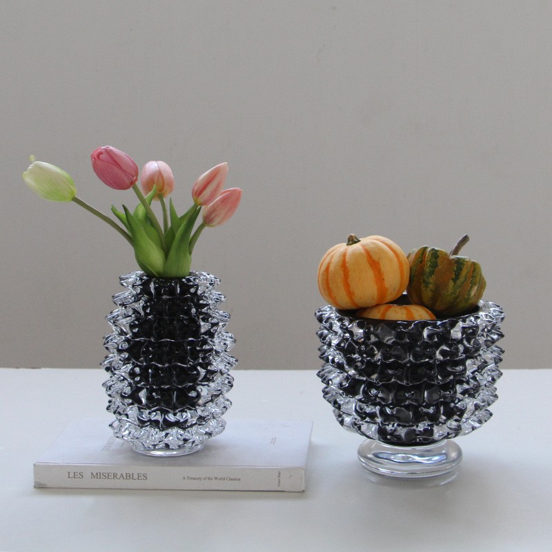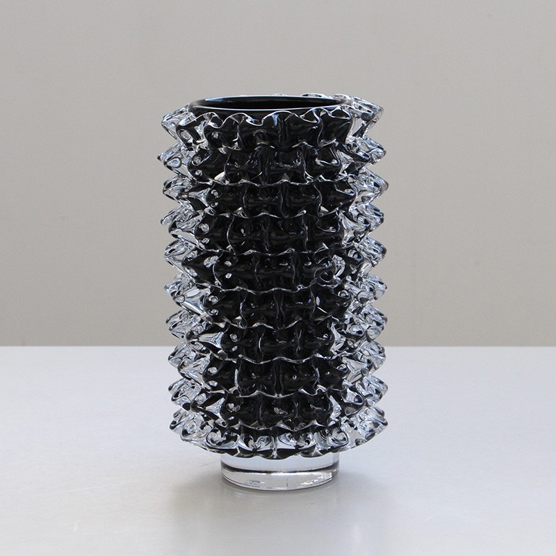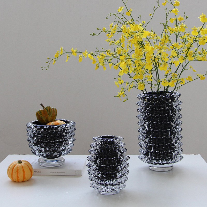 轻奢意式水晶黑色直筒手工琉璃花器样板间果盘设计师推荐软装设计