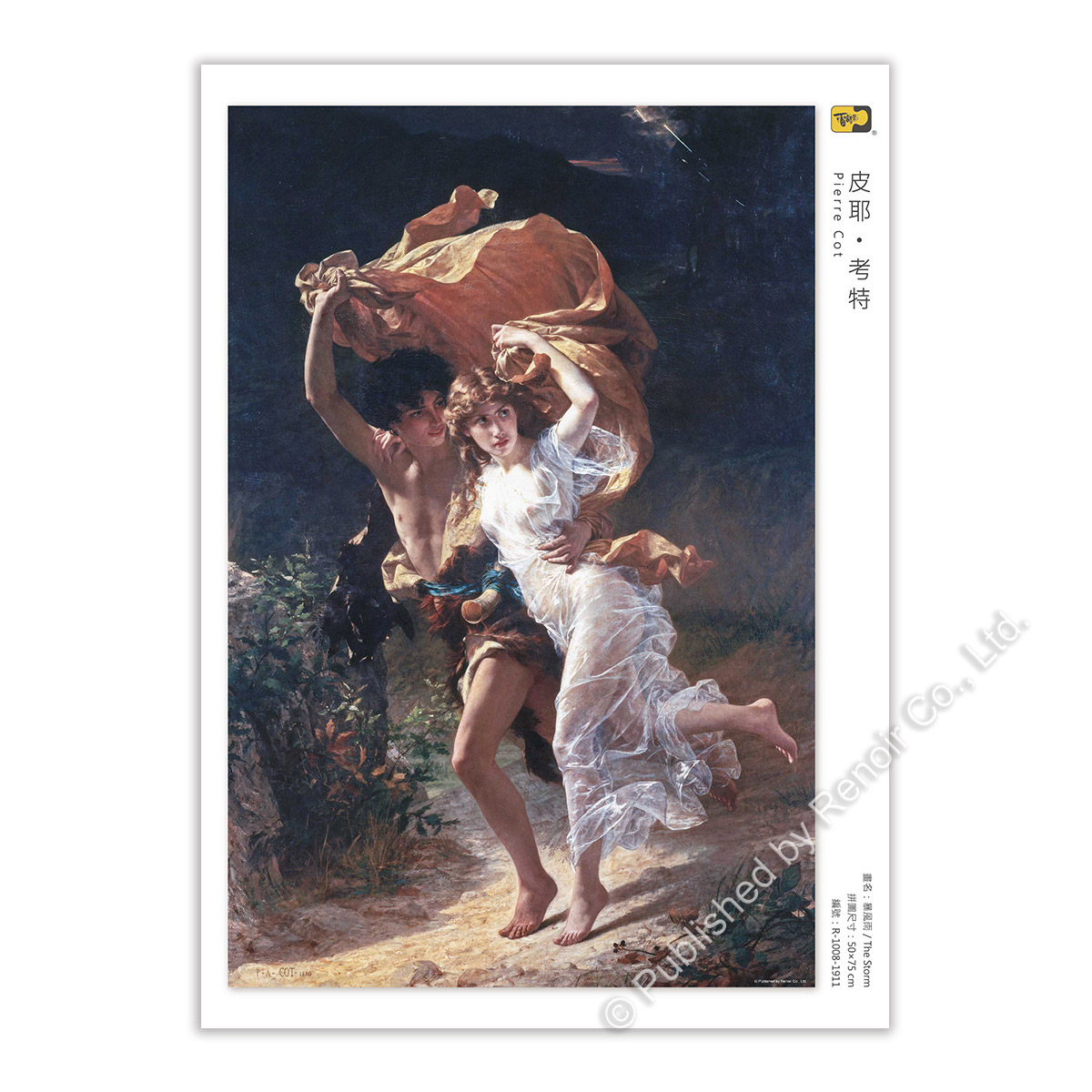 为法国学院古典派画家,以肖像画著名,擅长运用维妙维肖的笔法捕捉描绘对象的风采,并注入人性情感。1863年皮耶·考特在巴黎沙龙上首次发表作品并大获成功,在巴黎建立起声誉。1873年他发表以一对少年情侣为主角的作品《春天》,而后他又以同一对主角为灵感,于1880年完成另一幅作品《暴风雨》;这两幅画便成为皮耶·考特最具代表性的作品。他于1874年获得法国骑士荣誉勋章,其法国学院派艺术大师的头衔绝非浪得虚名。