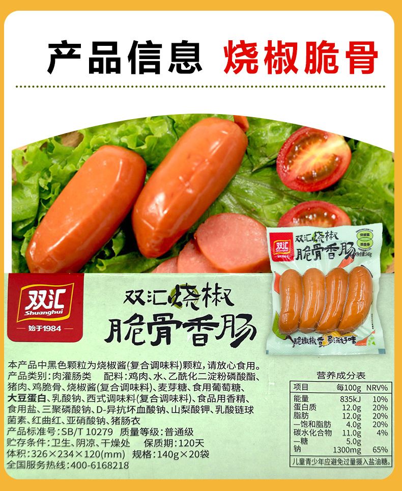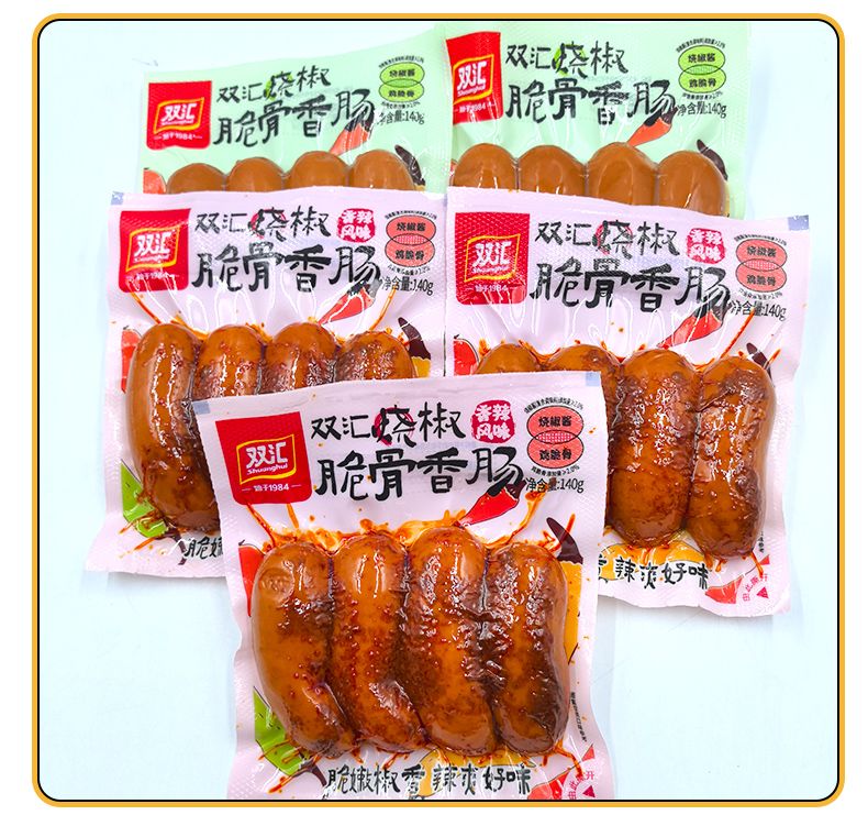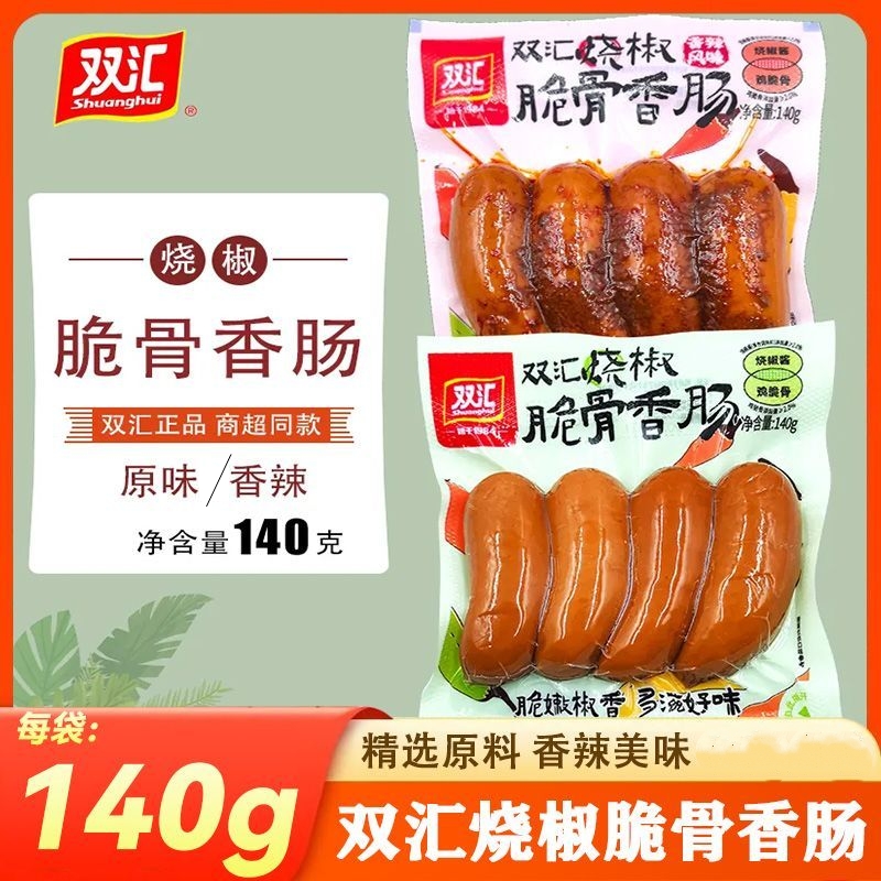 140g 双汇 烧椒脆骨香肠 香辣风味/原味 零食泡面炒饭火腿肠香肠